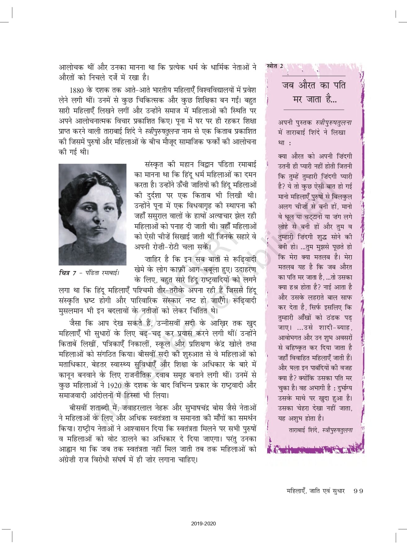 - पाठ 8: महिलाएँ, जाति एवं सुधार