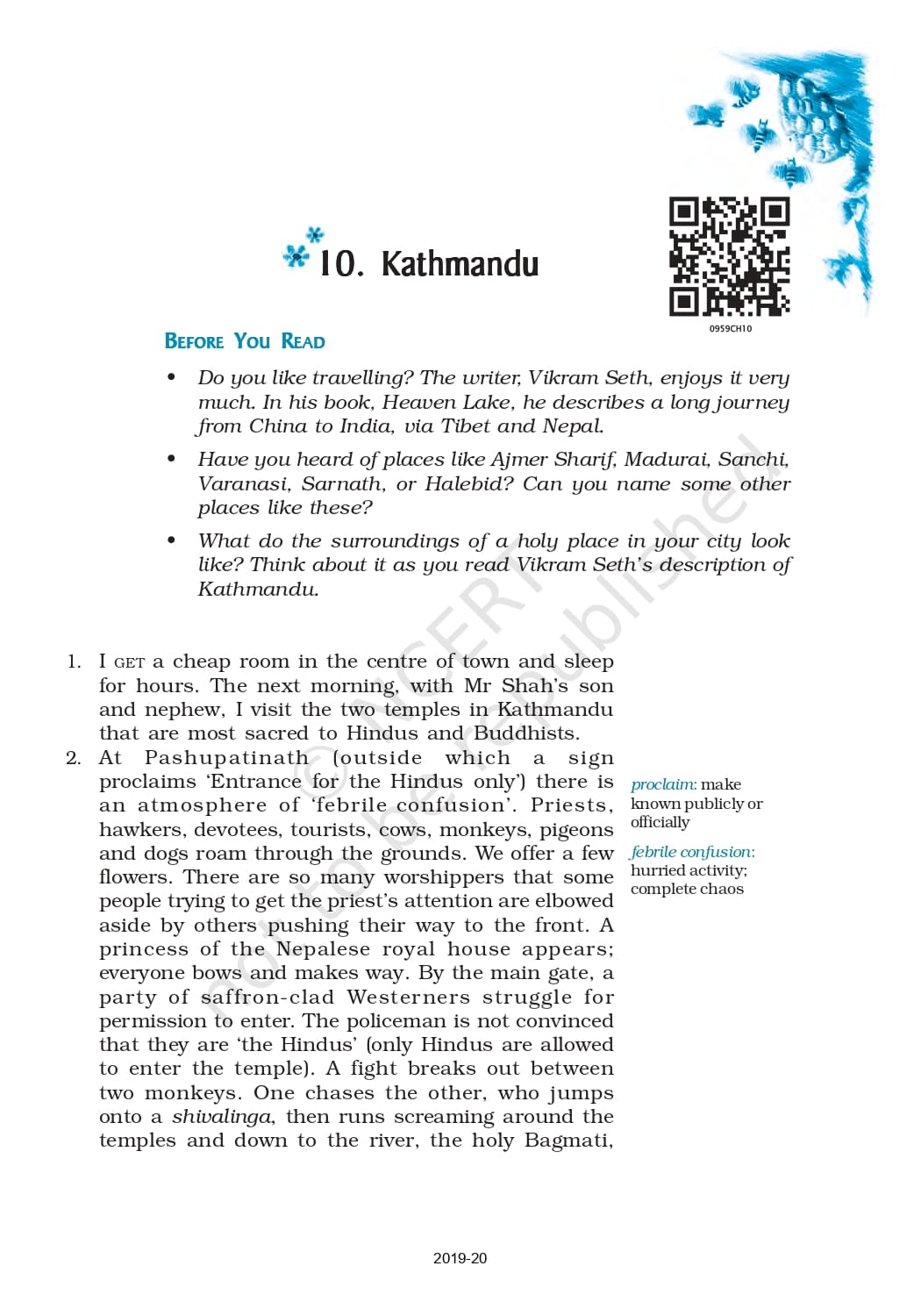 Class 9 Ncert Book English Beehive Chapter 10 – Kathmandu