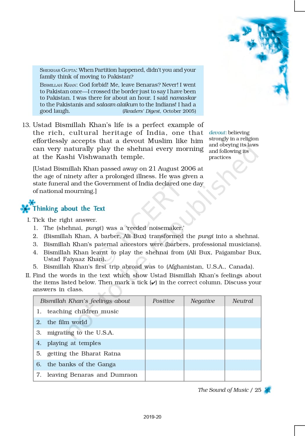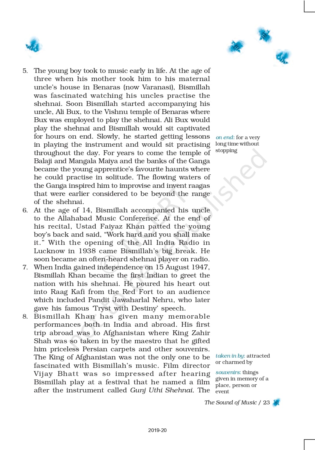 Class 9 Ncert Book English Beehive Chapter 2 – The Sound of Music