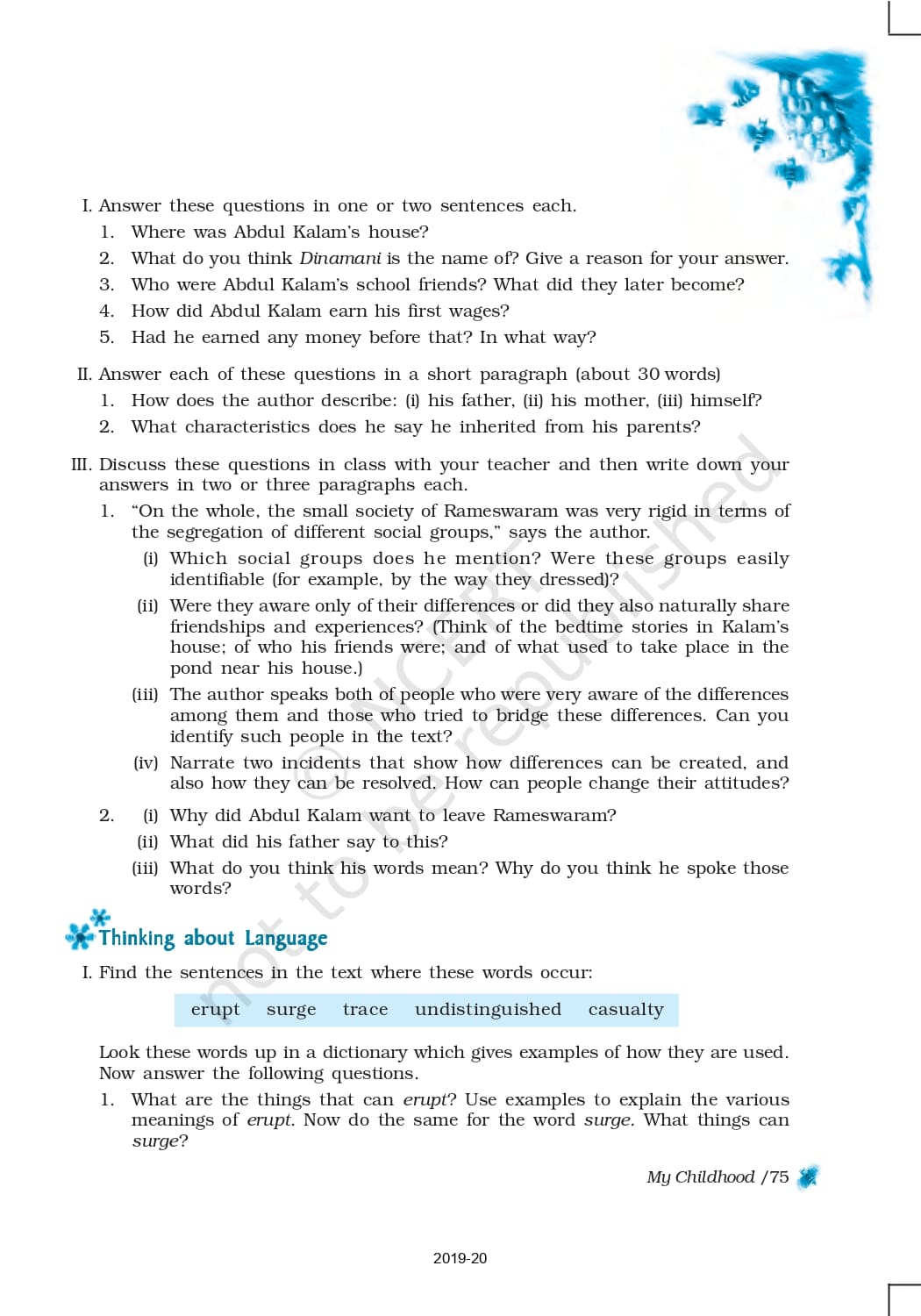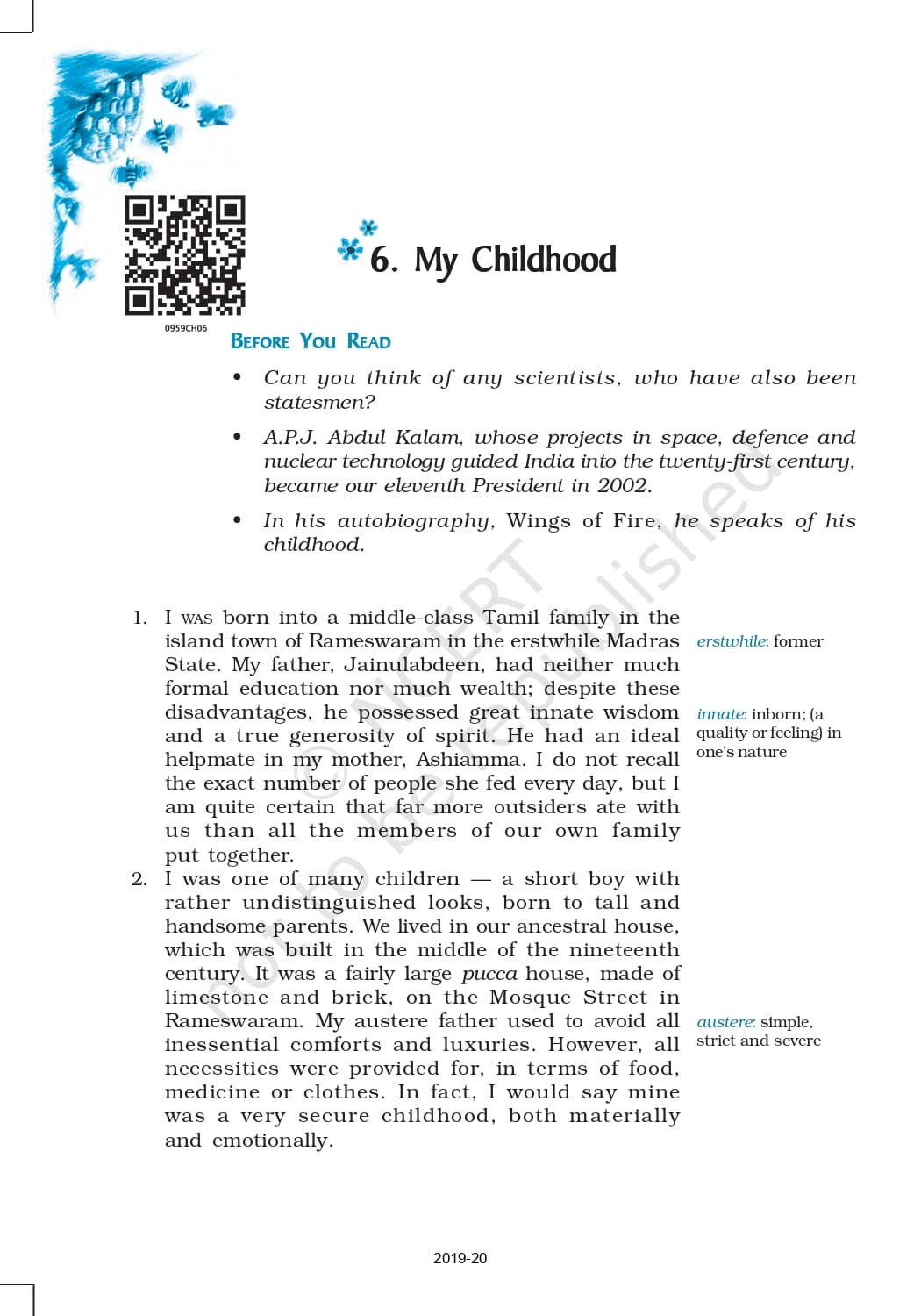 Class 9 Ncert Book English Beehive Chapter 6 – My Childhood