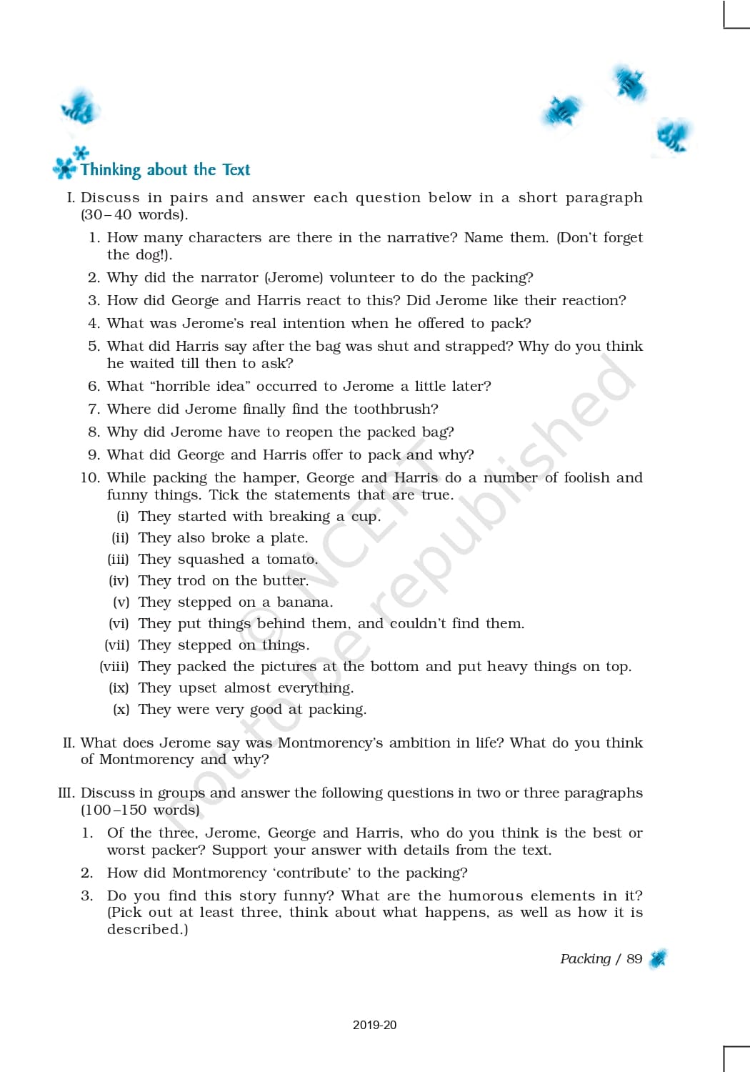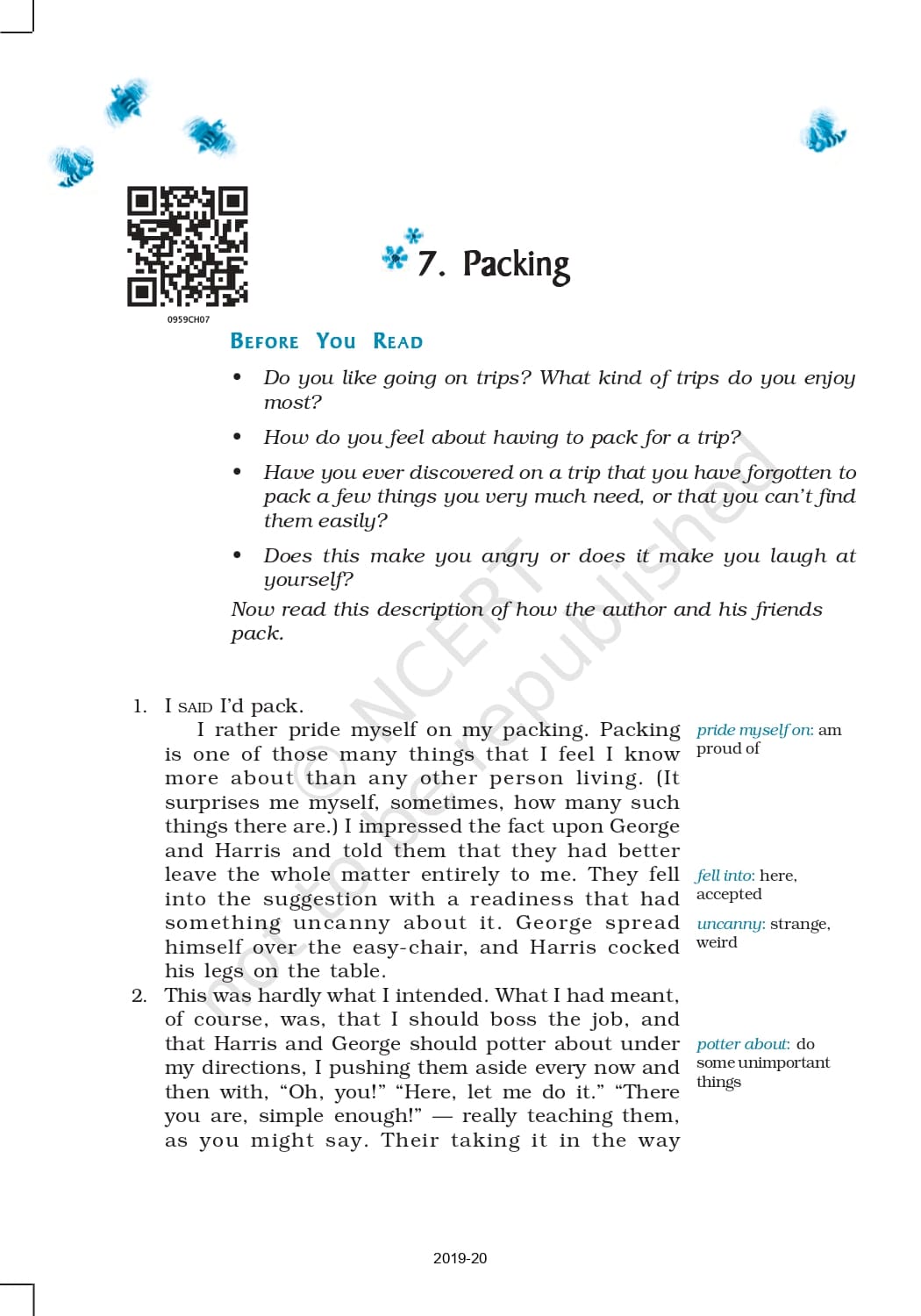 Ncert Books Class 9 English Beehive – Chapter 7 – Packing