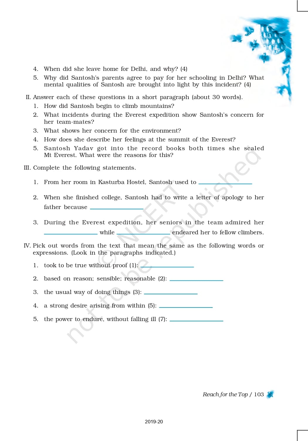 Ncert Books Class 9 English Beehive – Chapter 8 – Reach for the Top