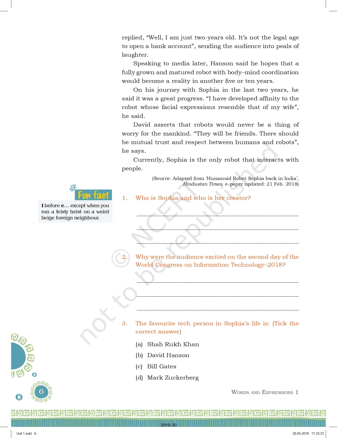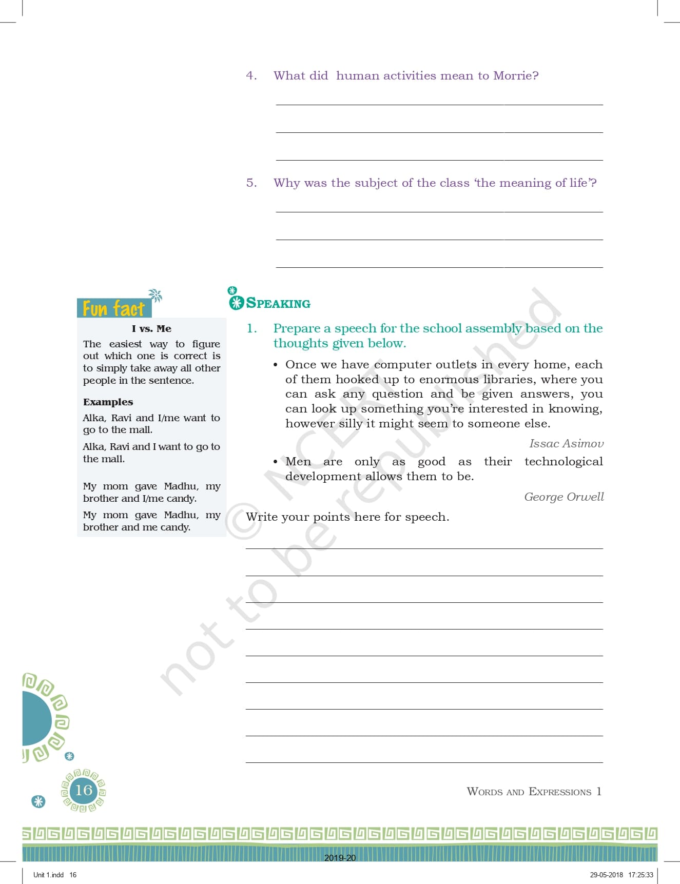 Class 9 Ncert English Words and Expression Workbook – Unit 1 Pdf
