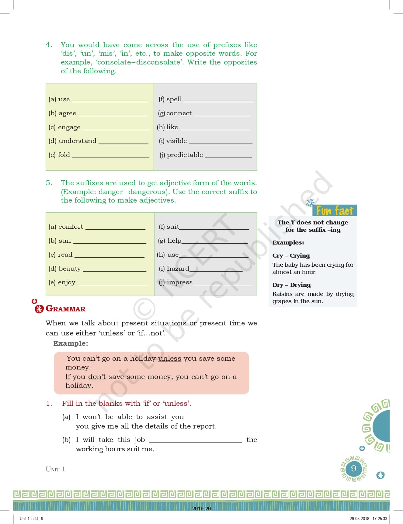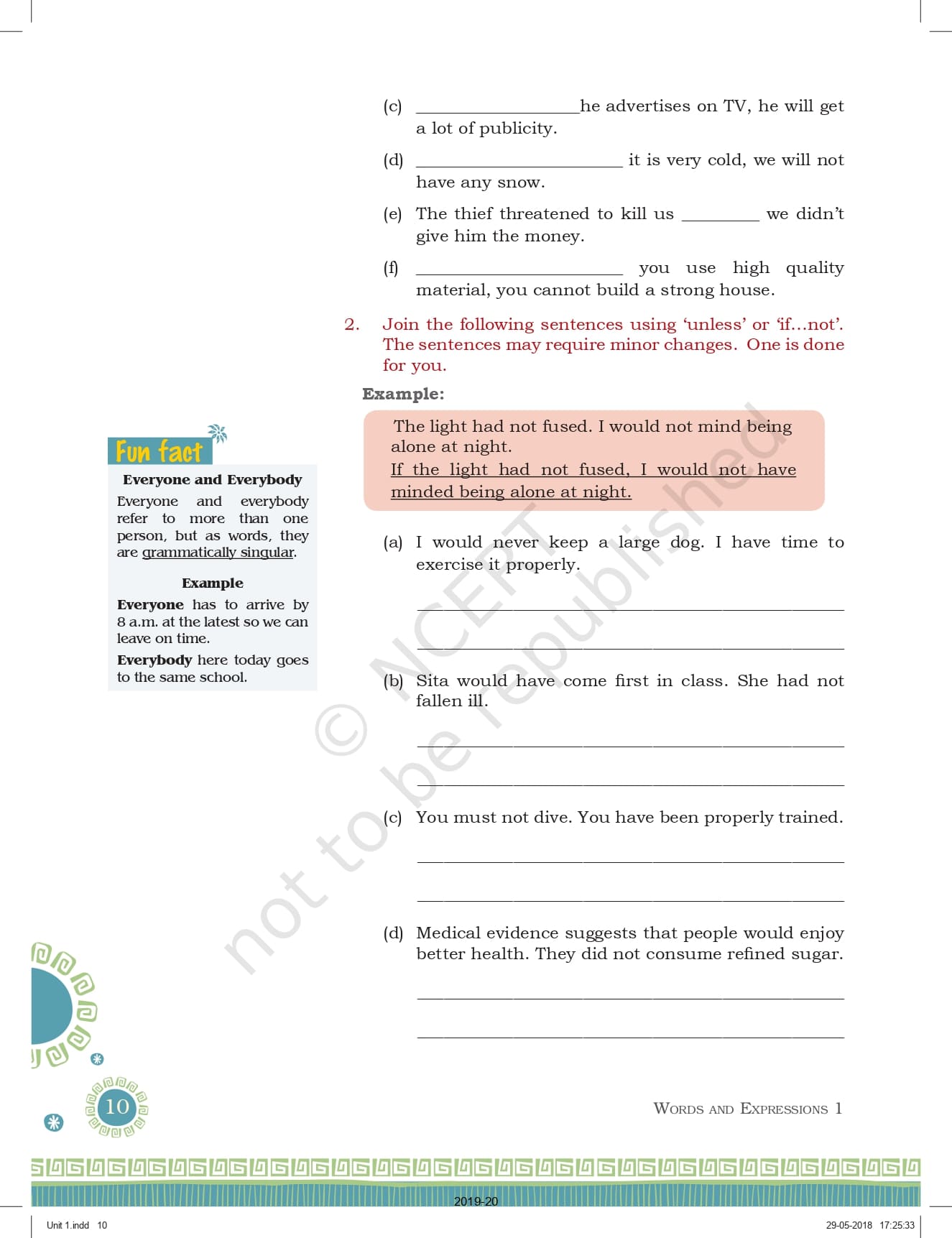 Ncert Books Class 9 English Words and Expression Workbook – Unit 1