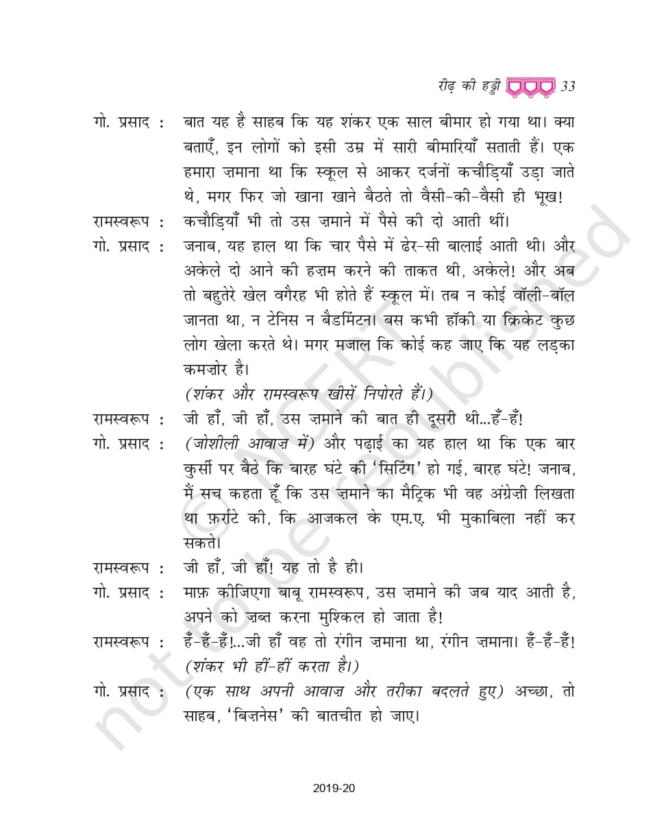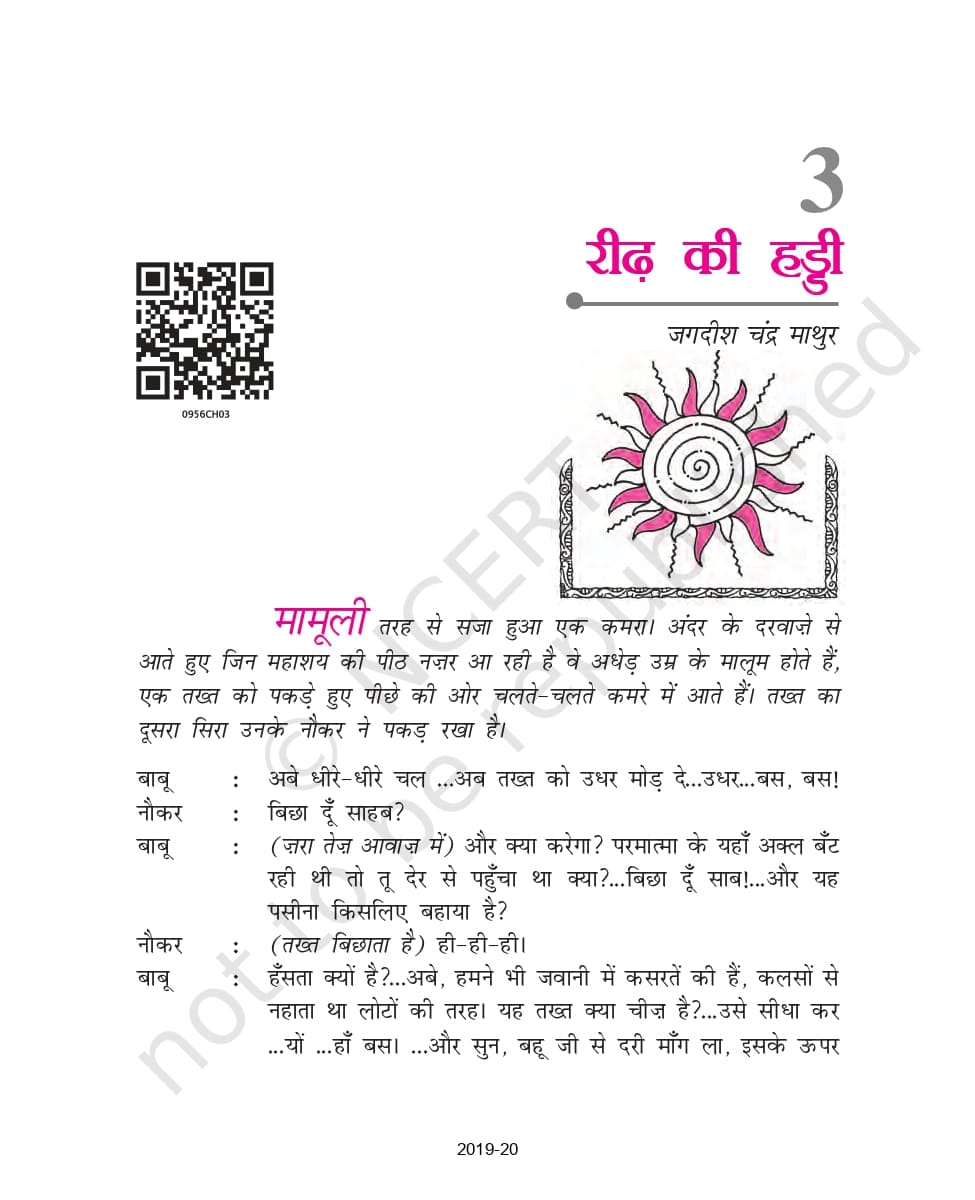 Ncert Books Class 9 Hindi Kritika – Chapter 3 रीढ़ की हड्डी