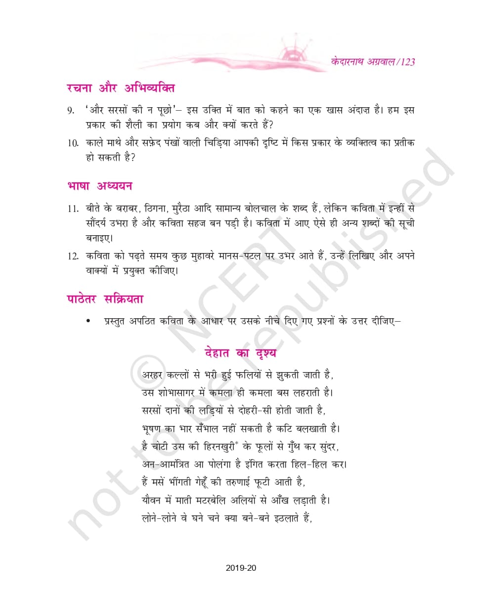 - पाठ 14: चंद्र गहना से लौटती बेर