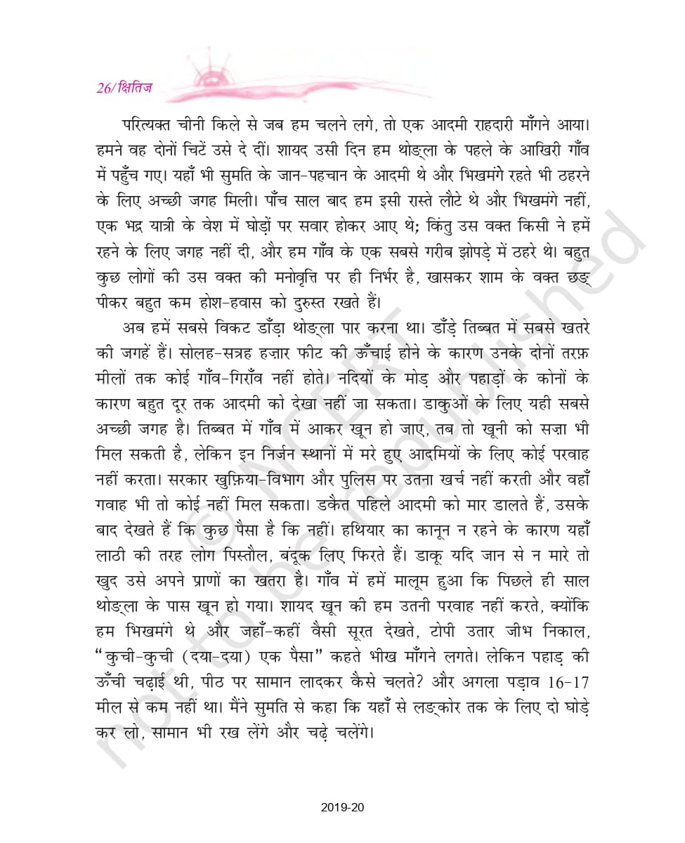 Class 9 Ncert Book Hindi (क्षितिज) – Chapter 2 ल्हासा की ओर