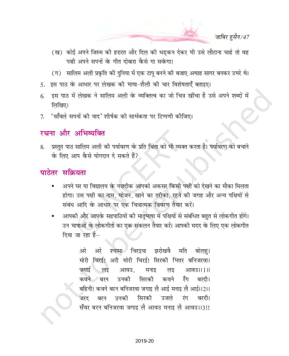 - पाठ 12: कैदी और कोकिला