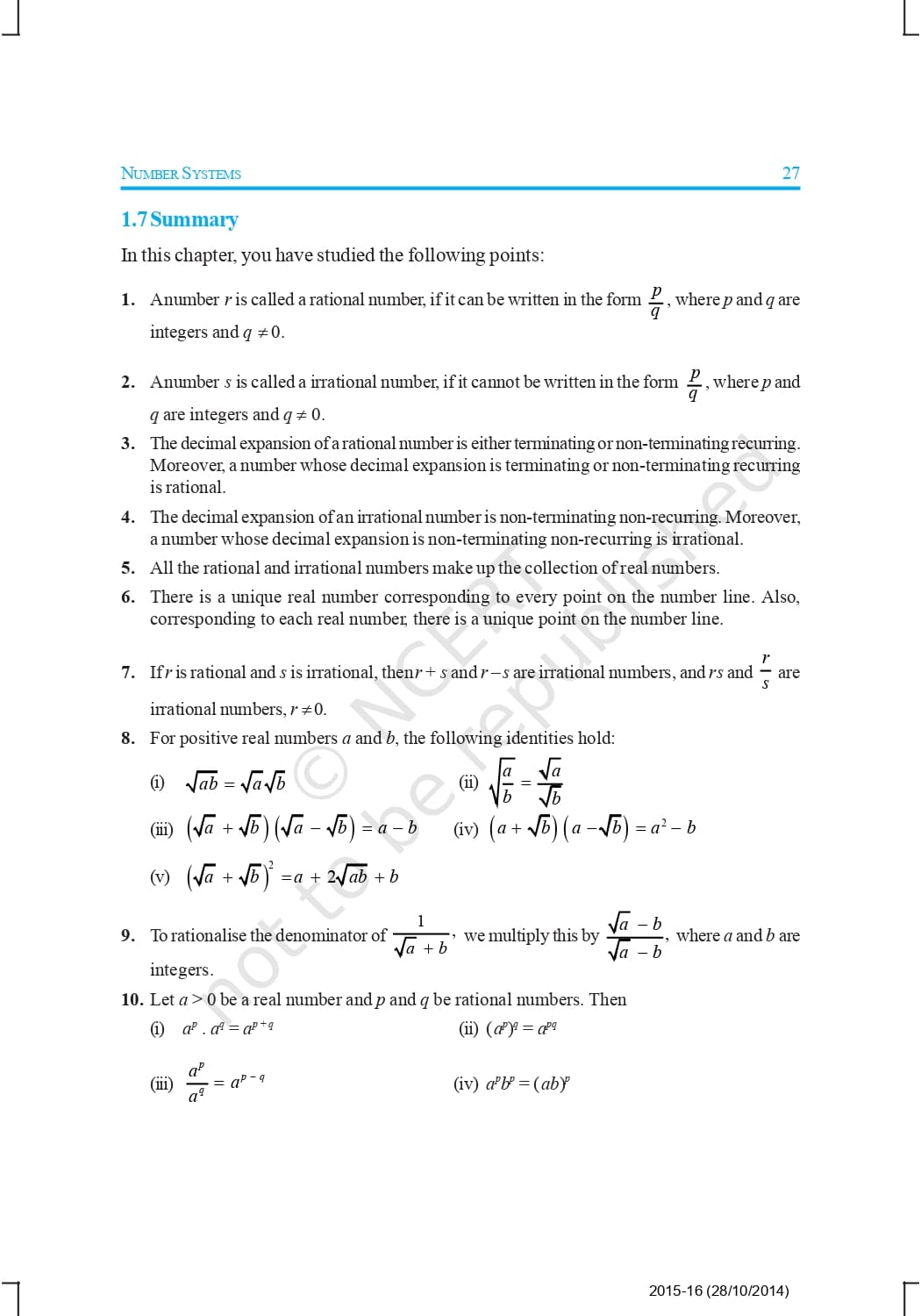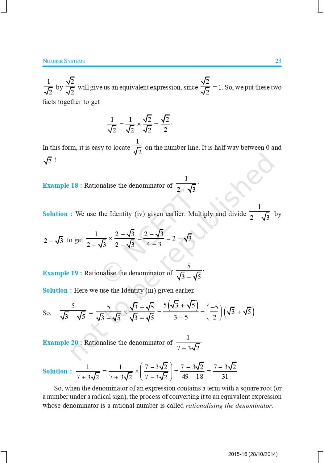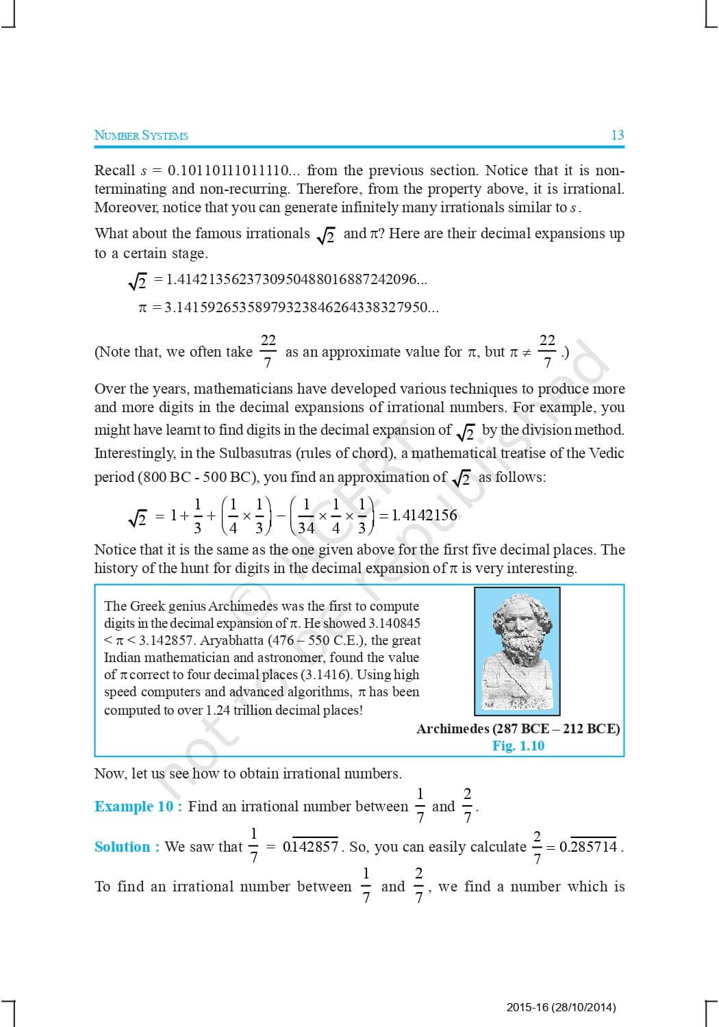 Class 9 Ncert Book Mathematics Chapter 1 – Number Systems