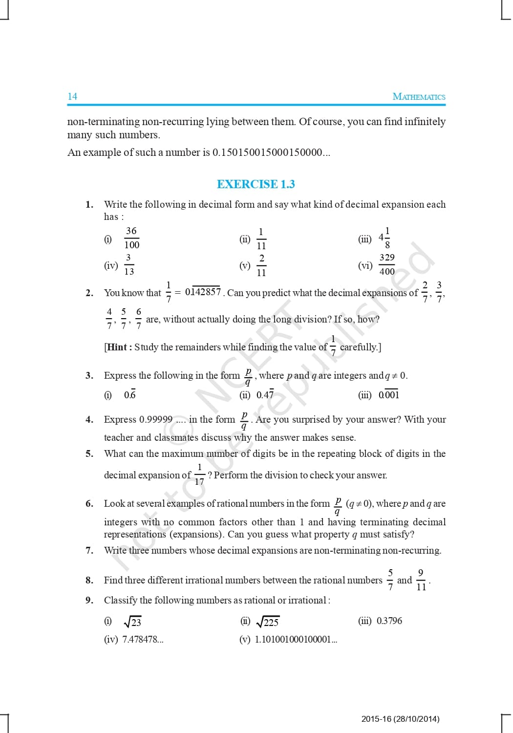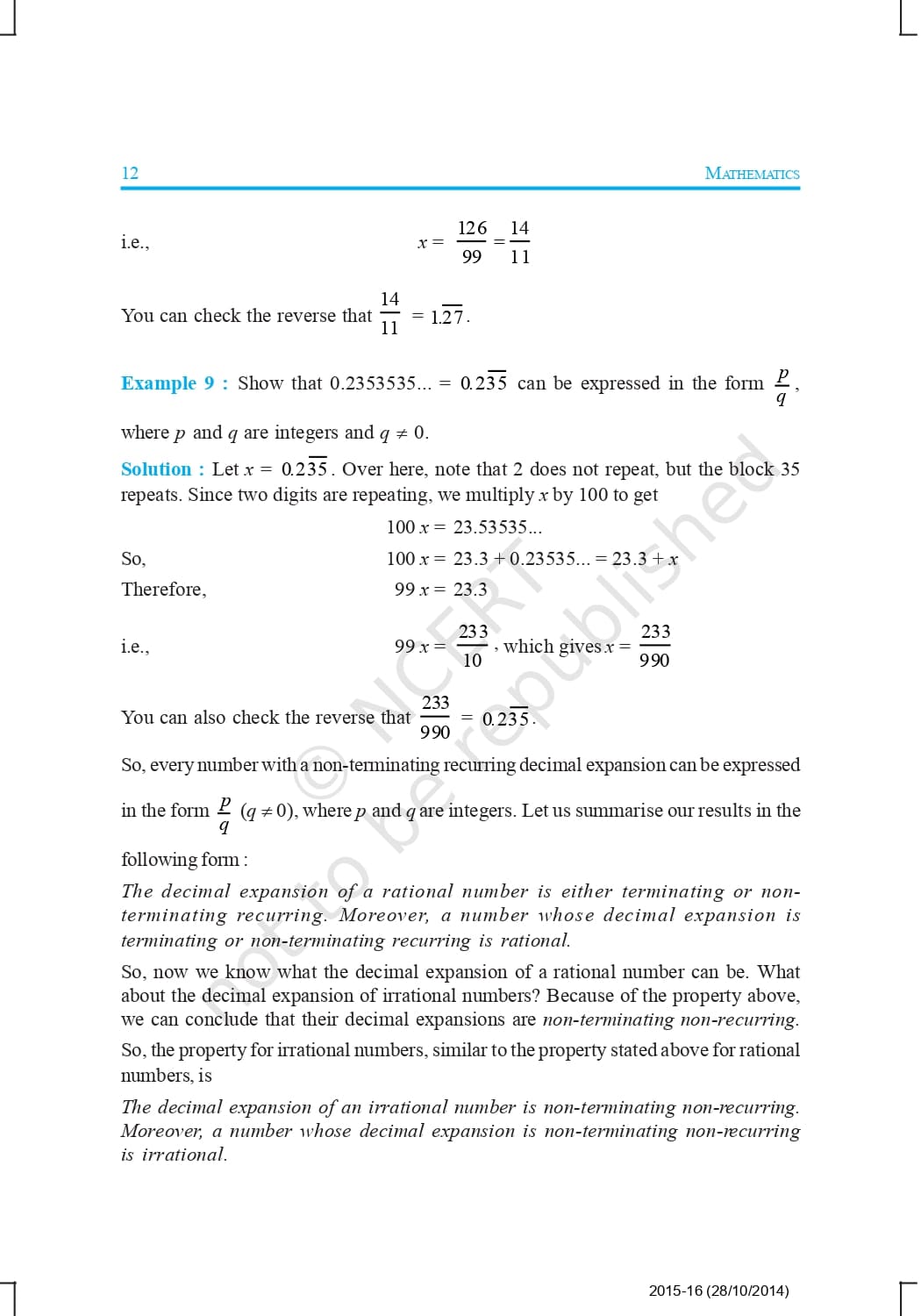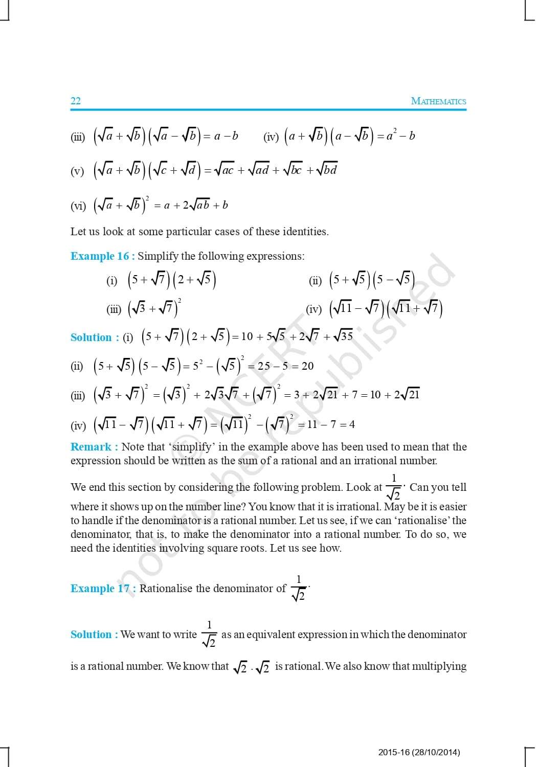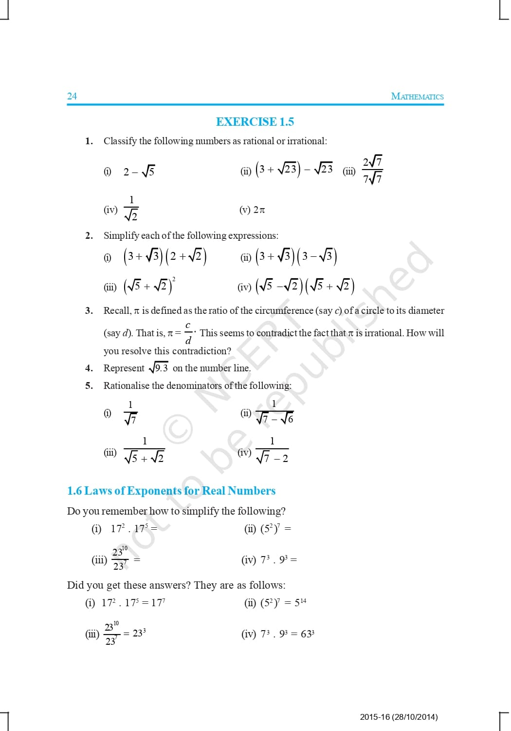 Class 9 Ncert Book Mathematics Chapter 1 – Number Systems