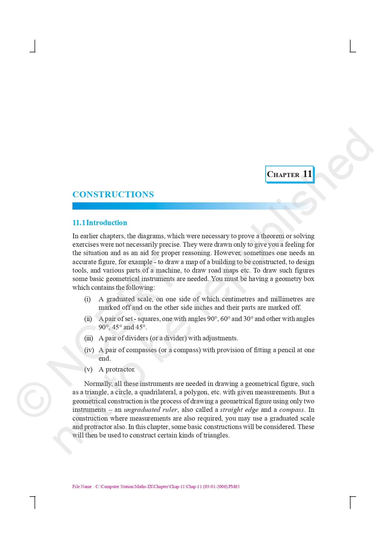Class 9 Ncert Book Mathematics Chapter 11 – Constructions