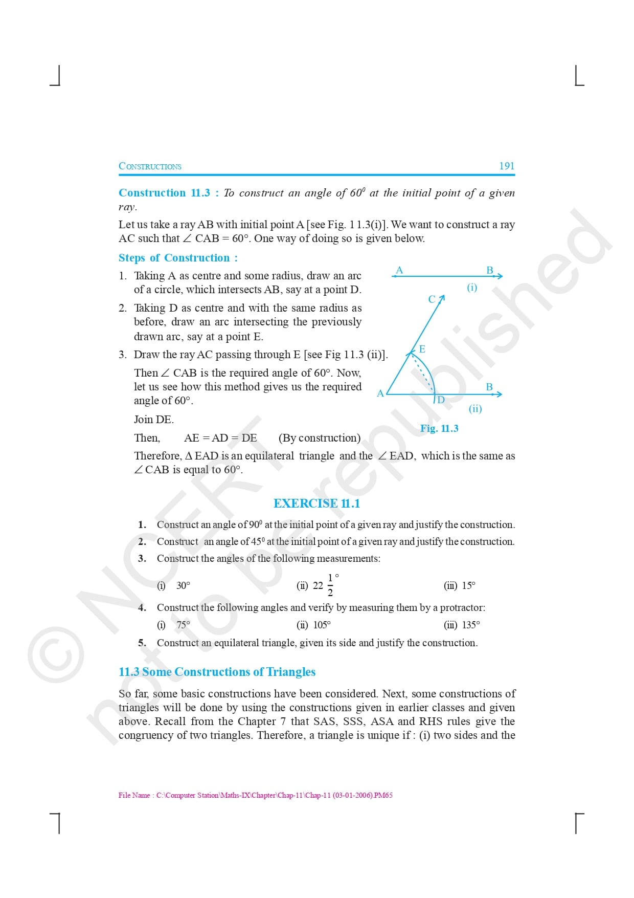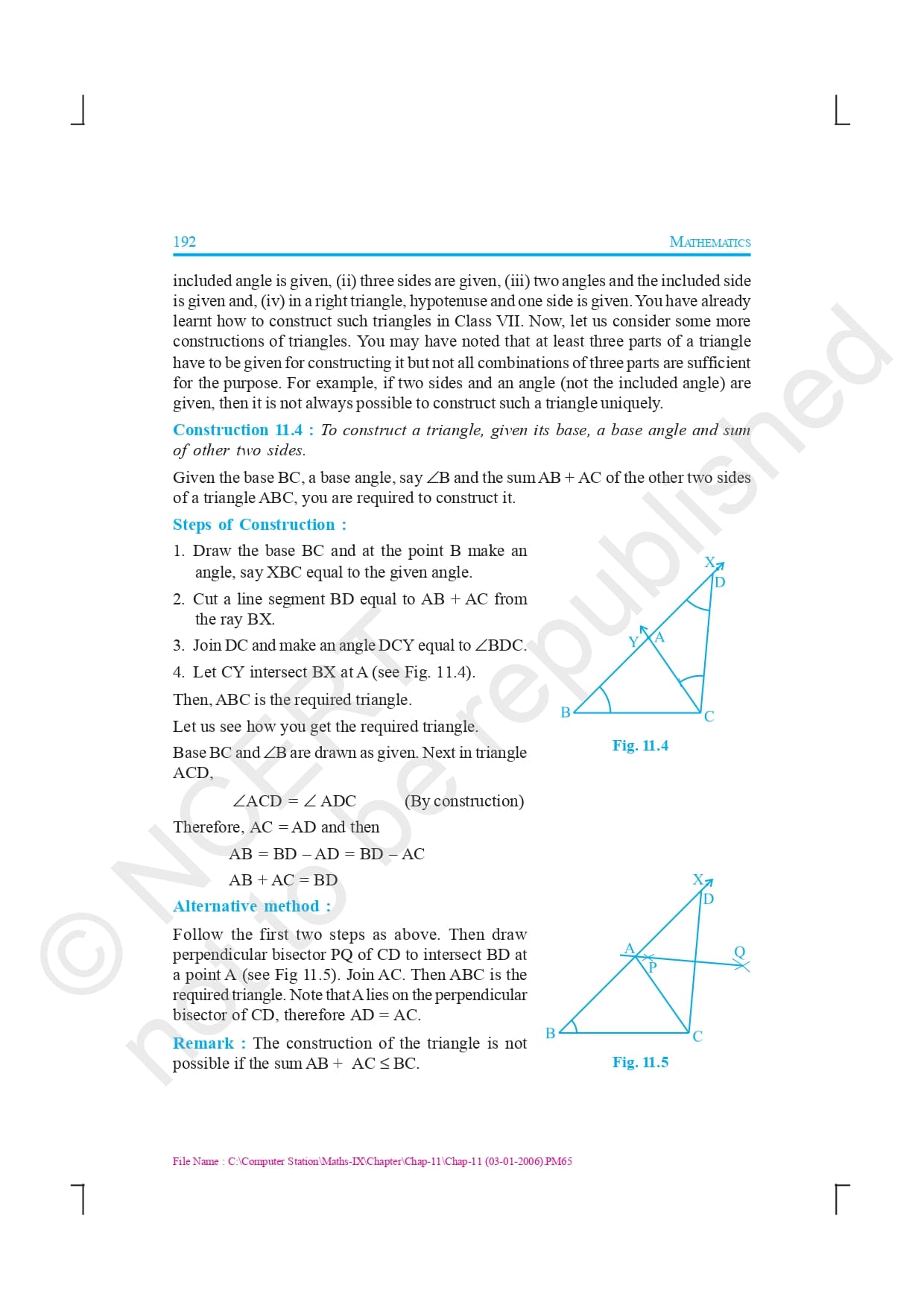 Ncert Books Class 9 Maths – Chapter 11 – Constructions