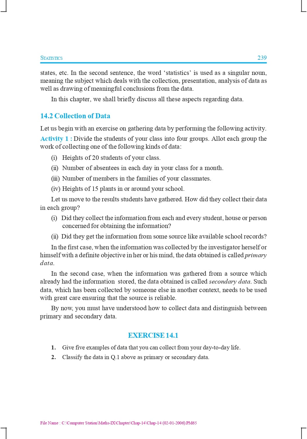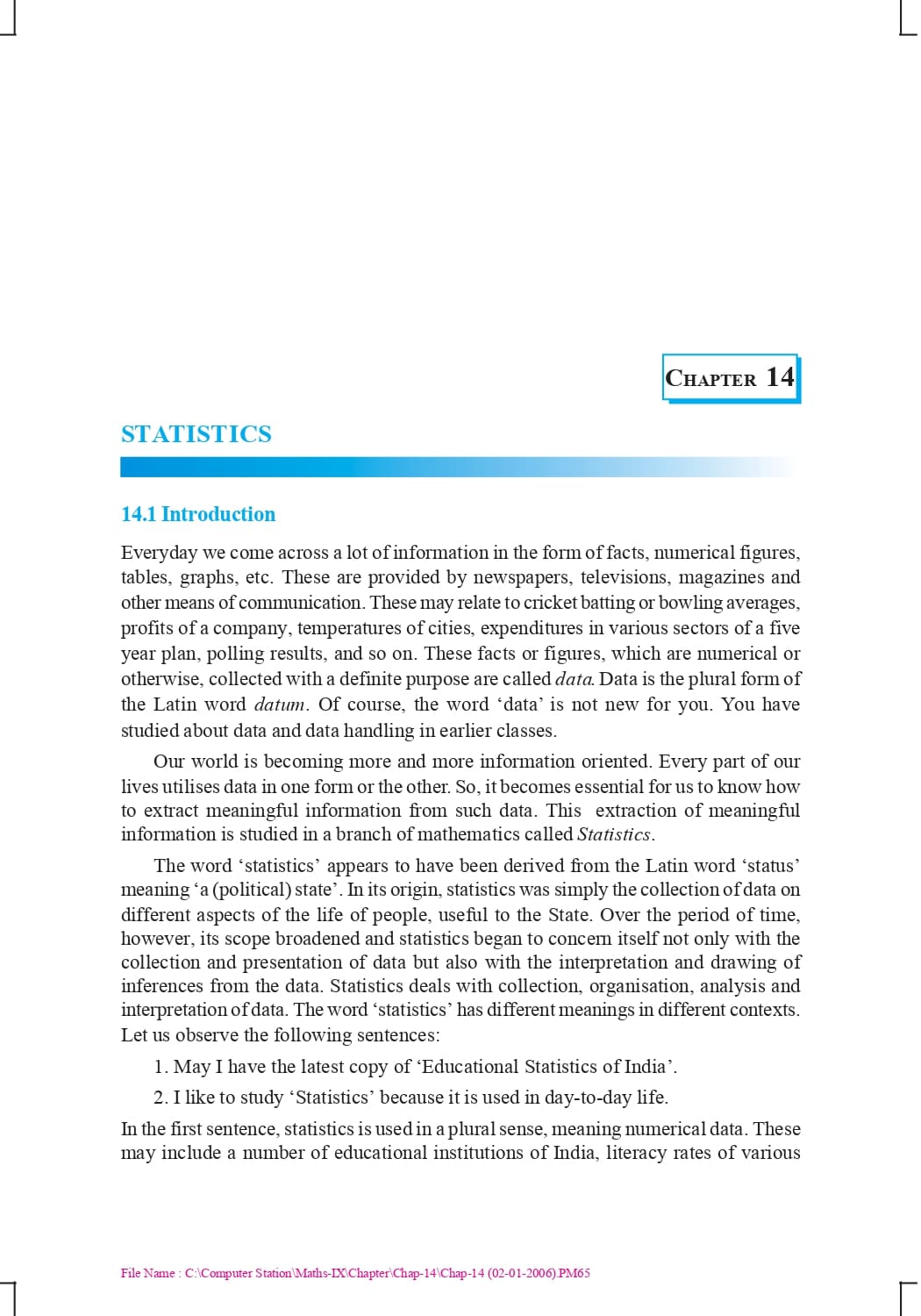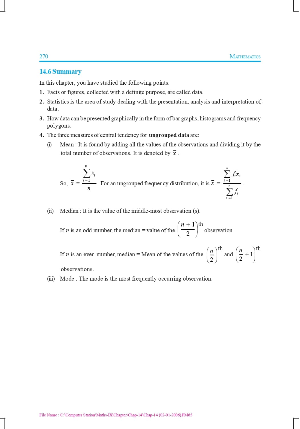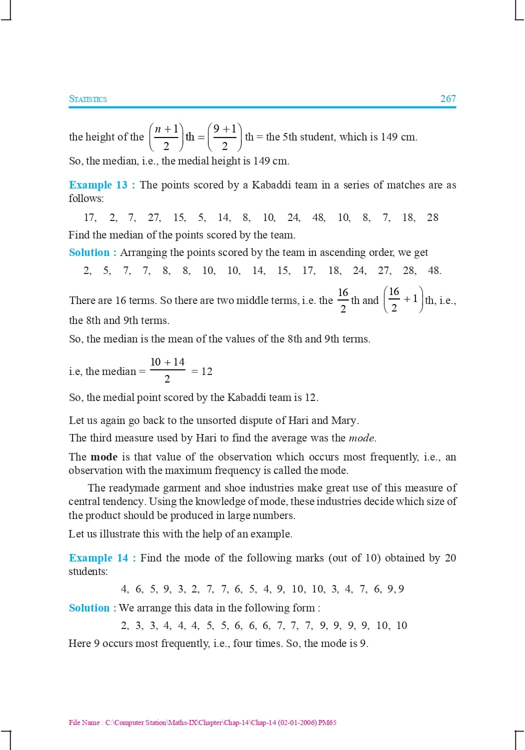 Class 9 Ncert Book Mathematics Chapter 14 – Statistics