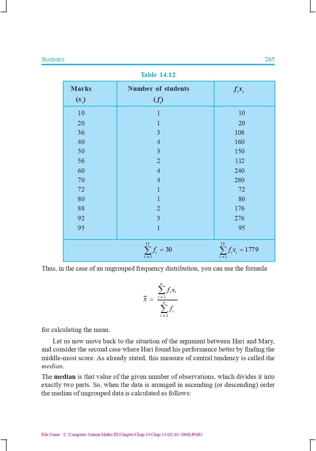 Ncert Books Class 9 Maths – Chapter 14 – Statistics