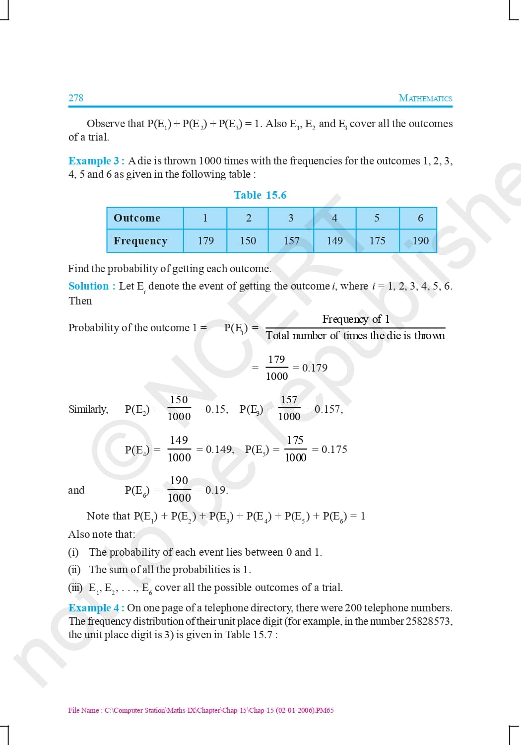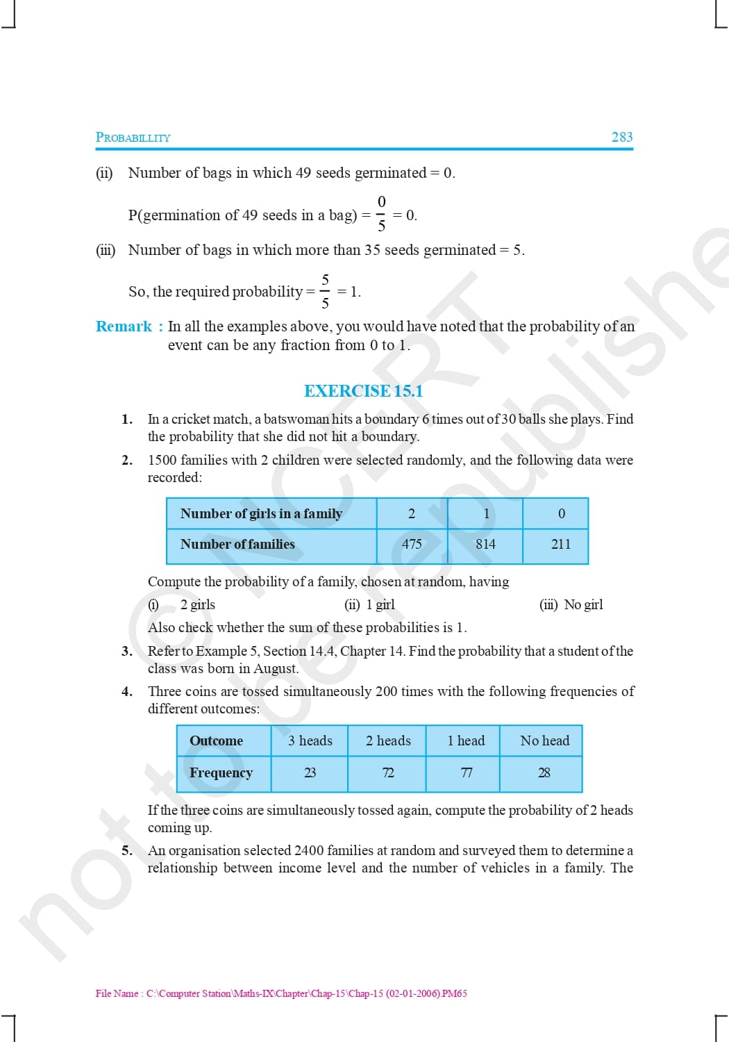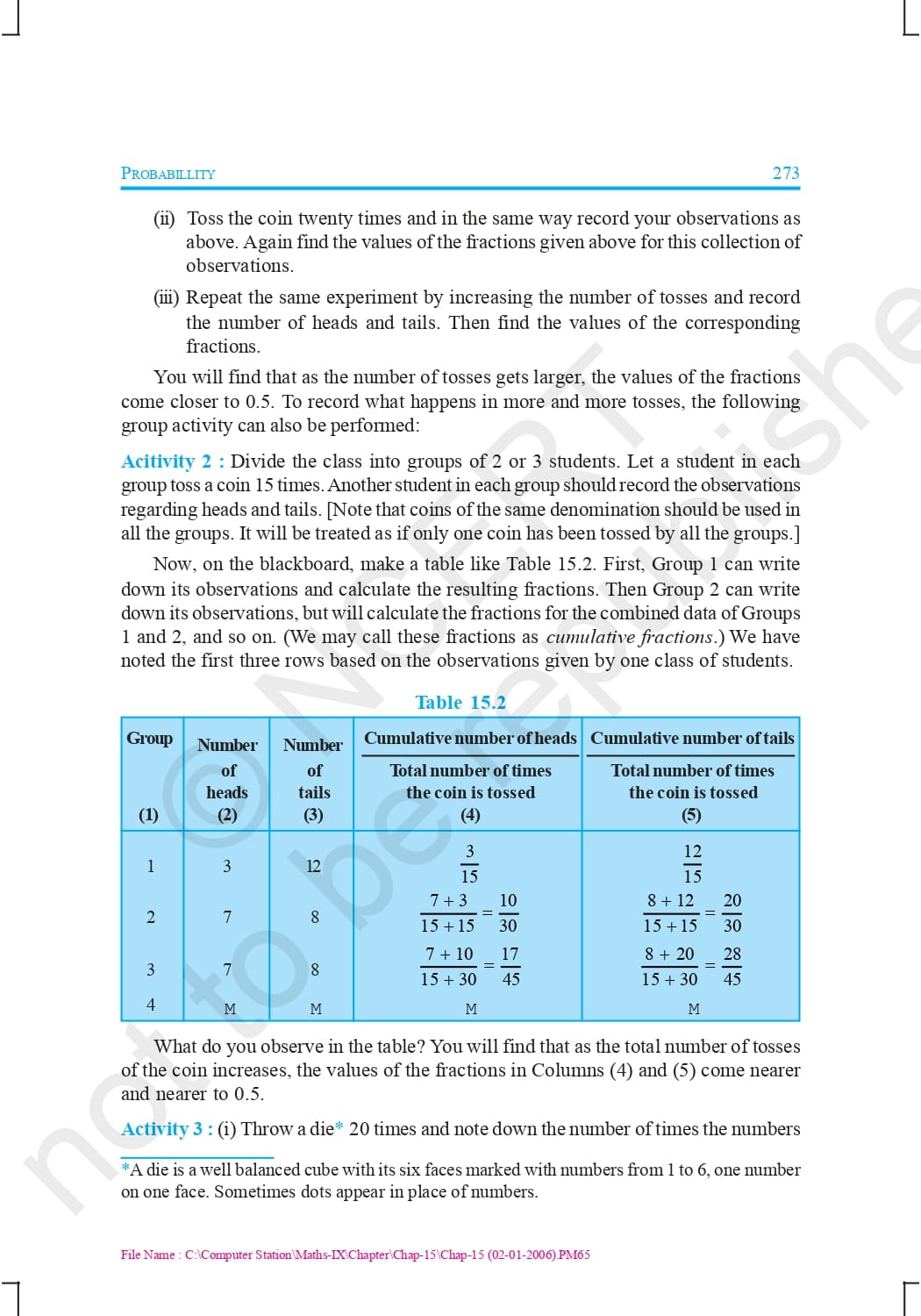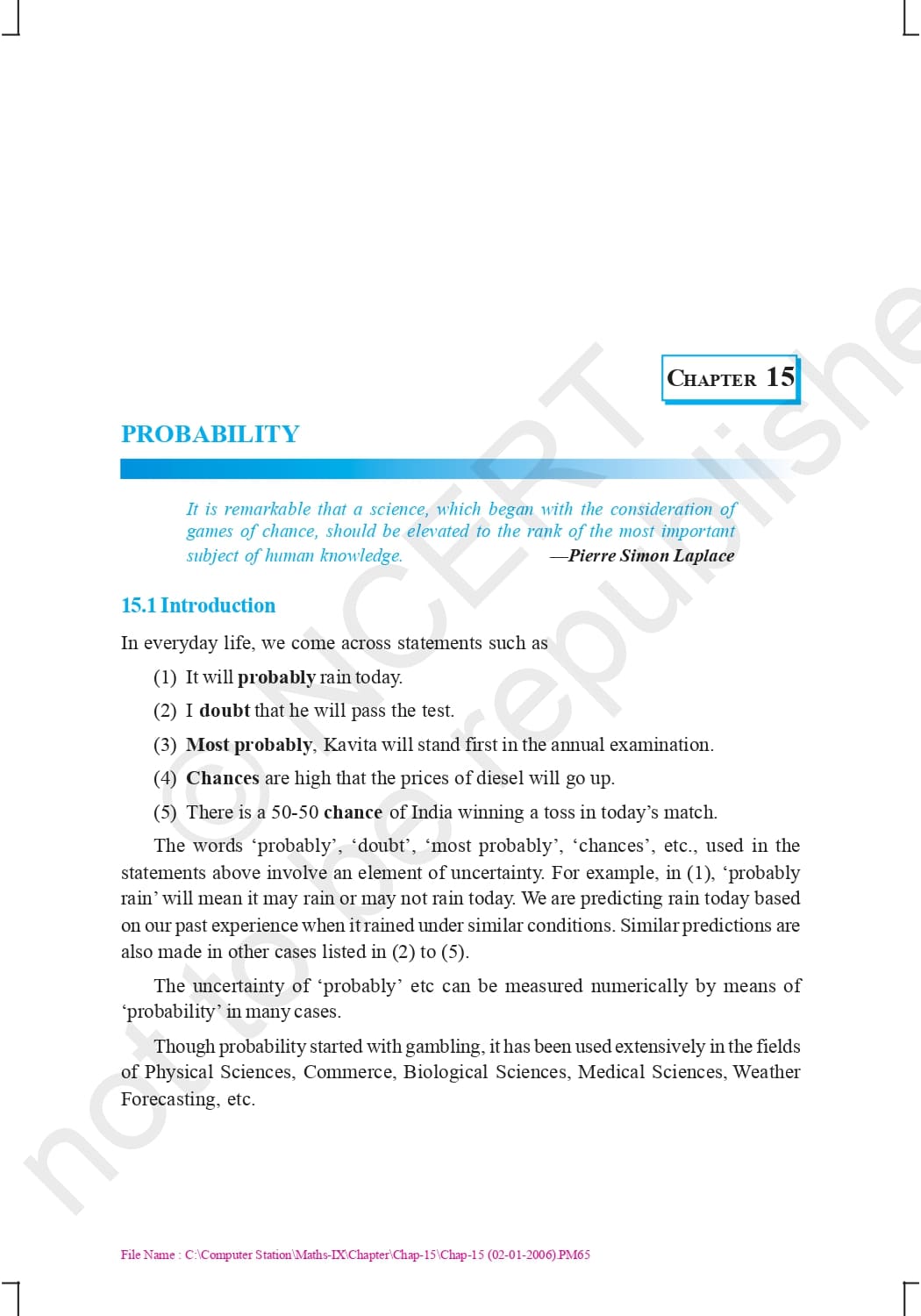 Class 9 Ncert Book Mathematics Chapter 15 – Probability