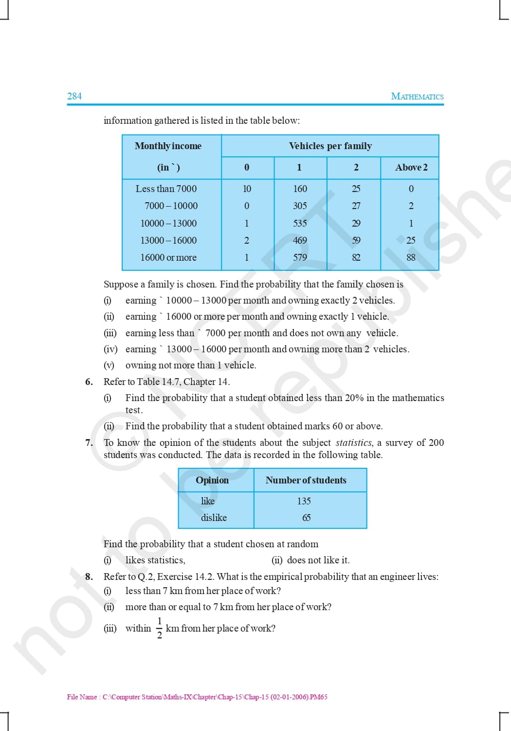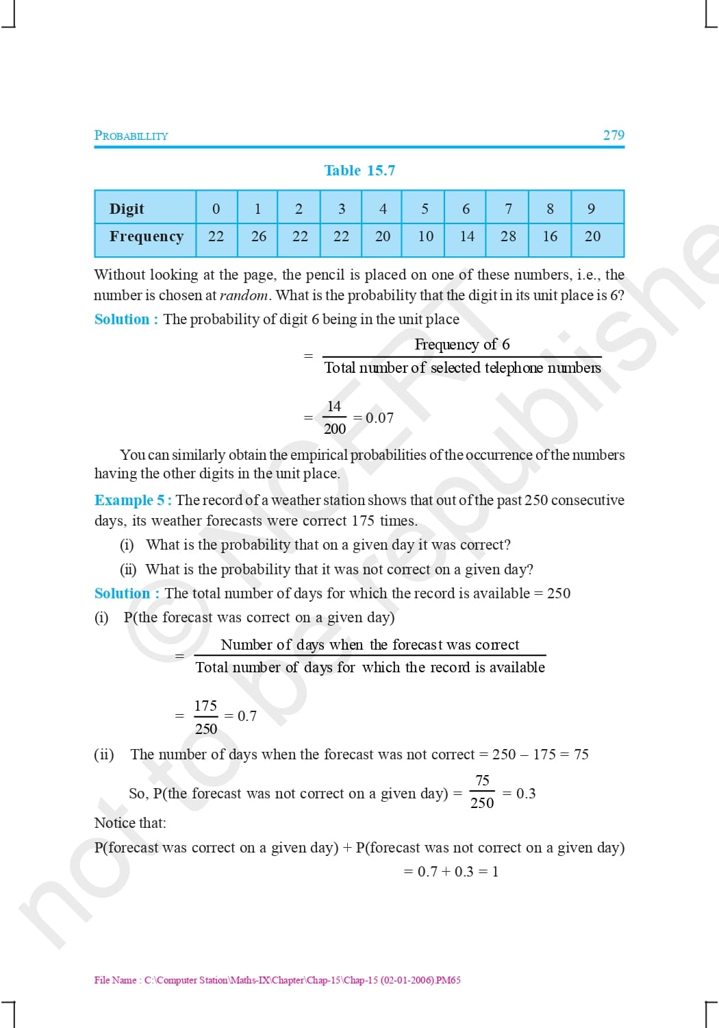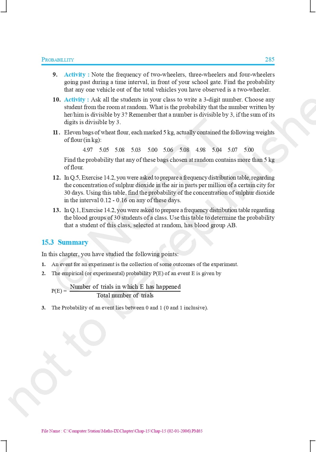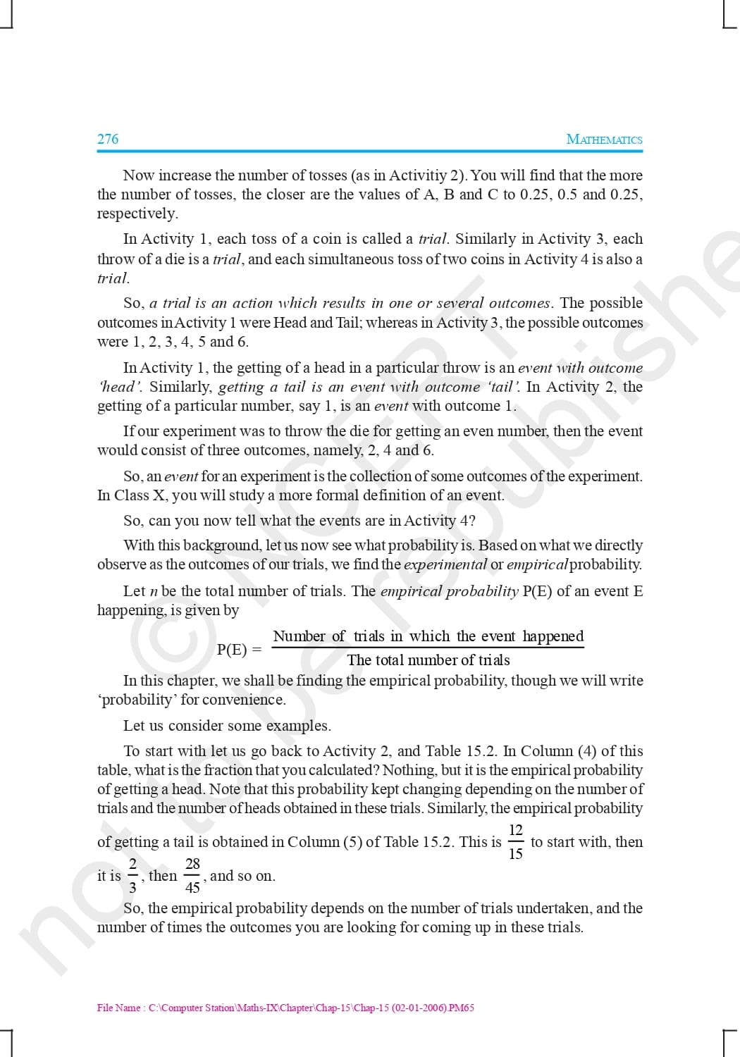 Class 9 Ncert Book Mathematics Chapter 15 – Probability