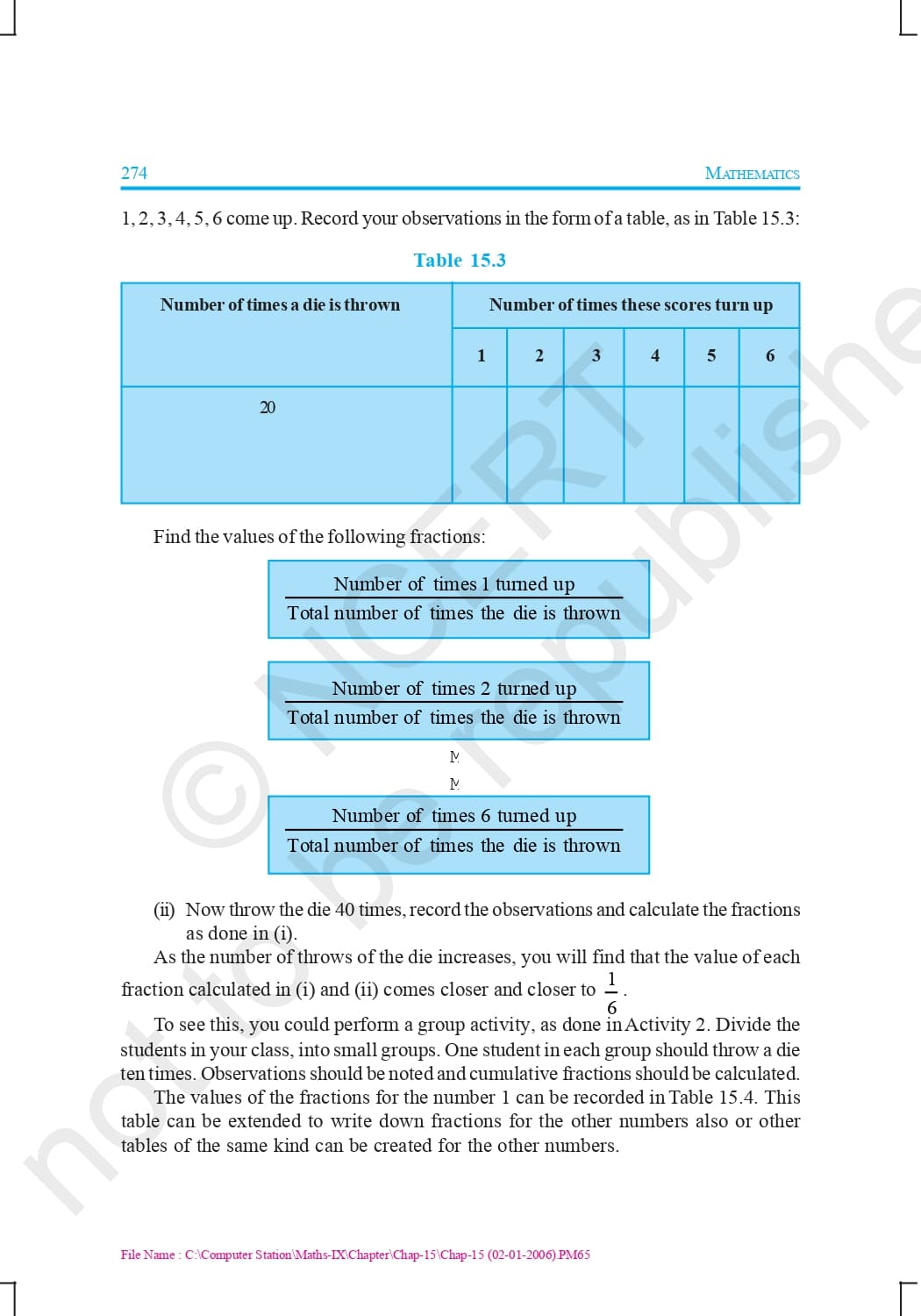 Ncert Books Class 9 Maths – Chapter 15 – Probability