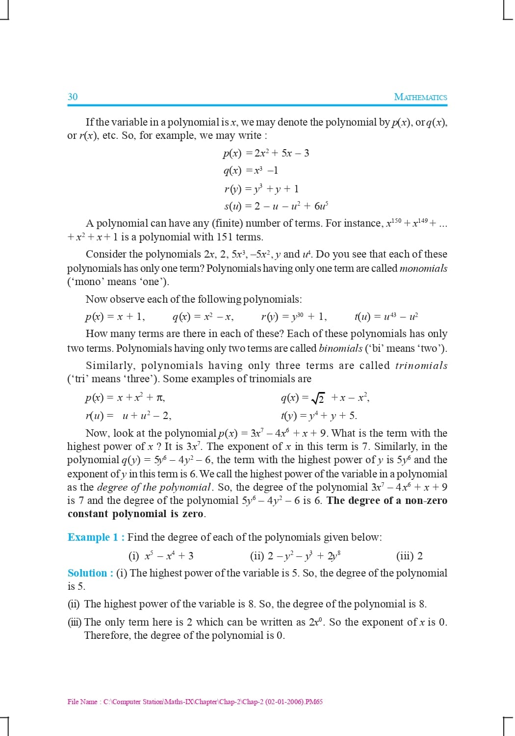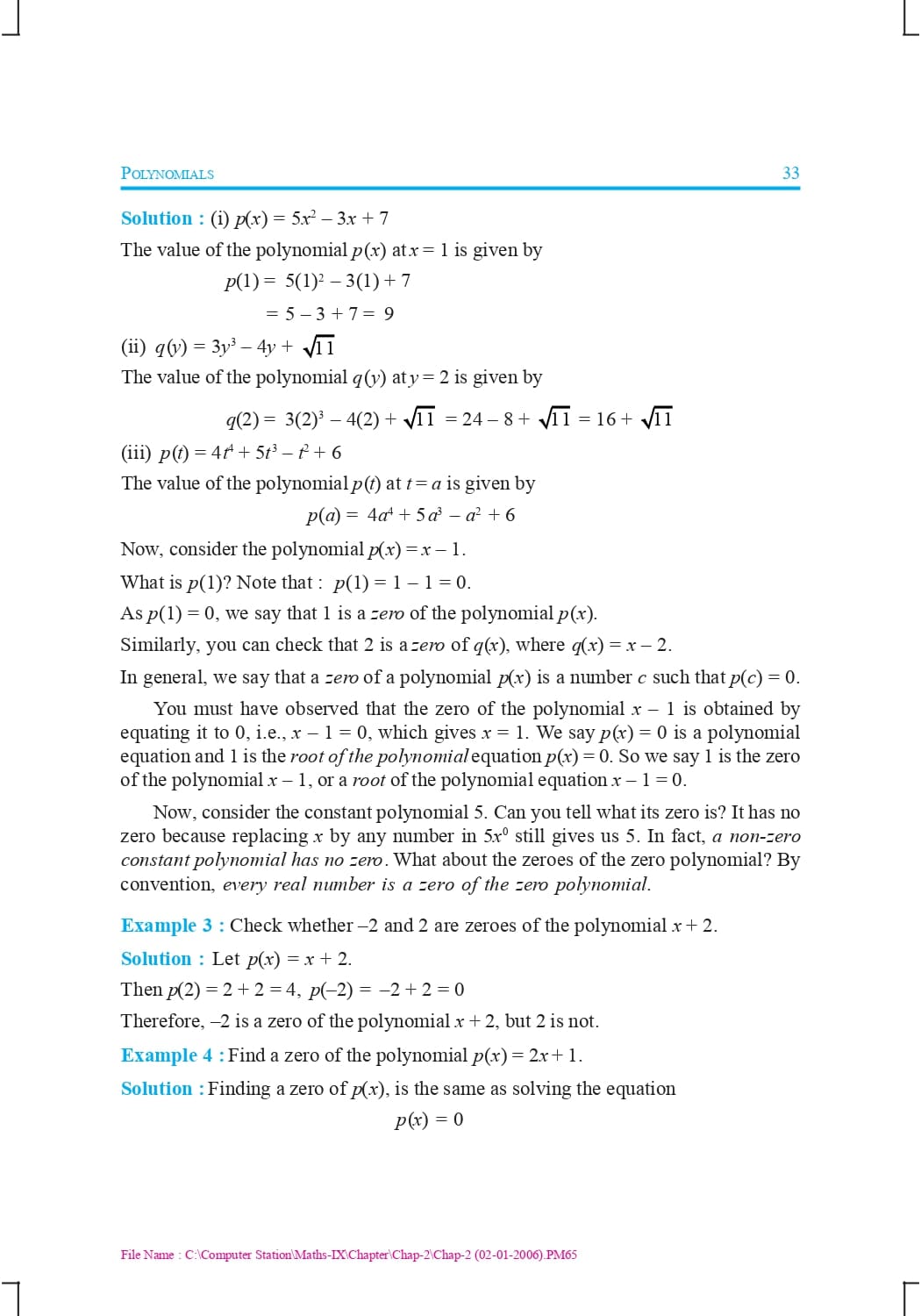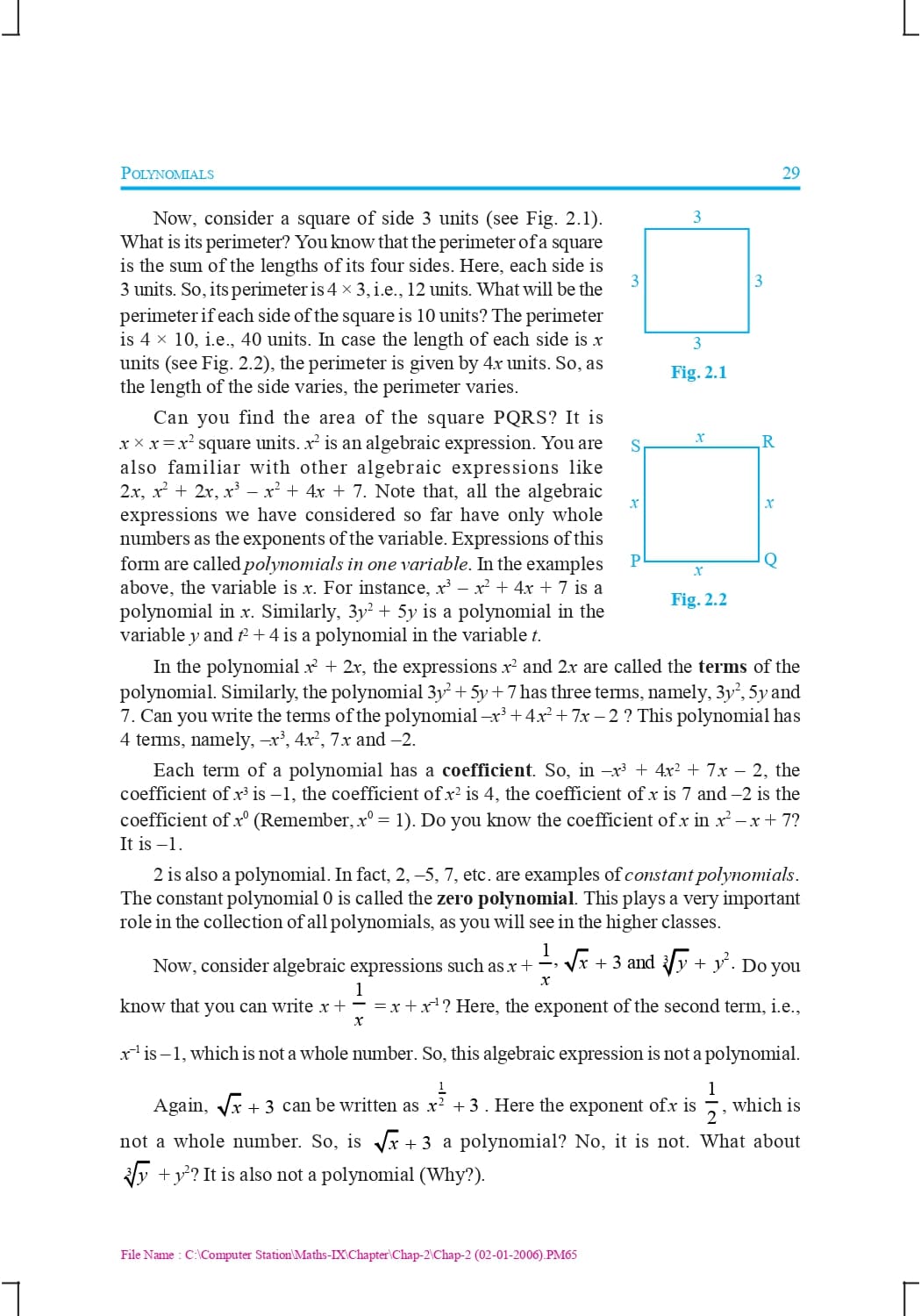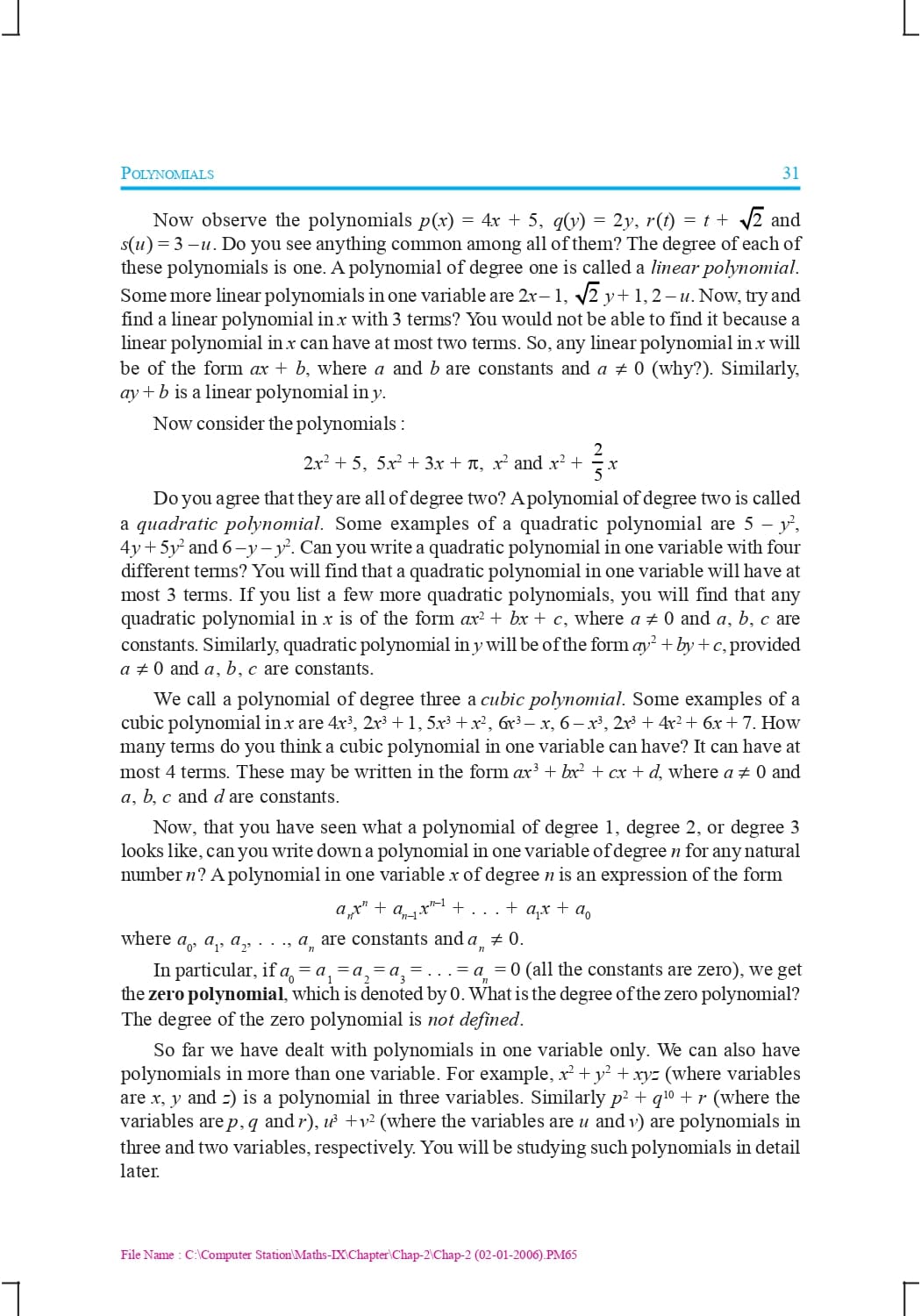 Class 9 Ncert Book Mathematics Chapter 2 – Polynomials
