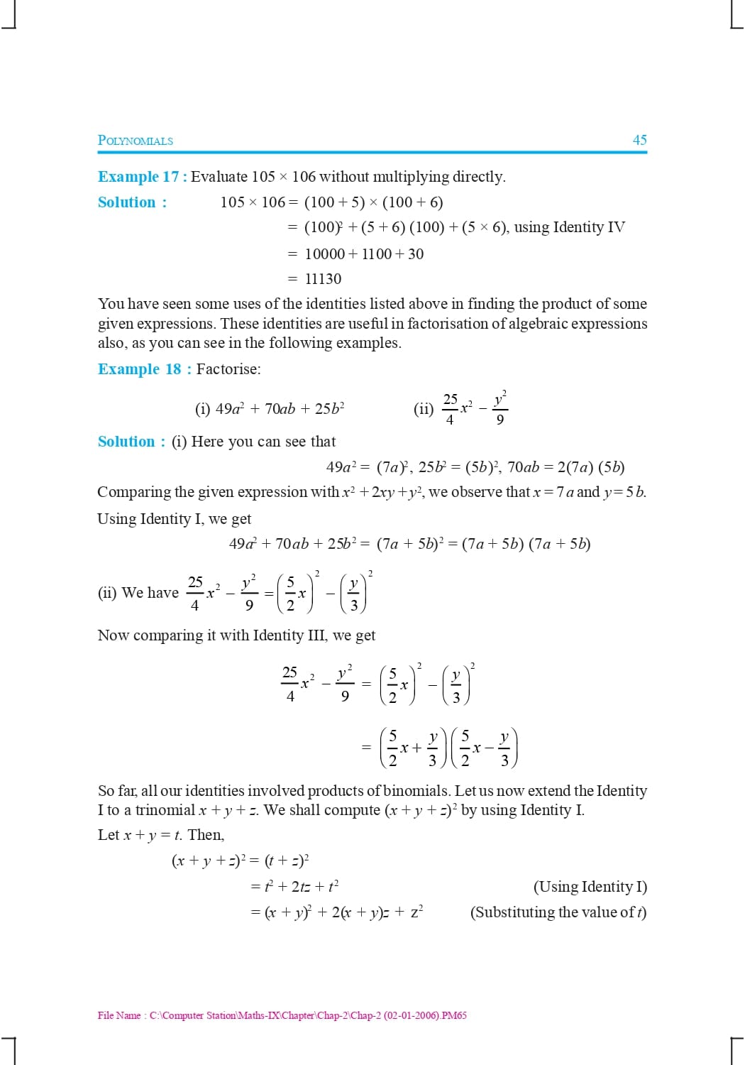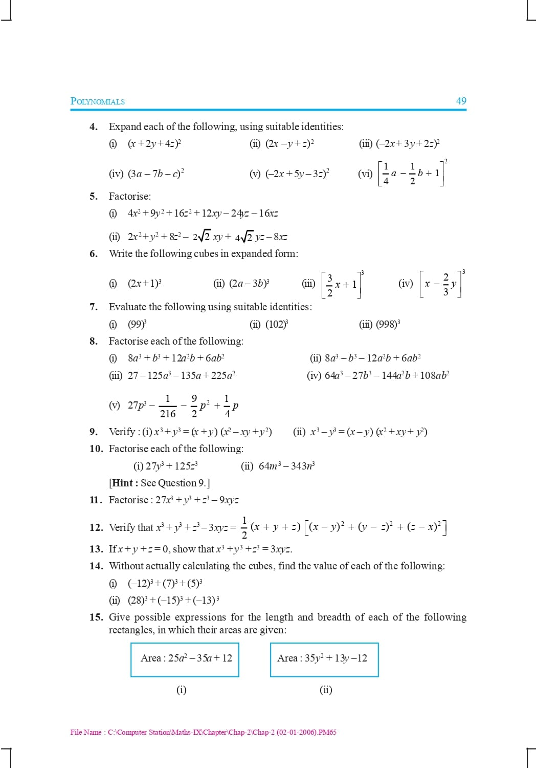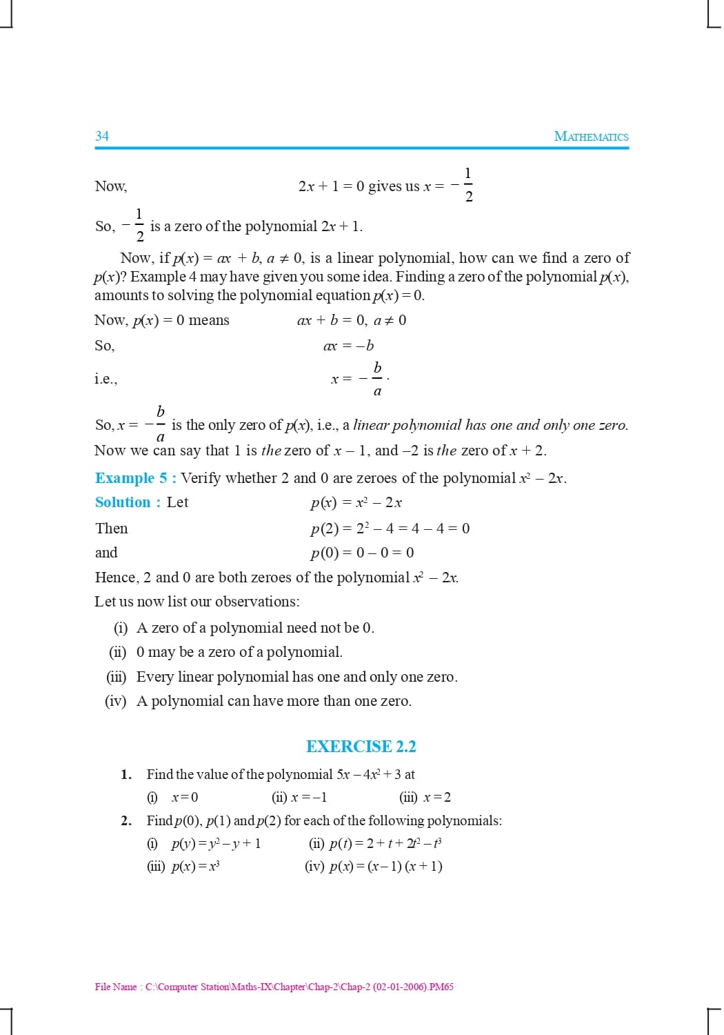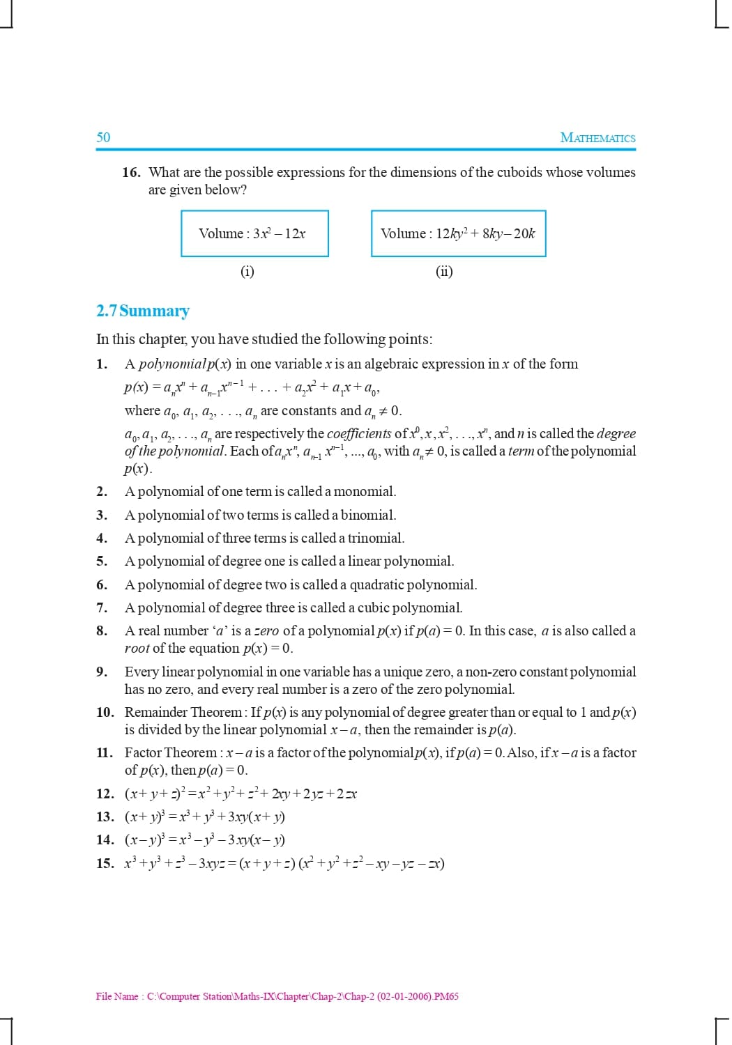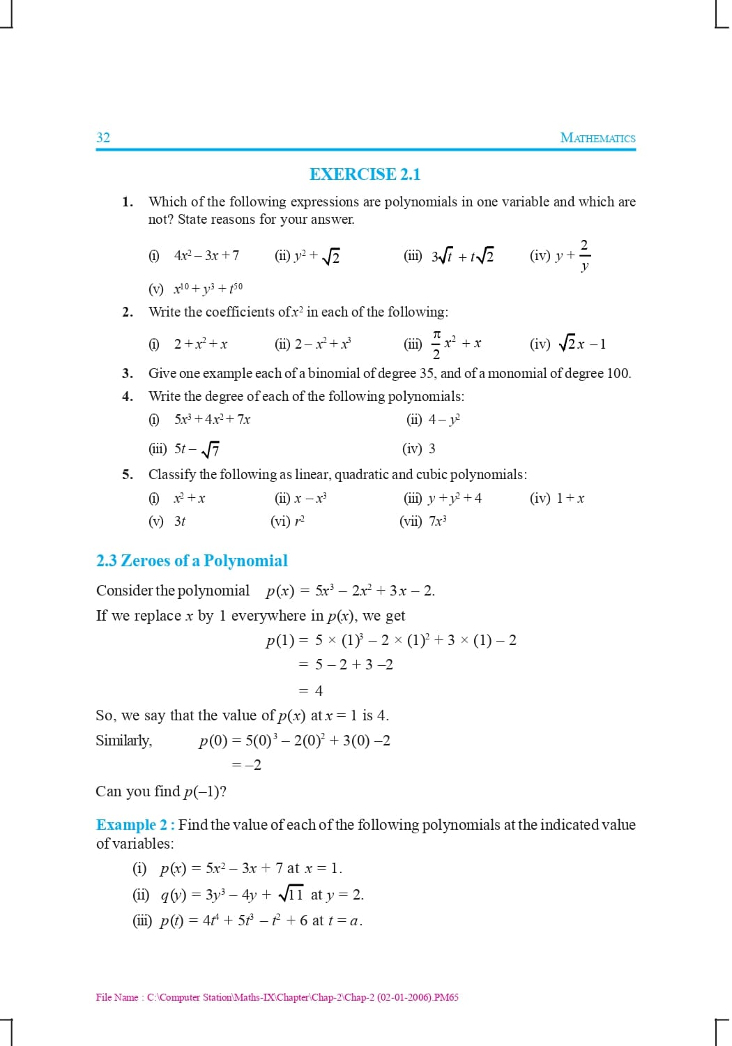 Class 9 Ncert Book Mathematics Chapter 2 – Polynomials