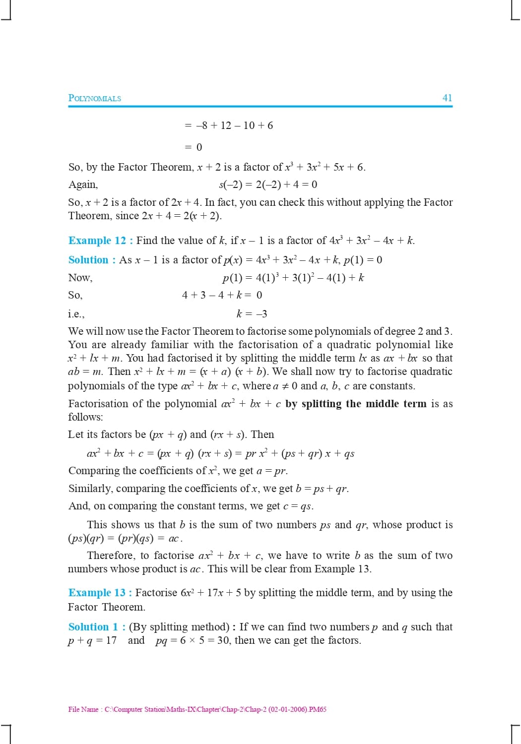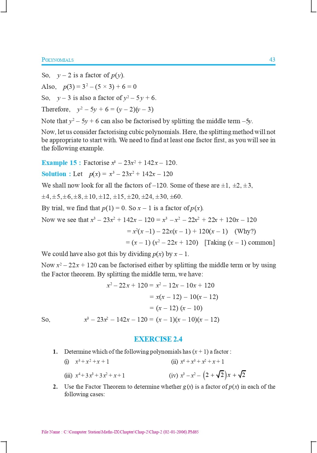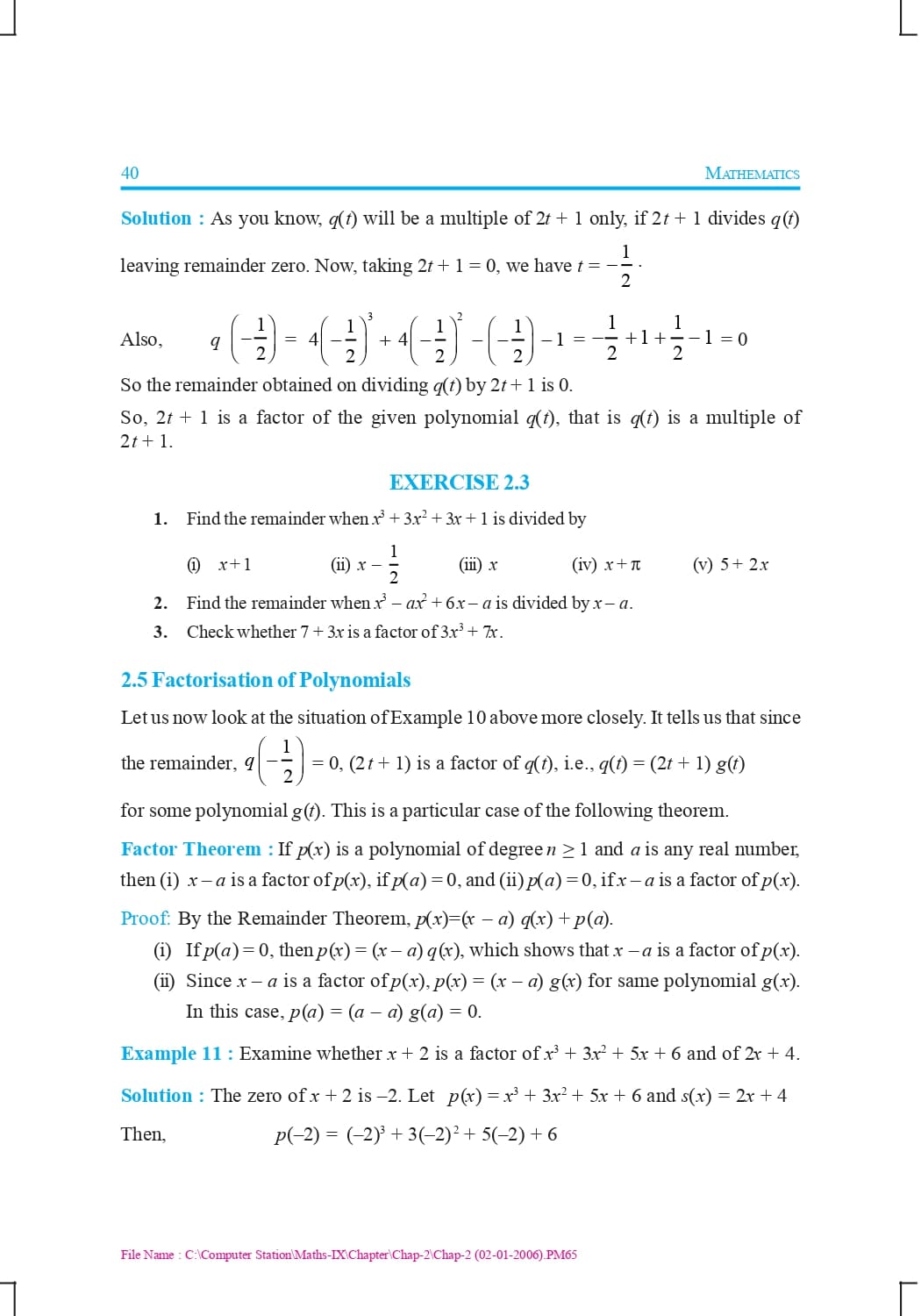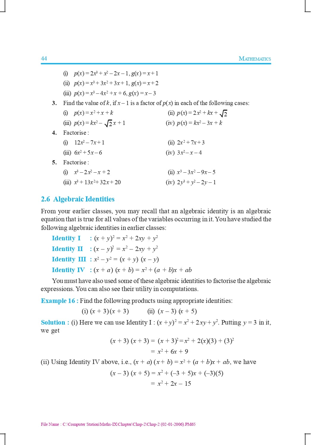 Class 9 Ncert Book Mathematics Chapter 2 – Polynomials