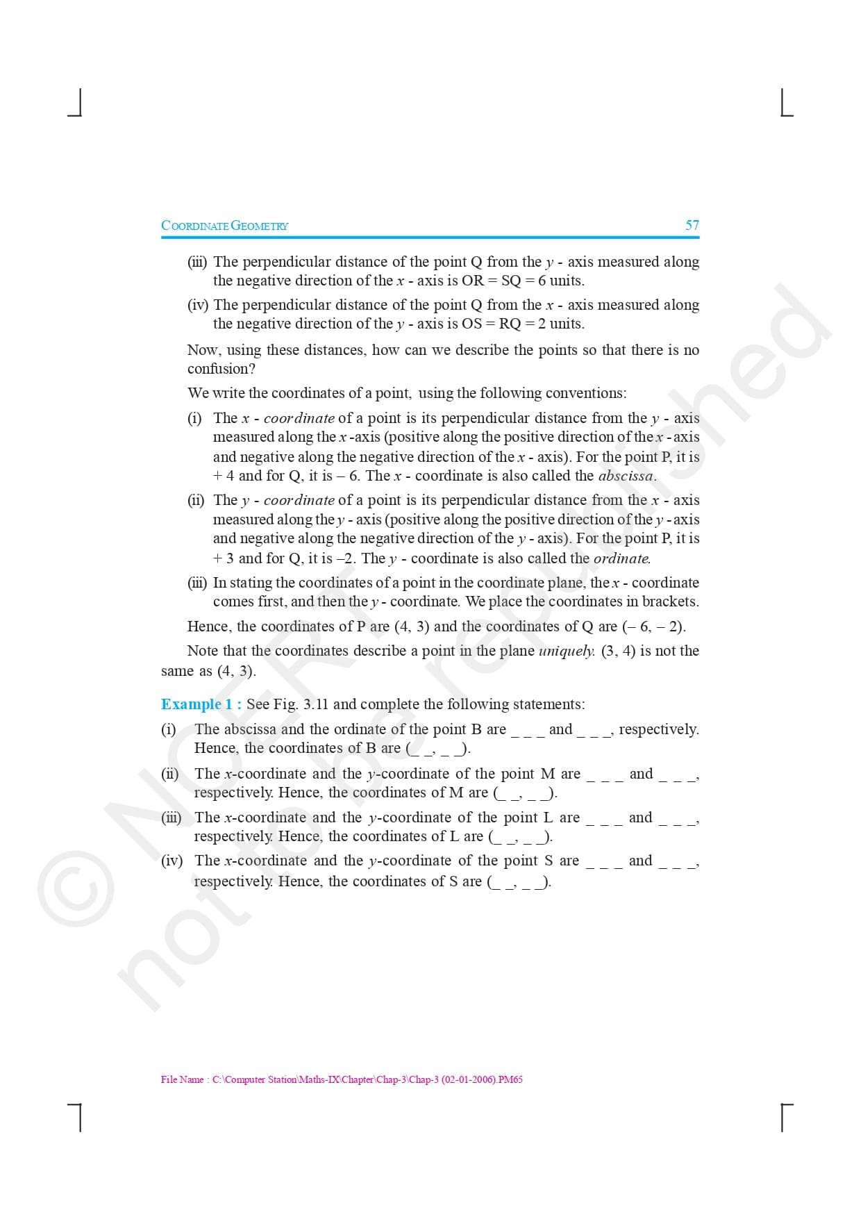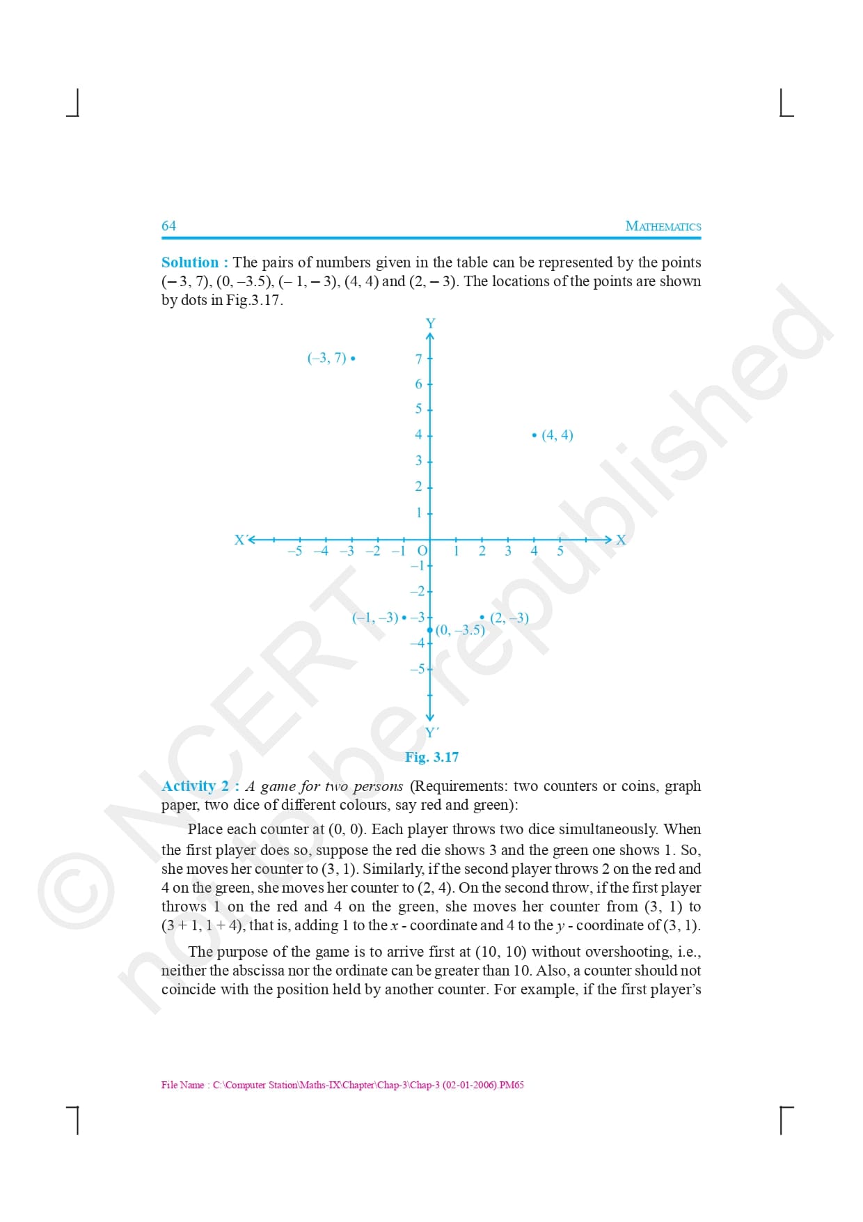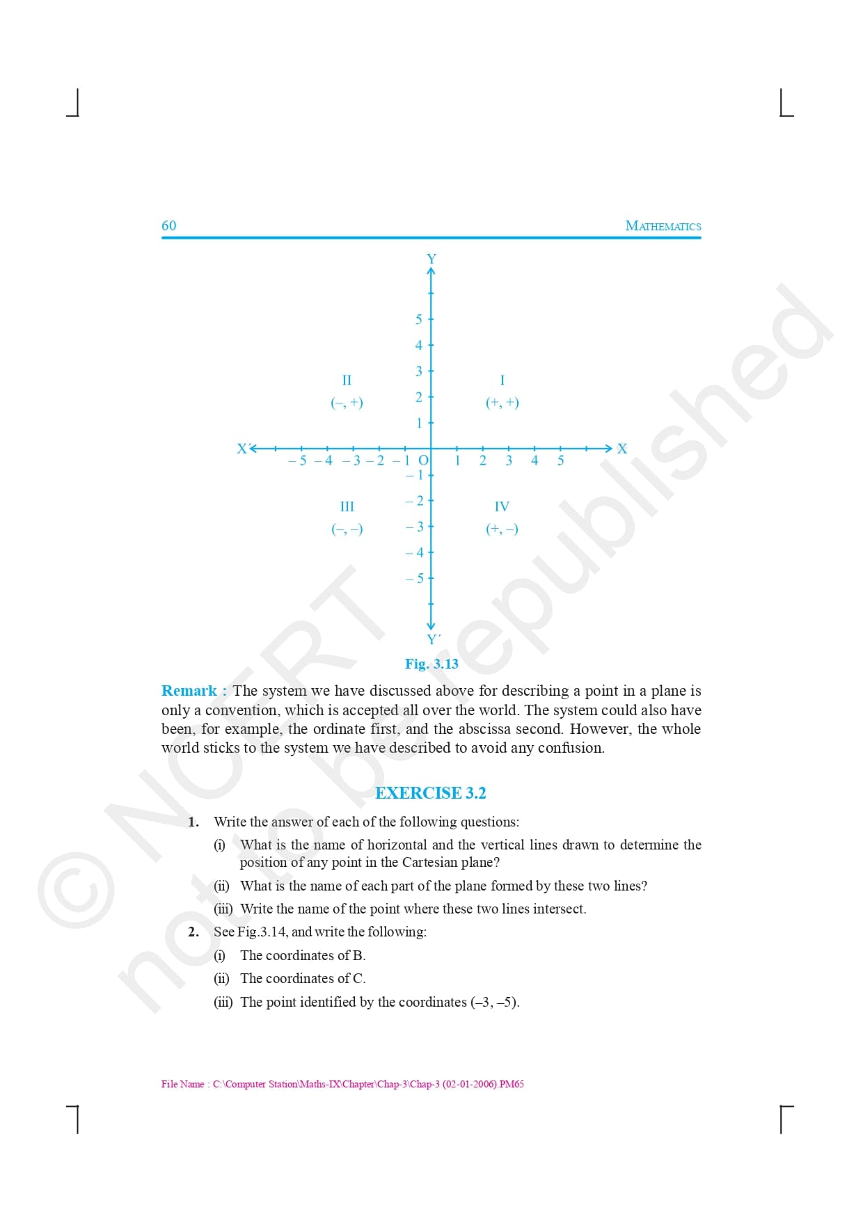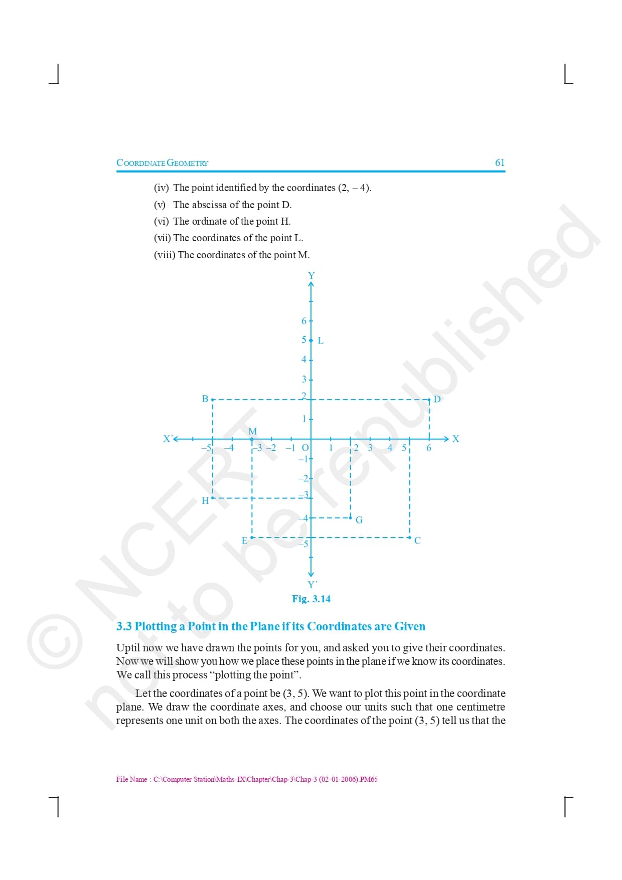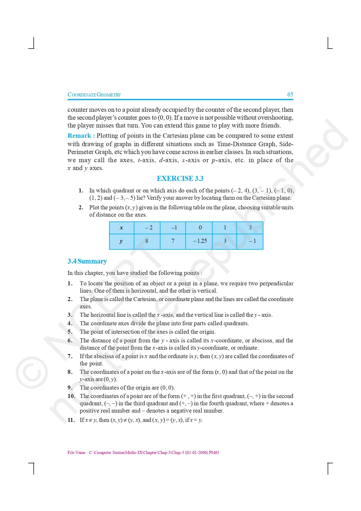 Class 9 Ncert Book Mathematics Chapter 3 – Coordinate Geometry
