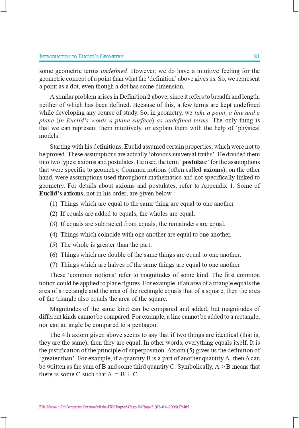 - Chapter 5 Introduction to Euclid’s Geometry