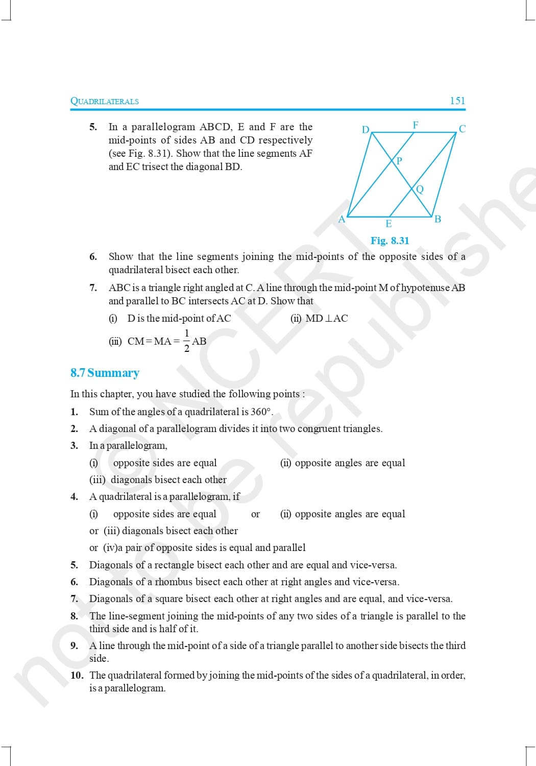 Class 9 Ncert Book Mathematics Chapter 8 – Quadrilaterals