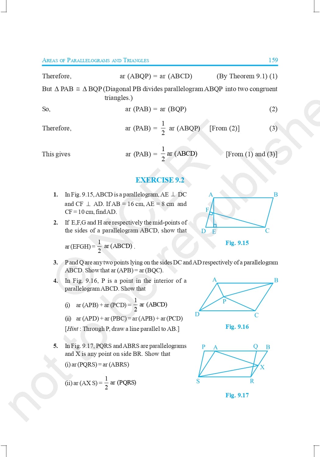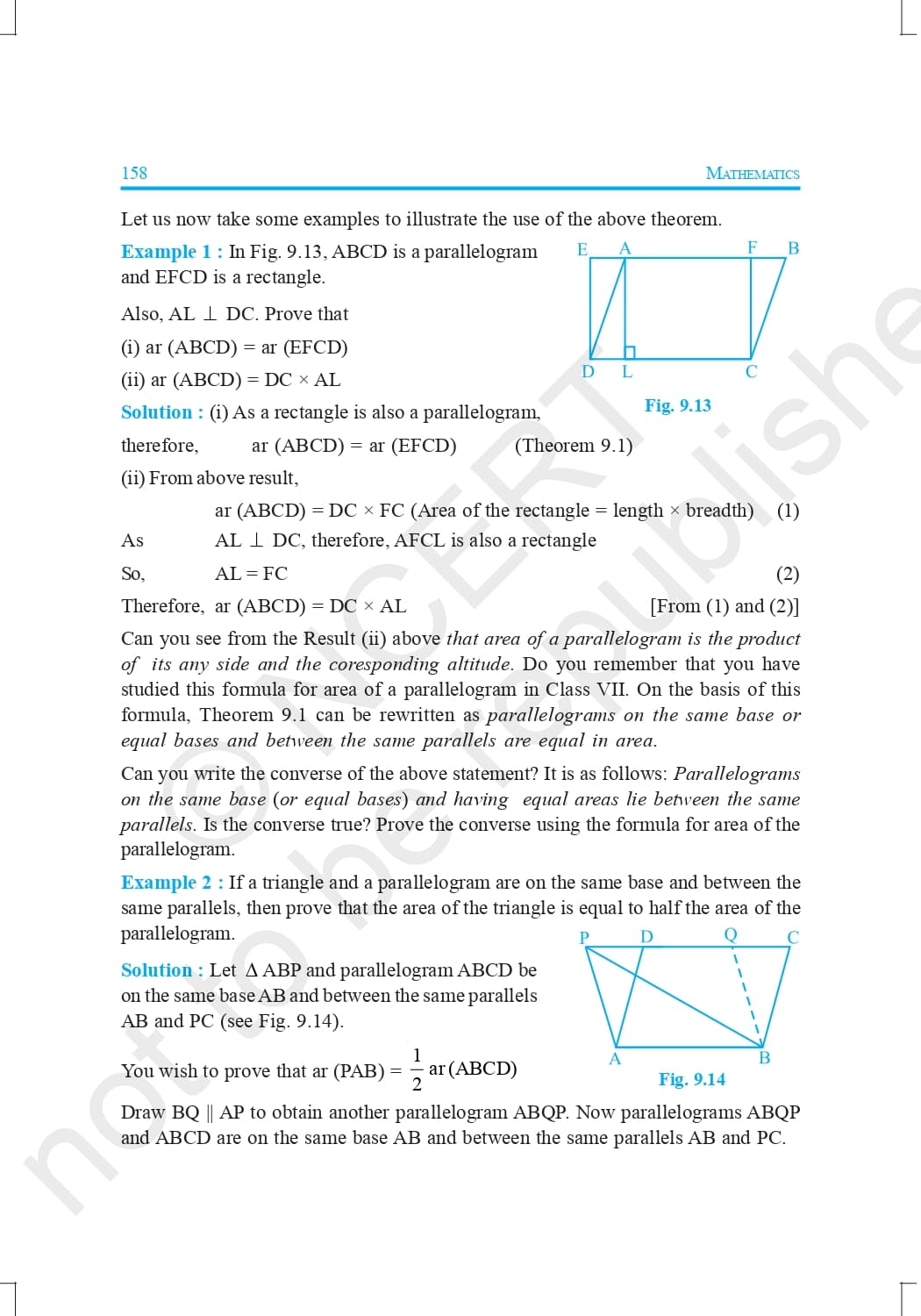 Class 9 Ncert Book Mathematics Chapter 9 – Areas of Parallelograms and Triangles