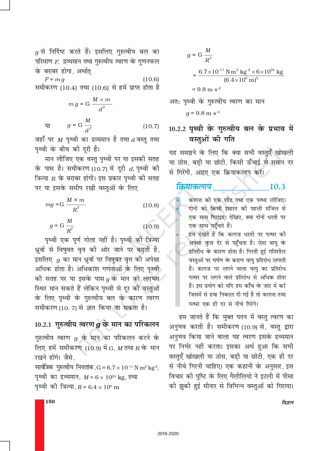 Class 9 Ncert Book विज्ञान PDF Chapter 10 -गुरुत्वाकर्षण