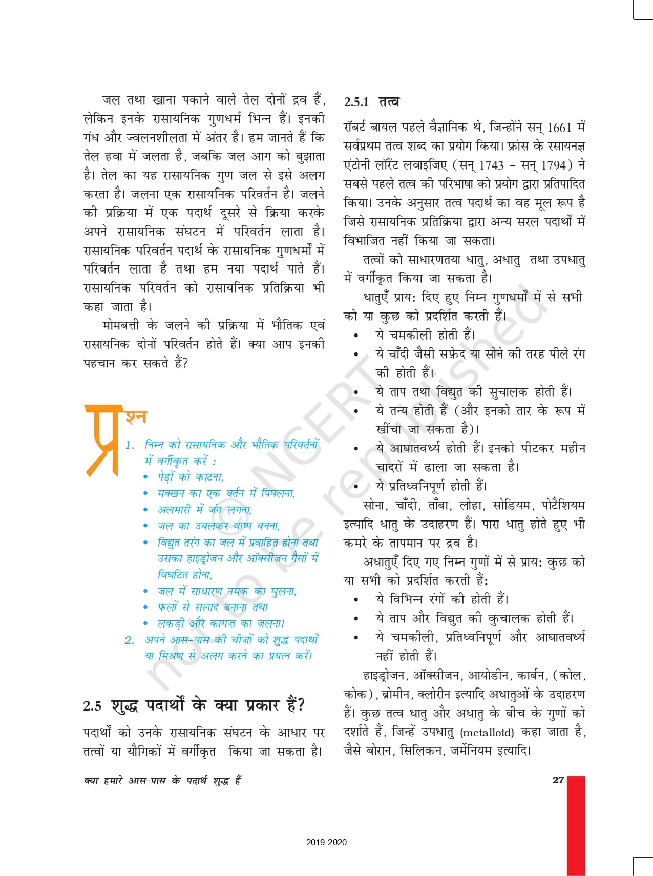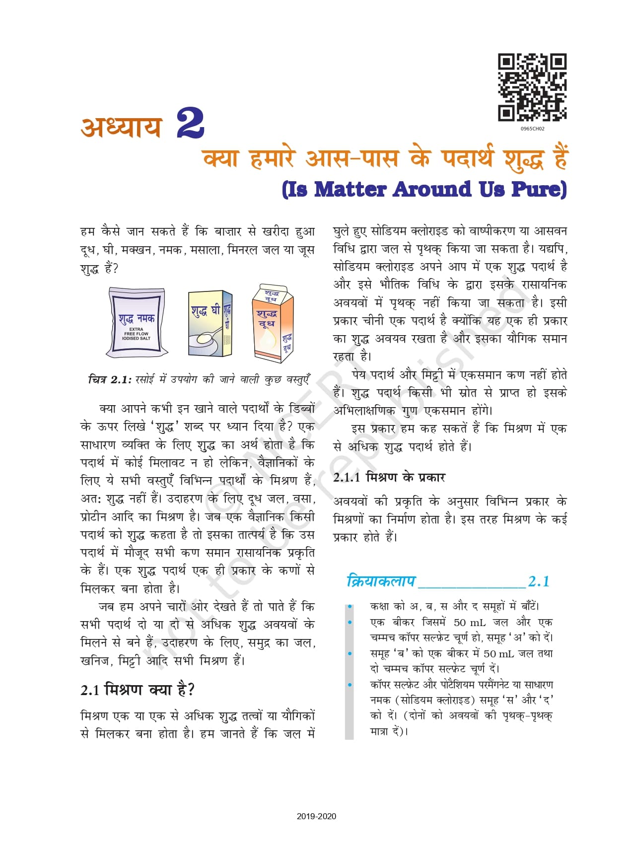 - अध्याय 2: क्या हमारे आस – पास के पदार्थ शुद्ध हैं