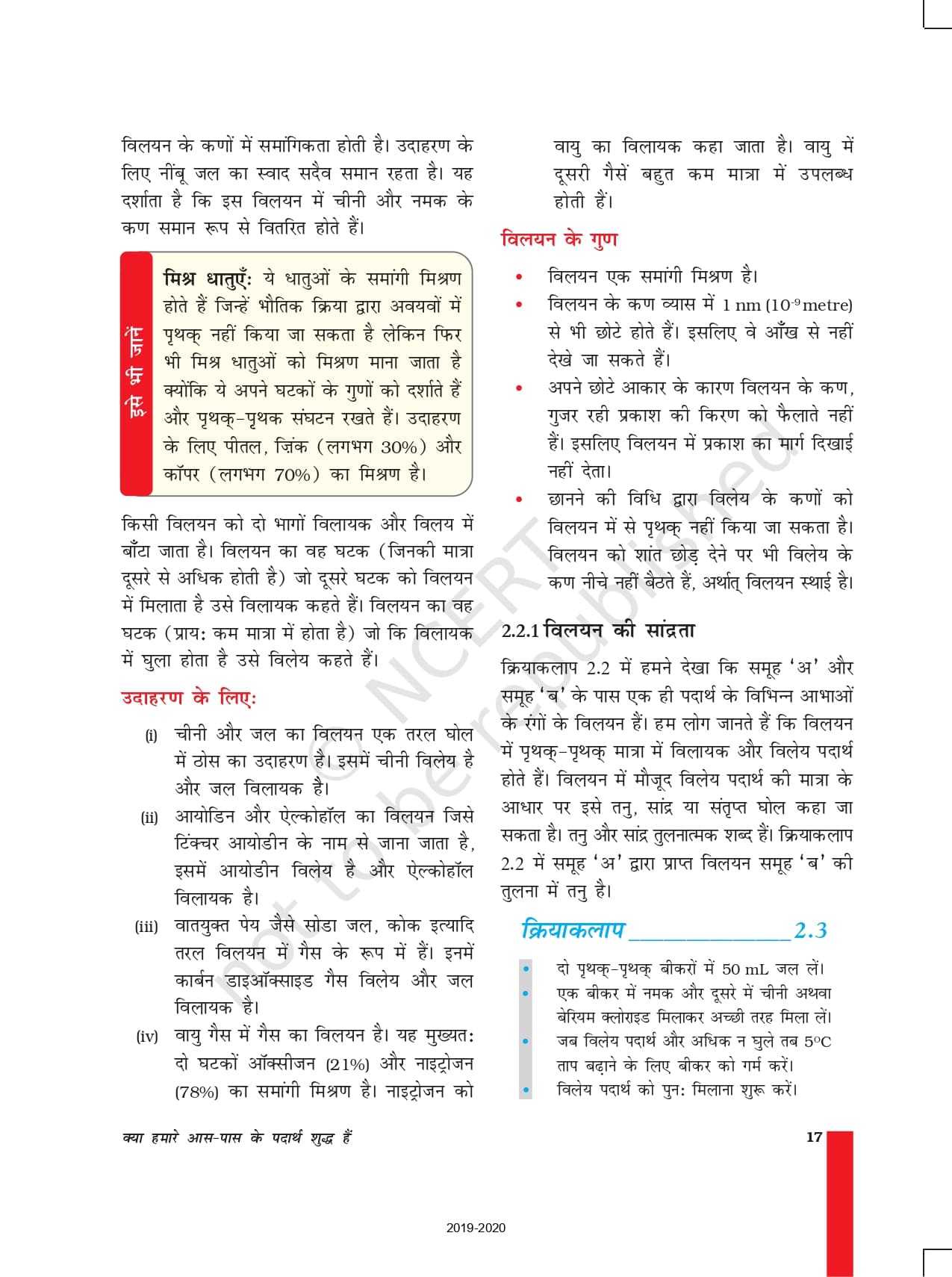 Ncert Books Class 9 Science (विज्ञान) – Chapter 2 – क्या हमारे आस – पास के पदार्थ शुद्ध हैं