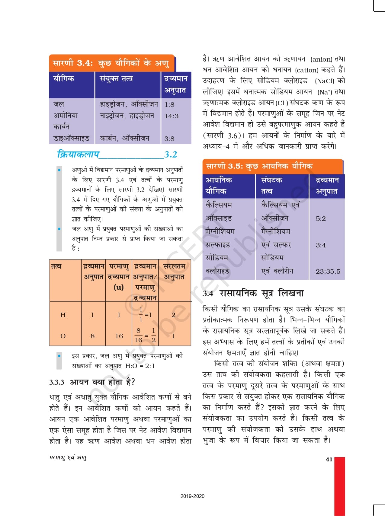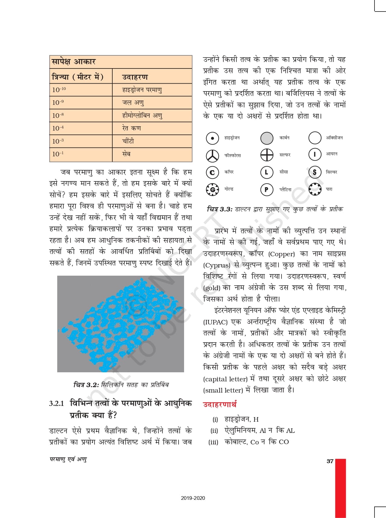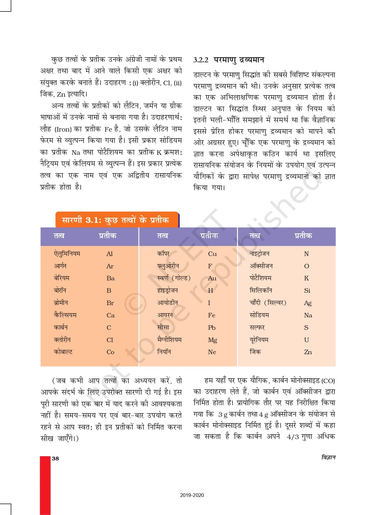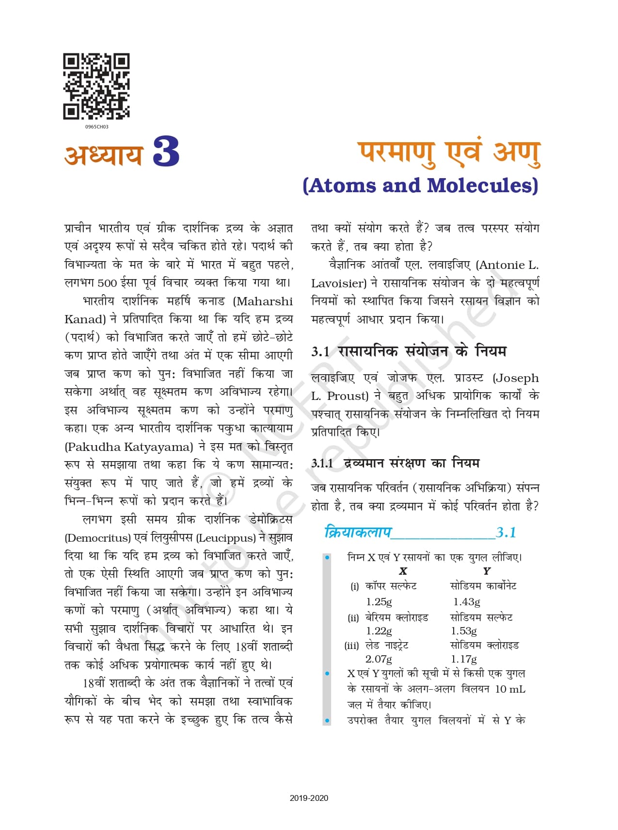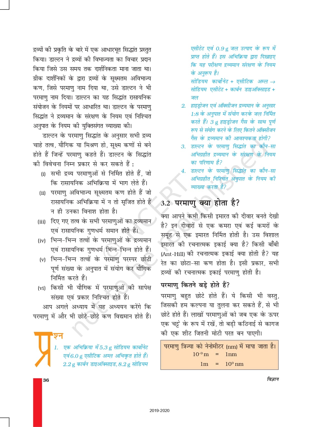 Ncert Books Class 9 Science (विज्ञान) – Chapter 3 – परमाणु एवं अणु