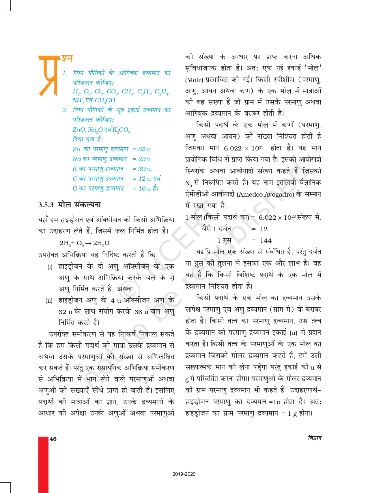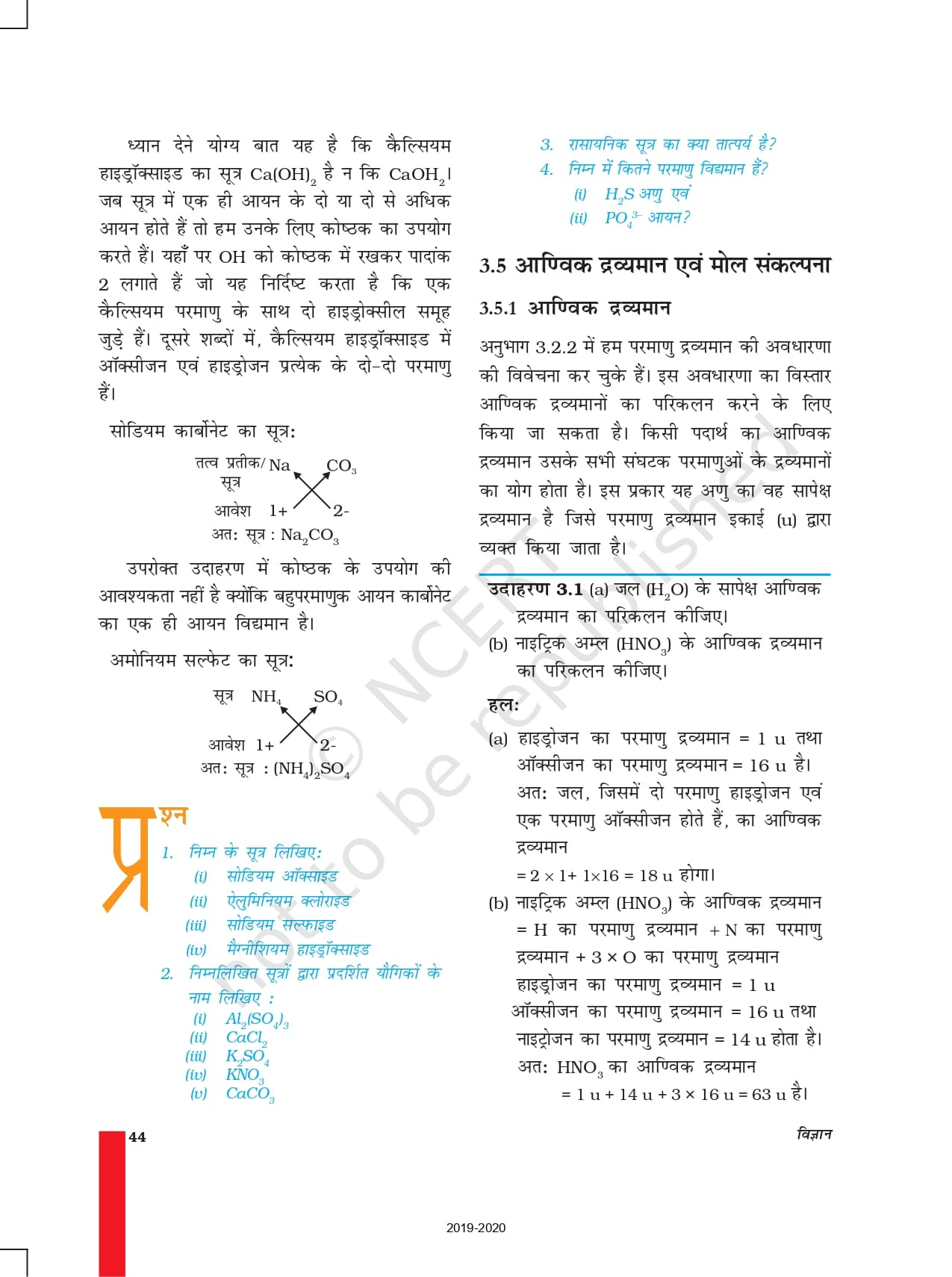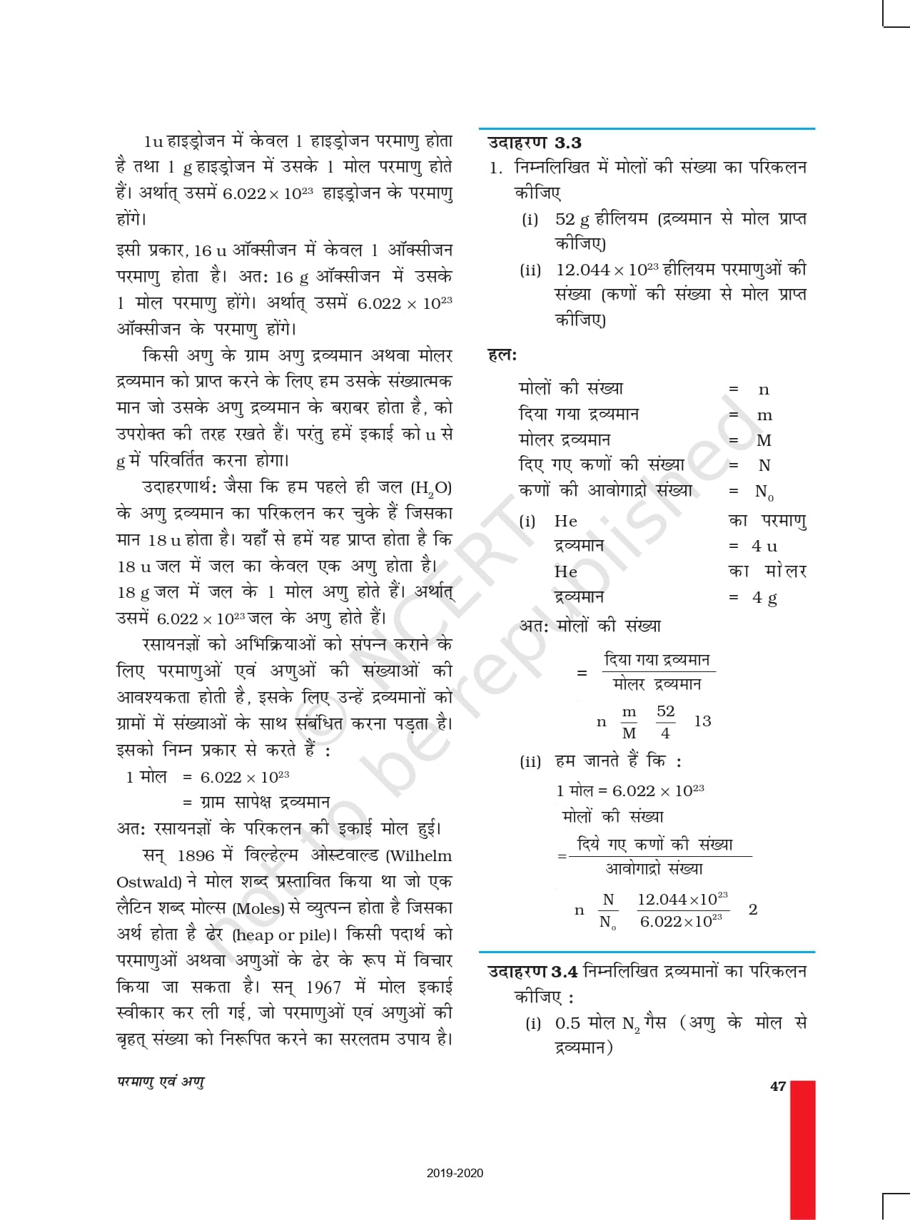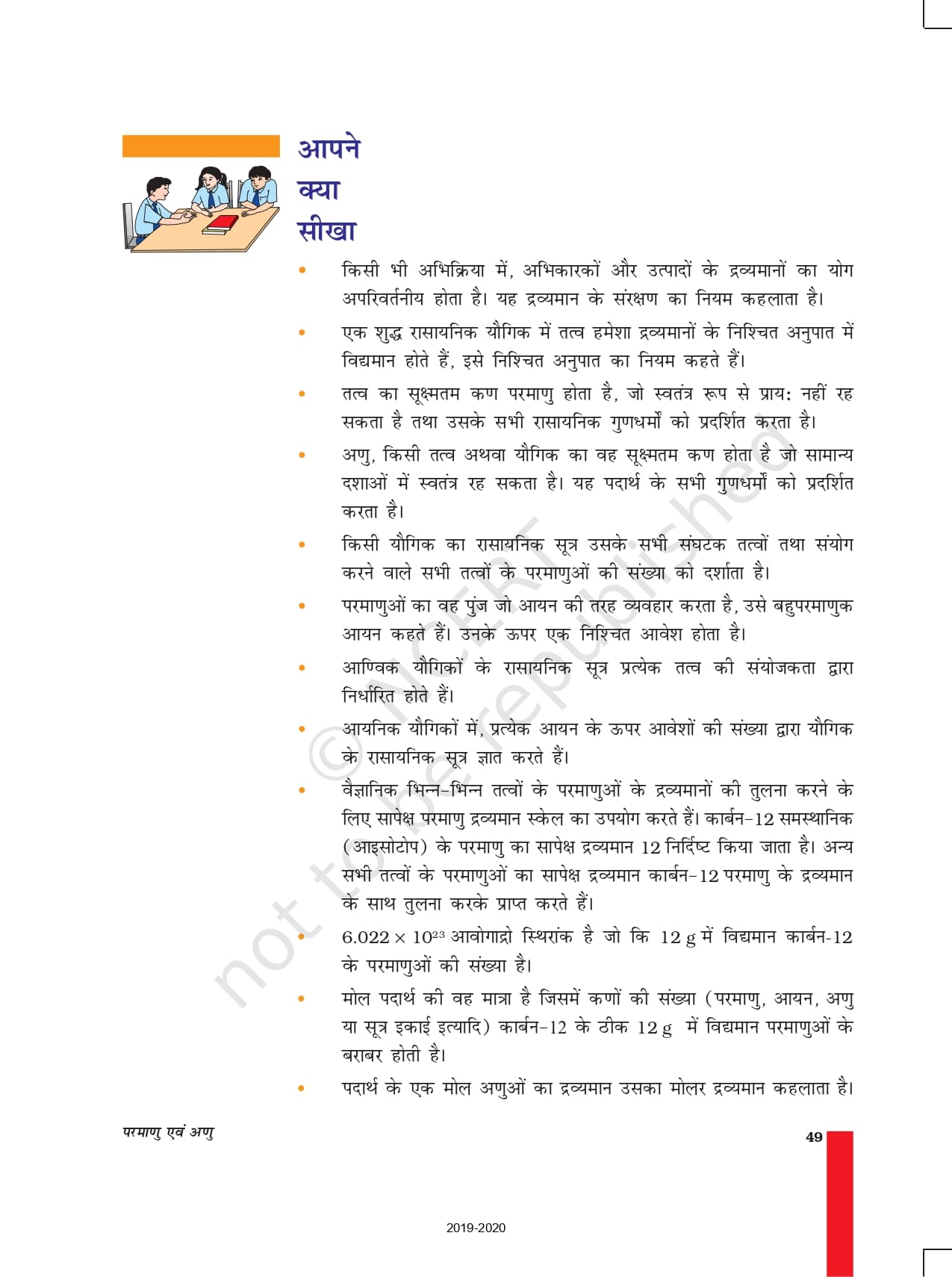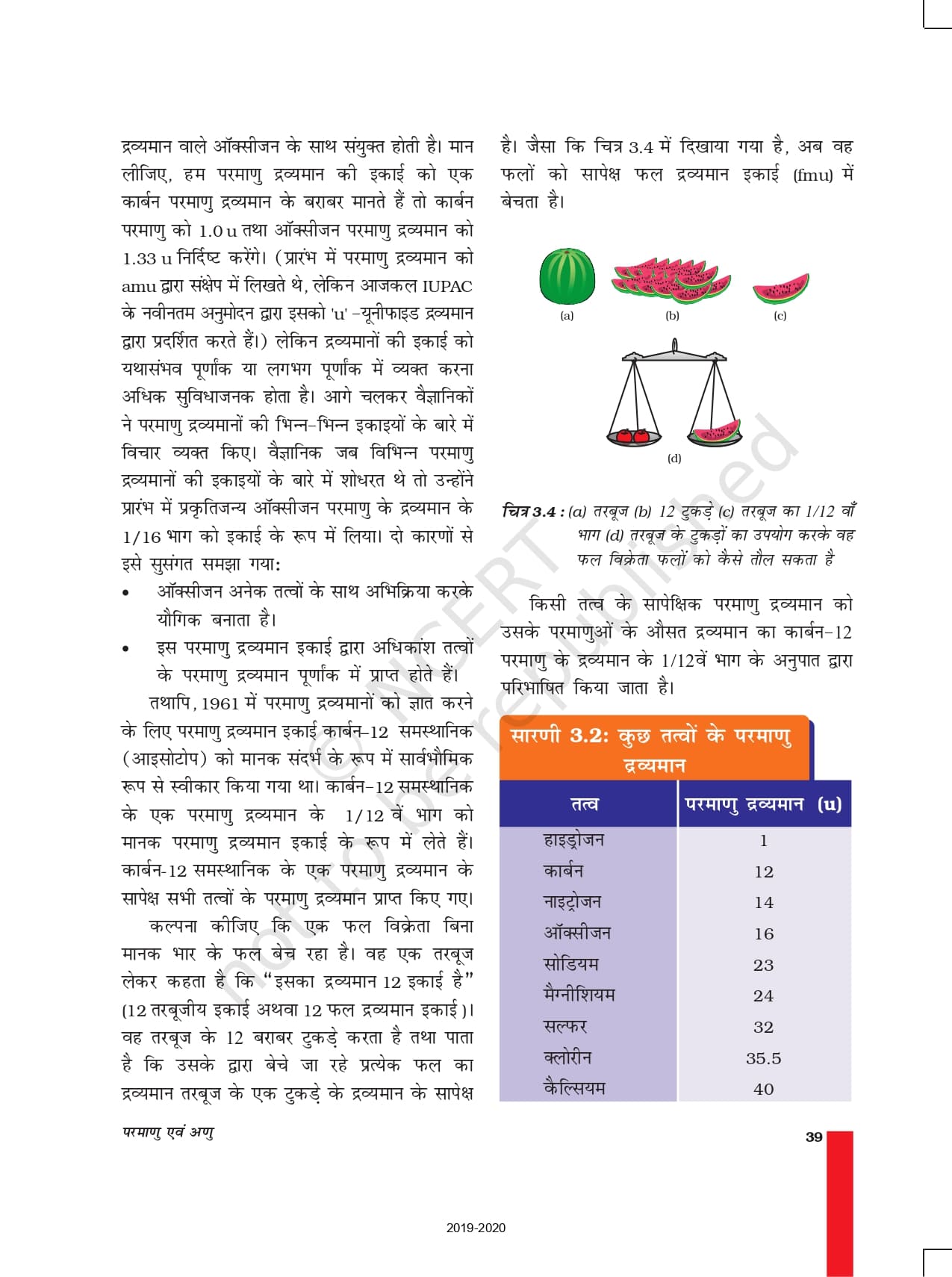 Ncert Books Class 9 Science (विज्ञान) – Chapter 3 – परमाणु एवं अणु