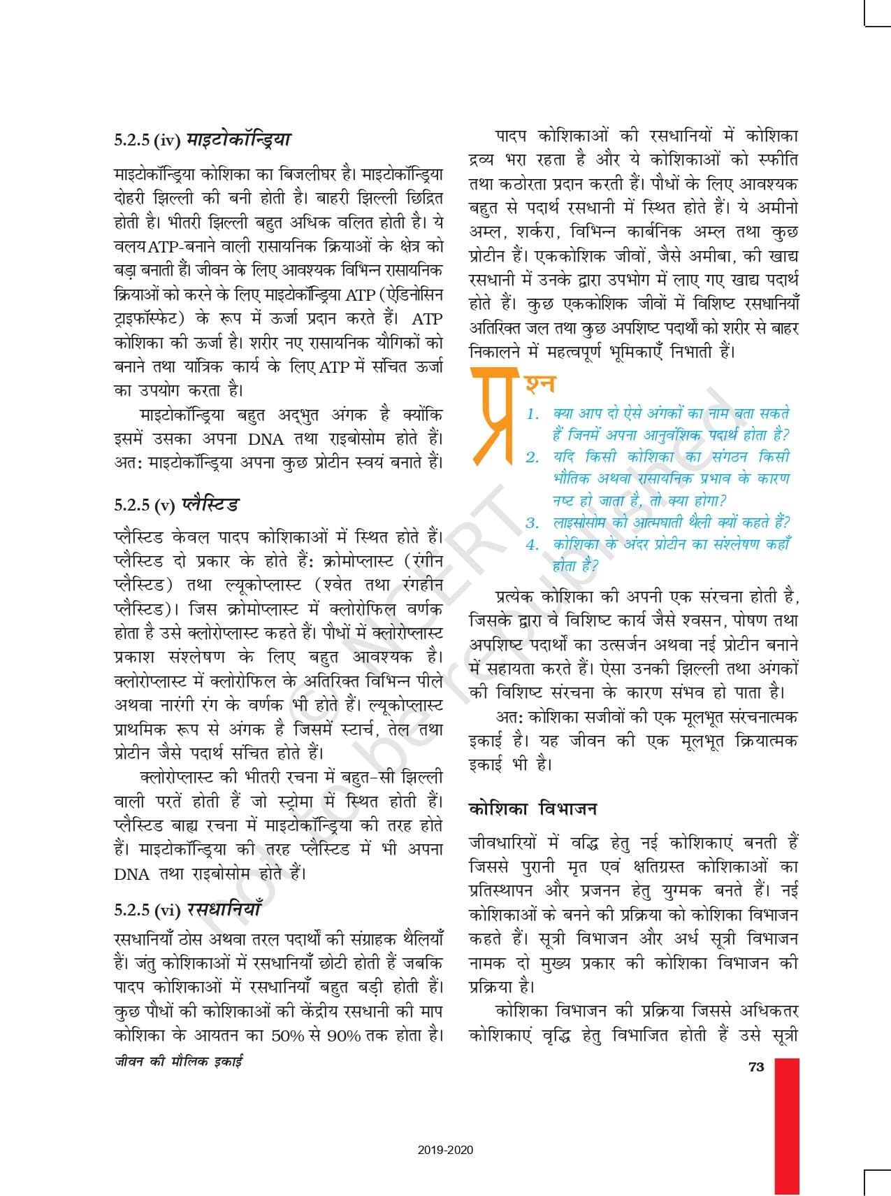 Ncert Books Class 9 Science (विज्ञान) – Chapter 5 – जीवन की मौलिक इकाई