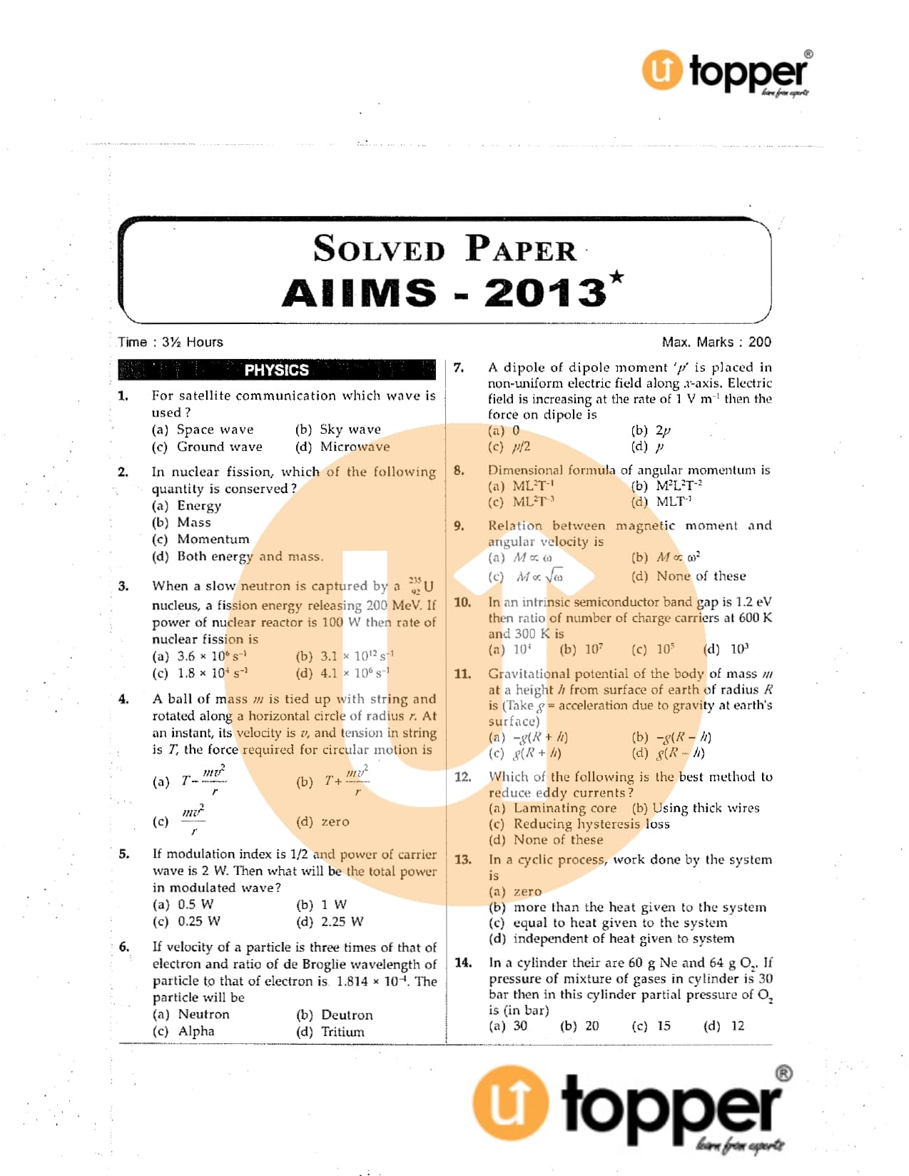 AIIMS 2013 Previous Year Question Paper with Solutions Pdf