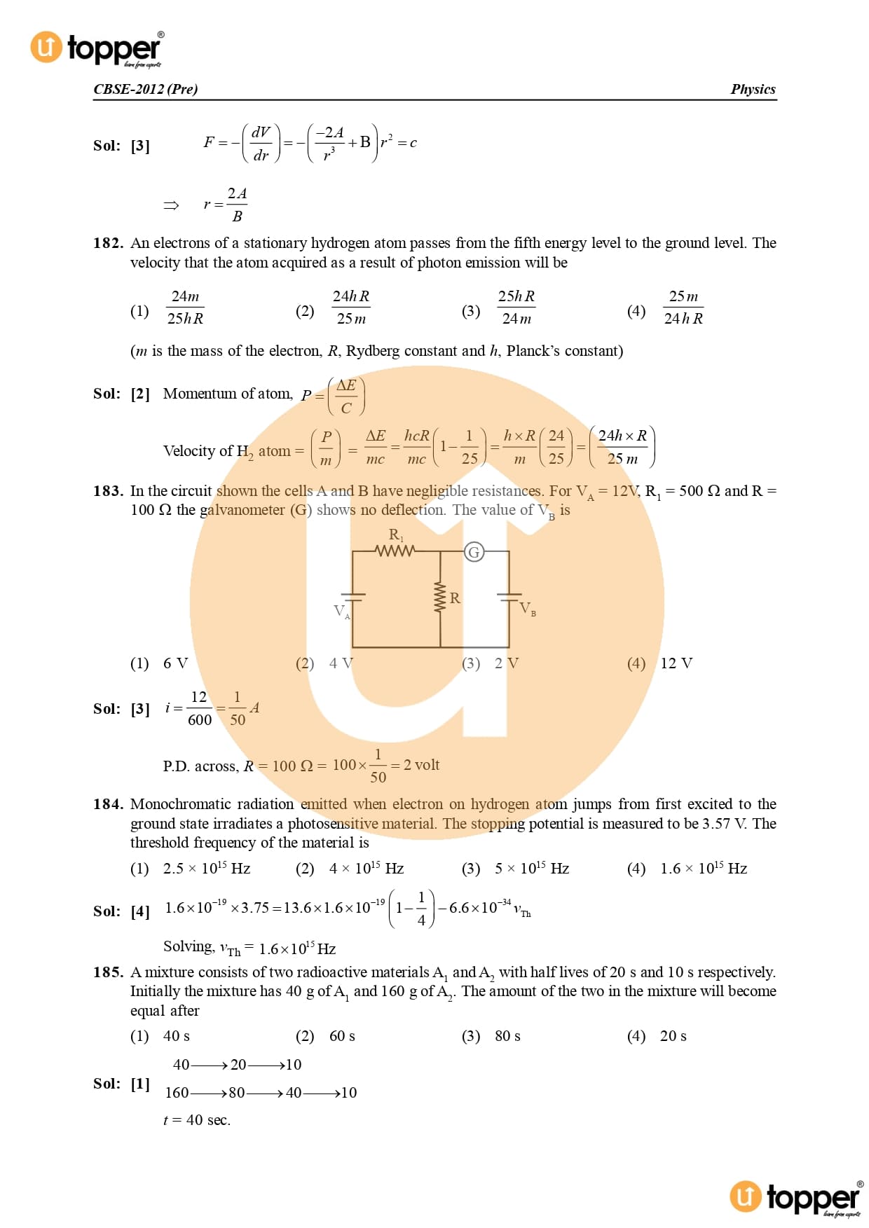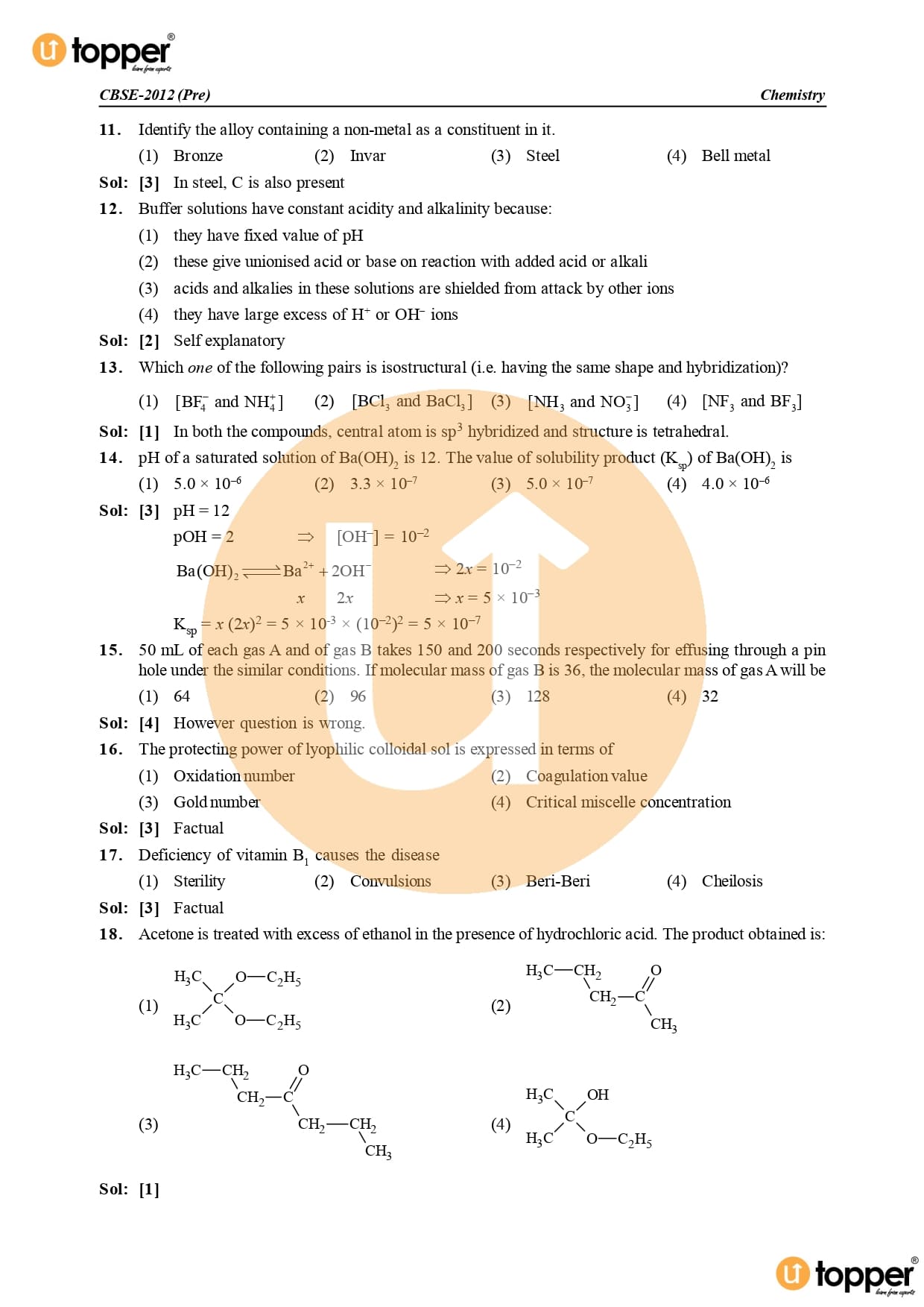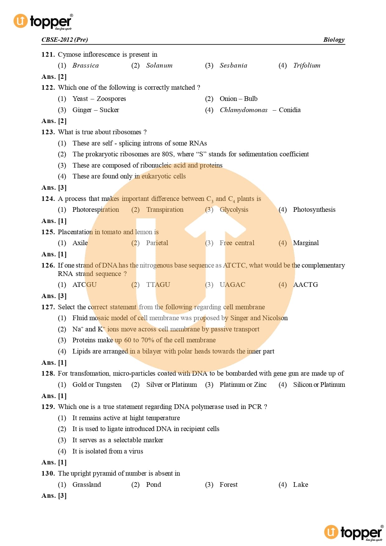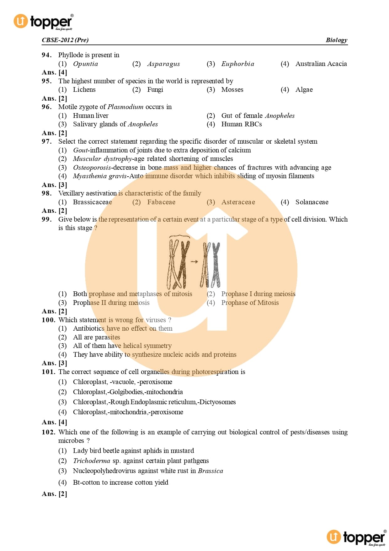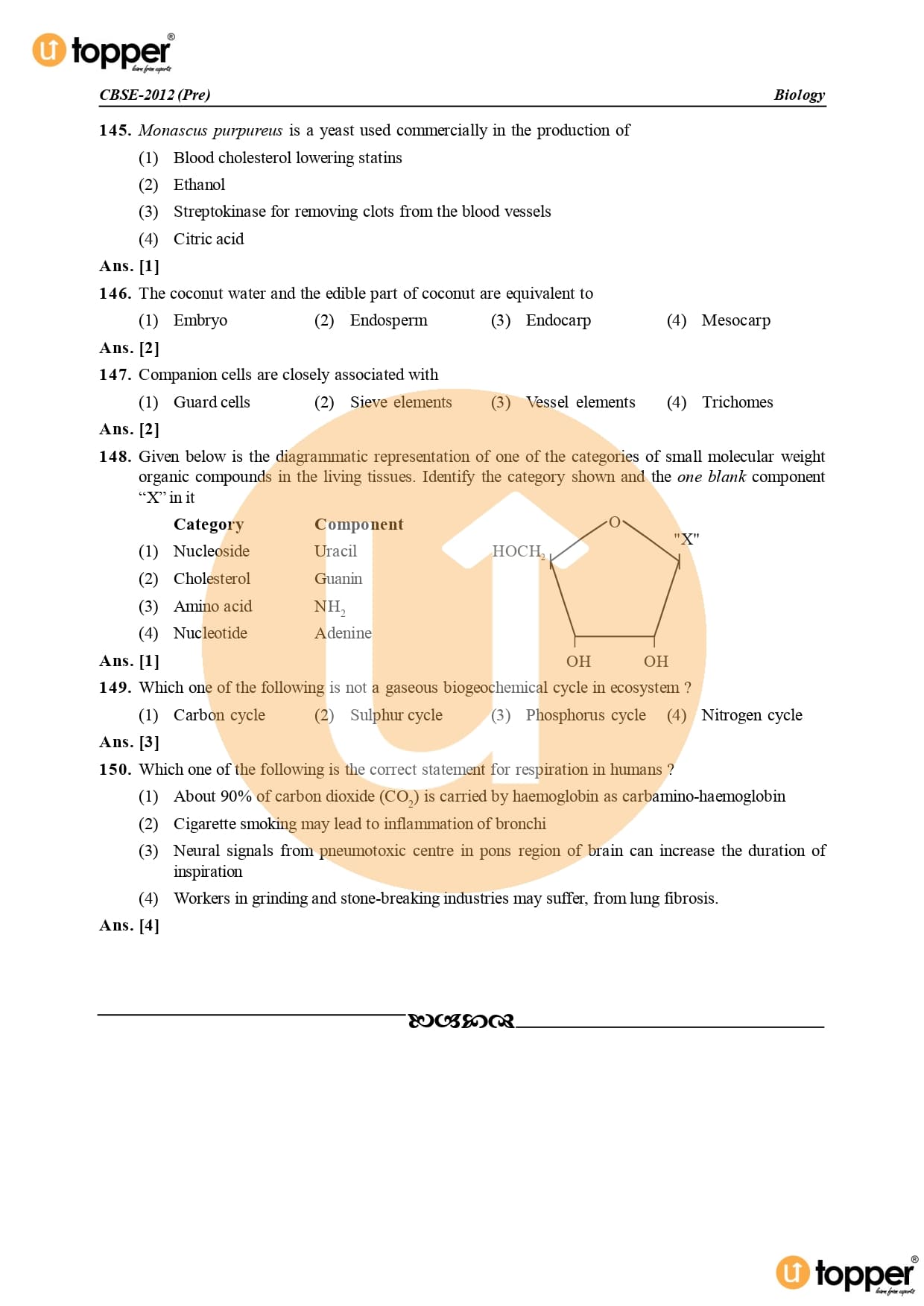 AIPMT ( Pre ) 2012 Previous Year Question Paper with Solutions Pdf