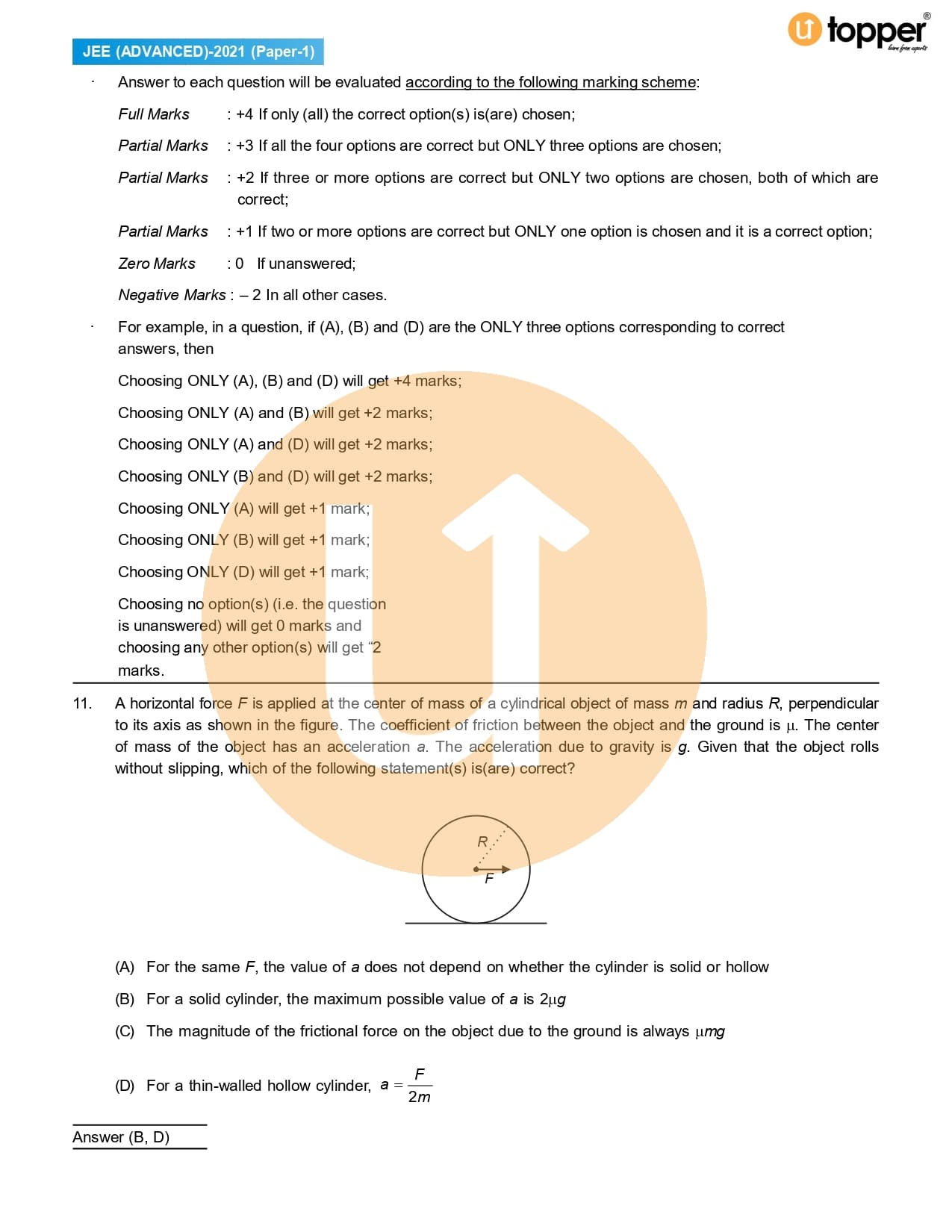 JEE Advenced 2021 Physics Previous Year Question Paper – 1 with Solutions Pdf