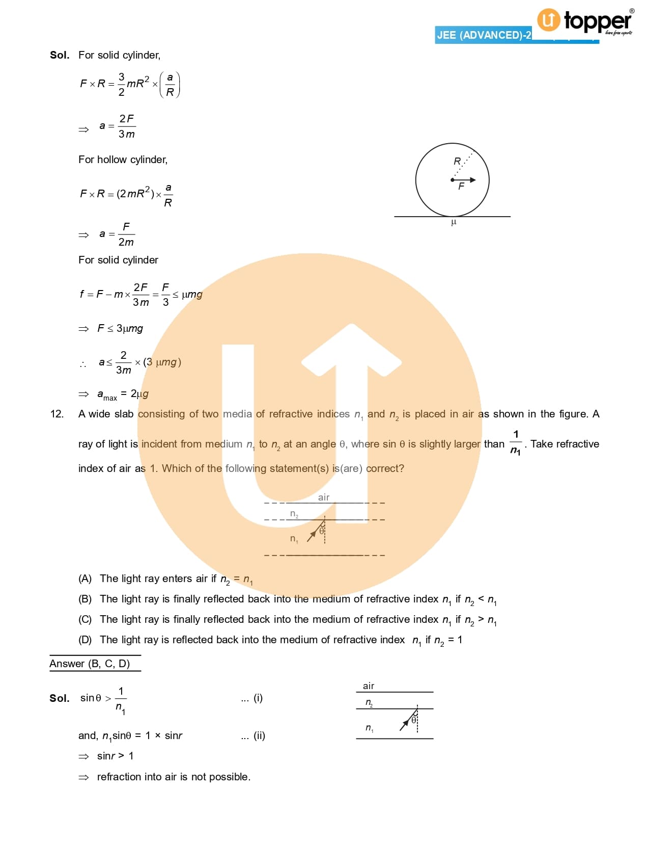 Utopper provides solutions to JEE Advanced Paper 1. These solutions come in PDF format with the free download option. These can also be availed online at Utopper’s learning portal. Both the Question Papers for JEE Advanced are compulsory for the students who clear JEE Main. These solved Paper 1 have solutions of Physics. JEE Advanced doesn’t have a fixed exam pattern. The number of questions asked in the exam paper varies every year with a surprise element. Variations of the questions remain almost the same and practising these solved papers will help you understand various types of questions asked.