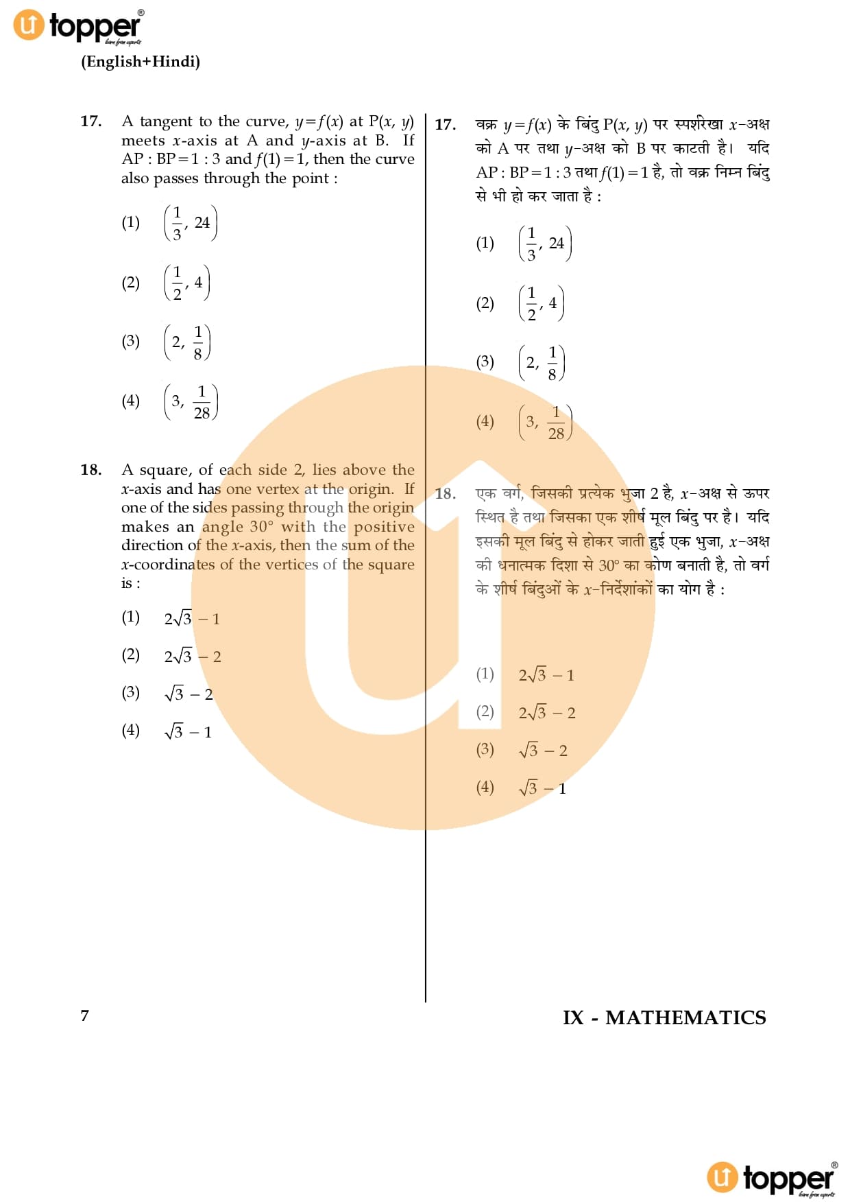 JEE Main 2017 Maths Previous Question Paper (9th April)