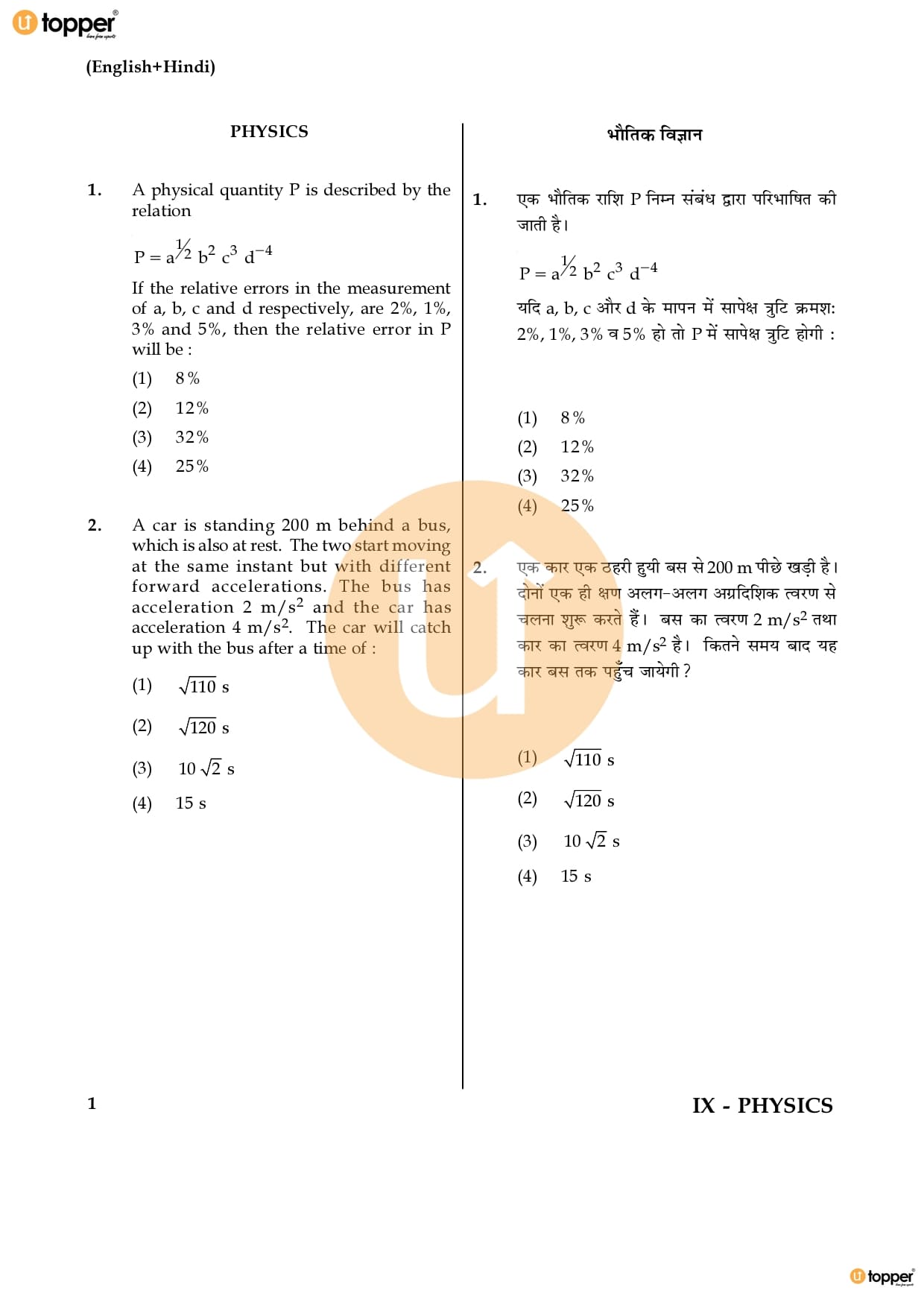 Access JEE Main 2017 Previous Year Question Paper with Solutions – 9th April All Set
