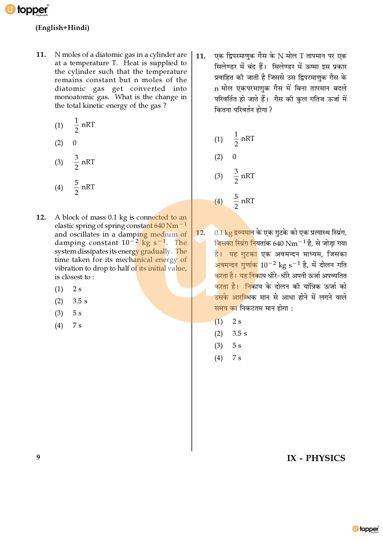 JEE Main 2017 Physics Previous Question Paper (9th April)