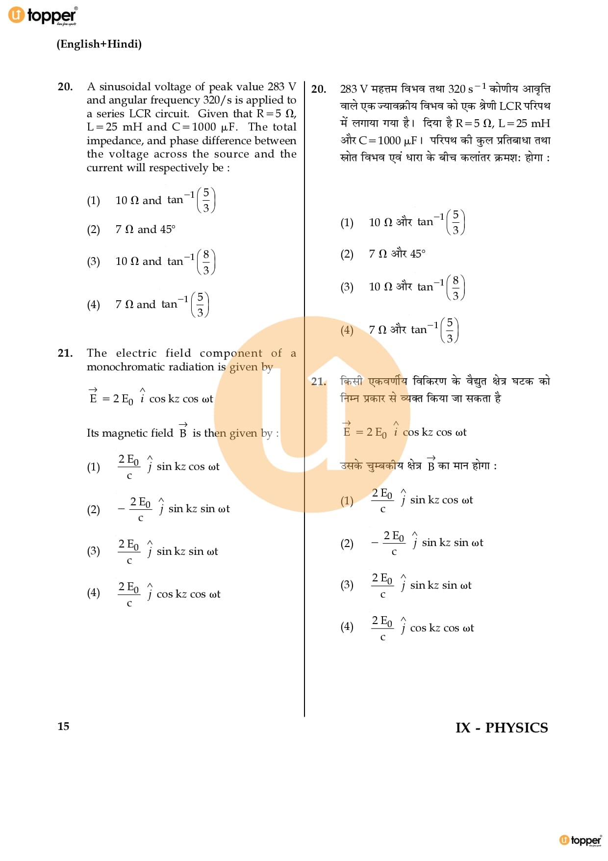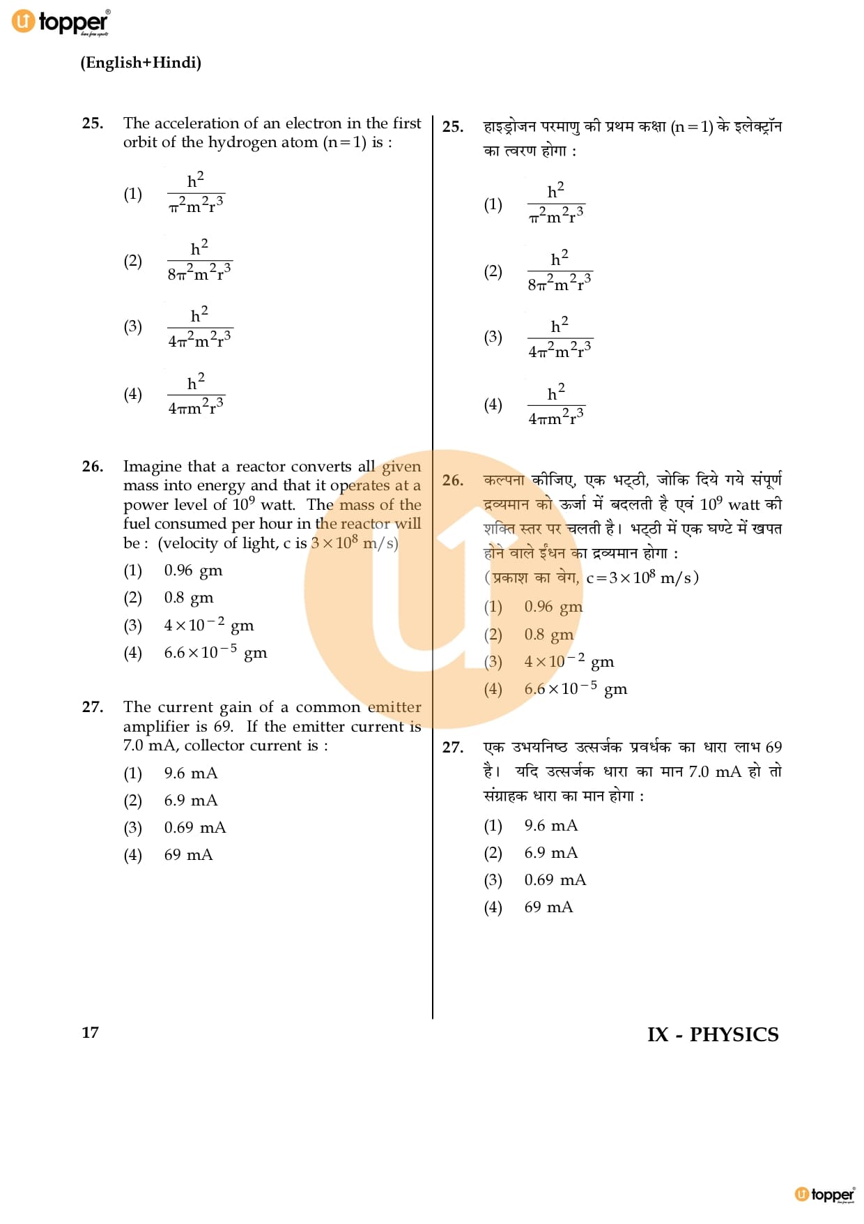 JEE Main 2017 Physics Previous Year Question Paper with Solution (9th April)