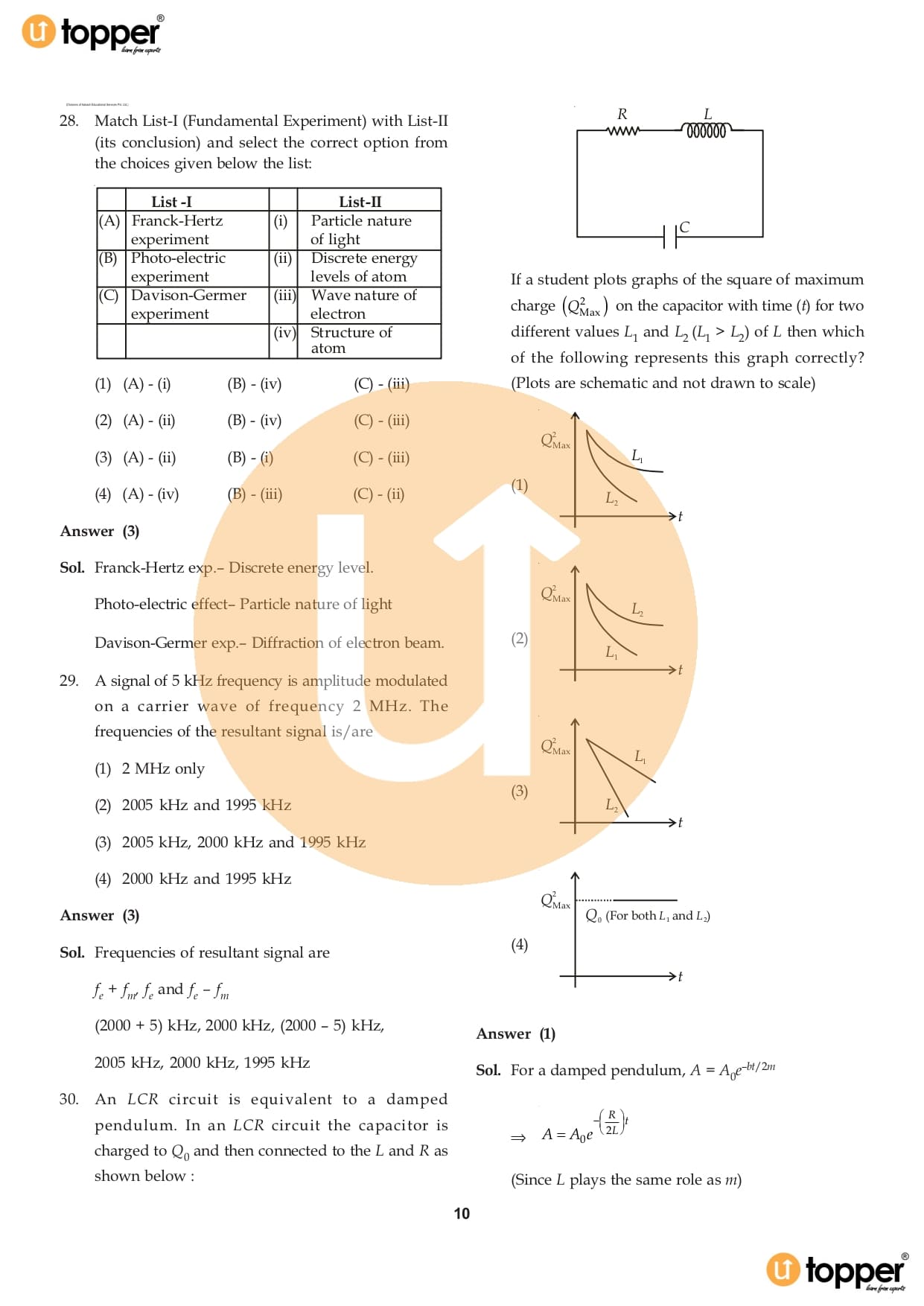 JEE Main 2015 Previous Year Question Paper with Solution Set A (4th April)