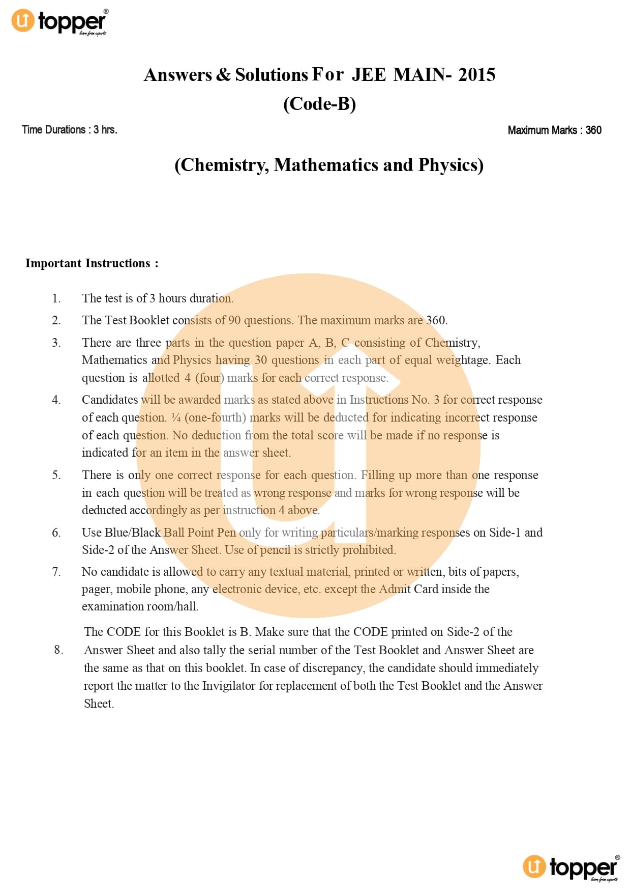 JEE Main 2015 Question Paper Set – B