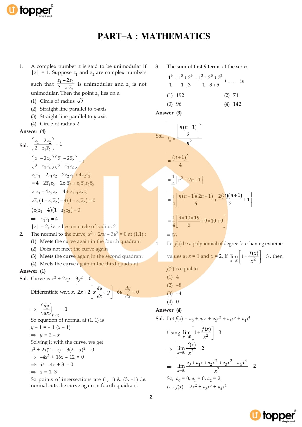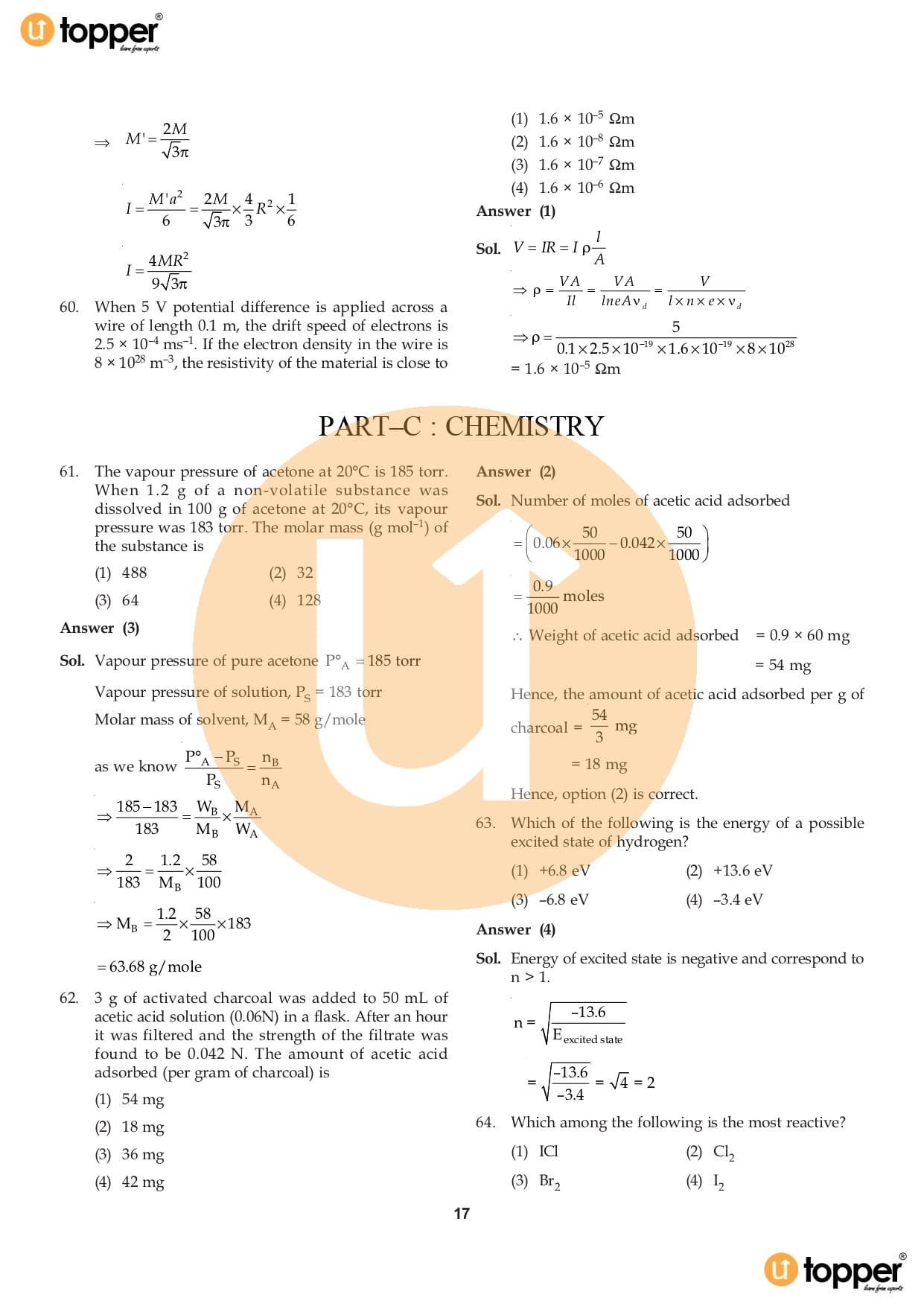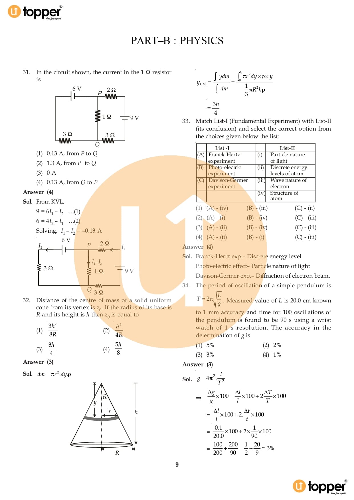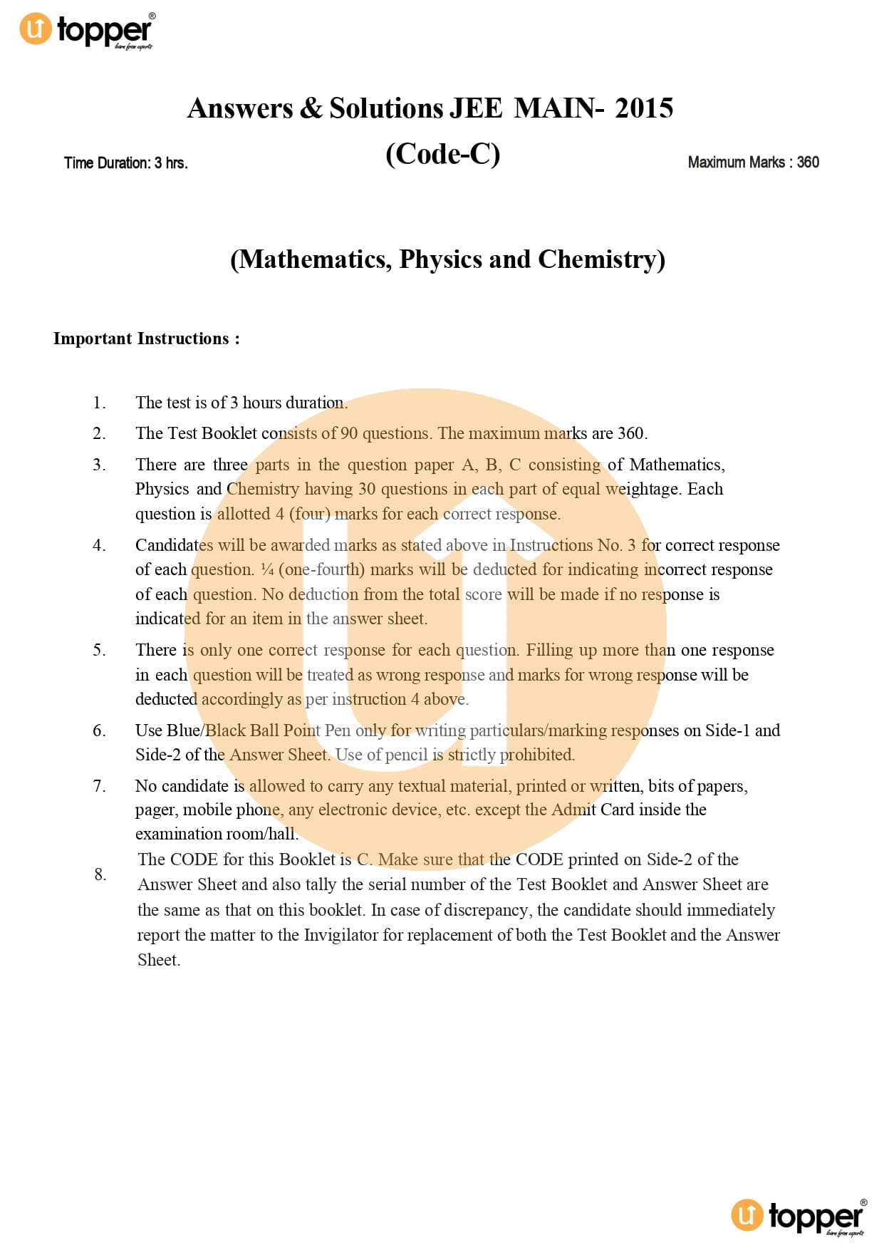 JEE Main 2015 Previous Year Question Paper with Solution Set C (4th April)