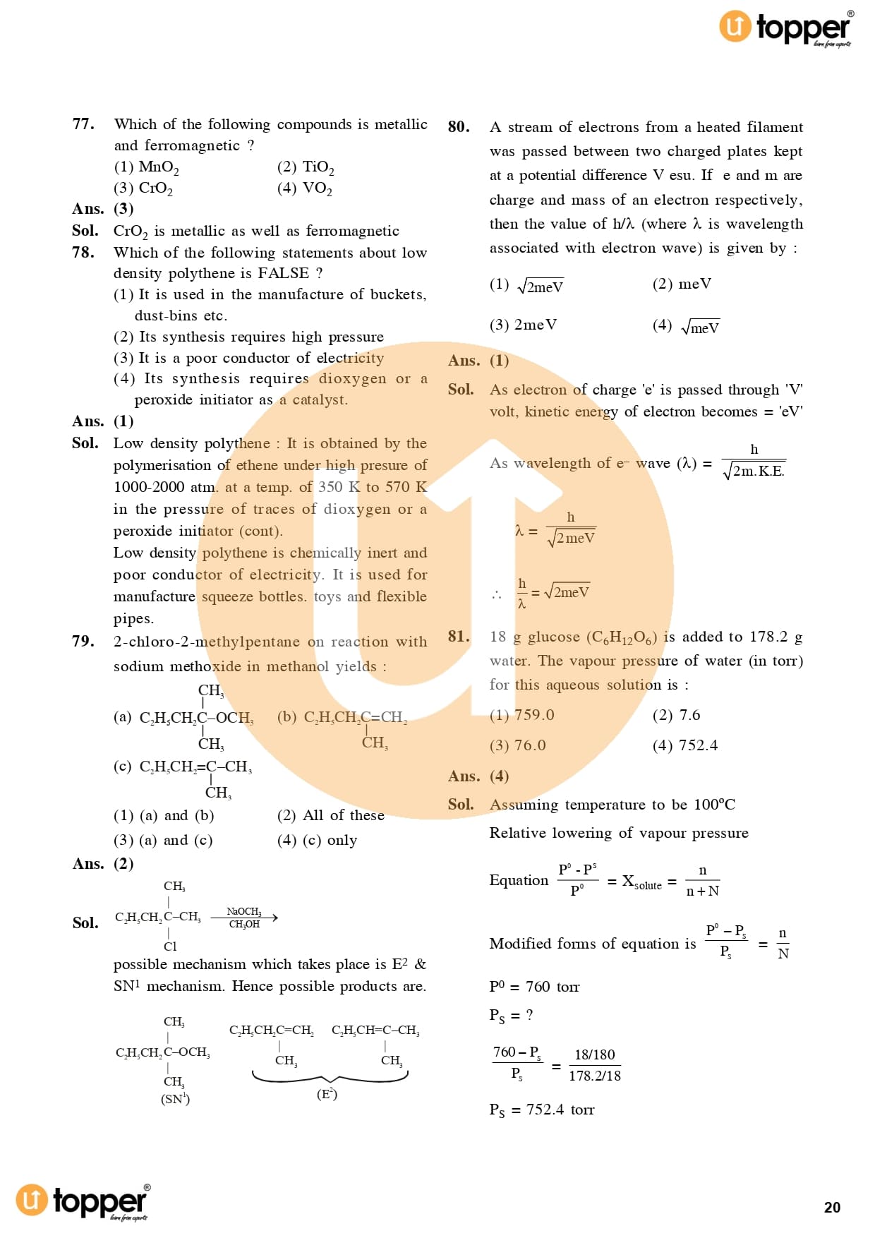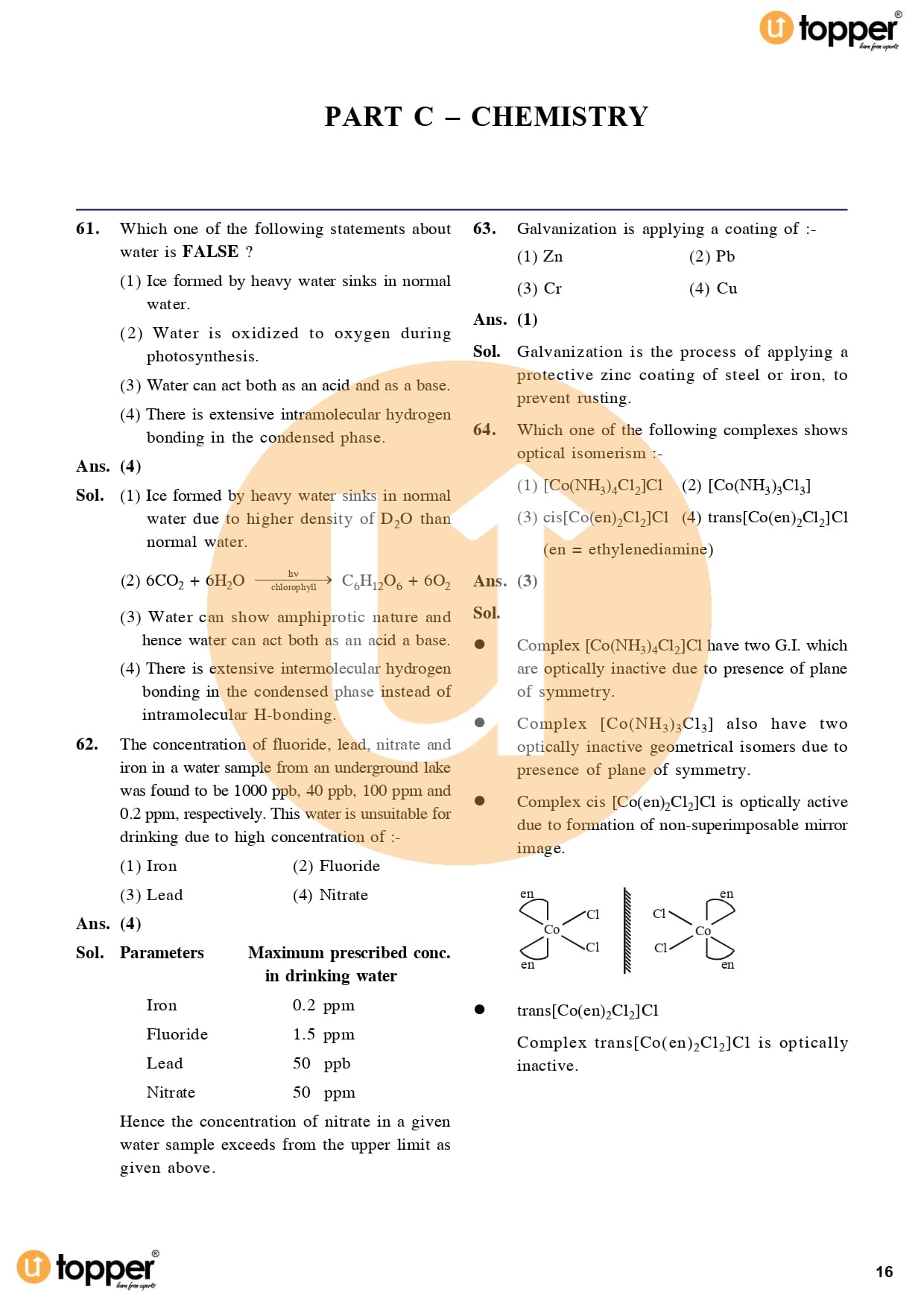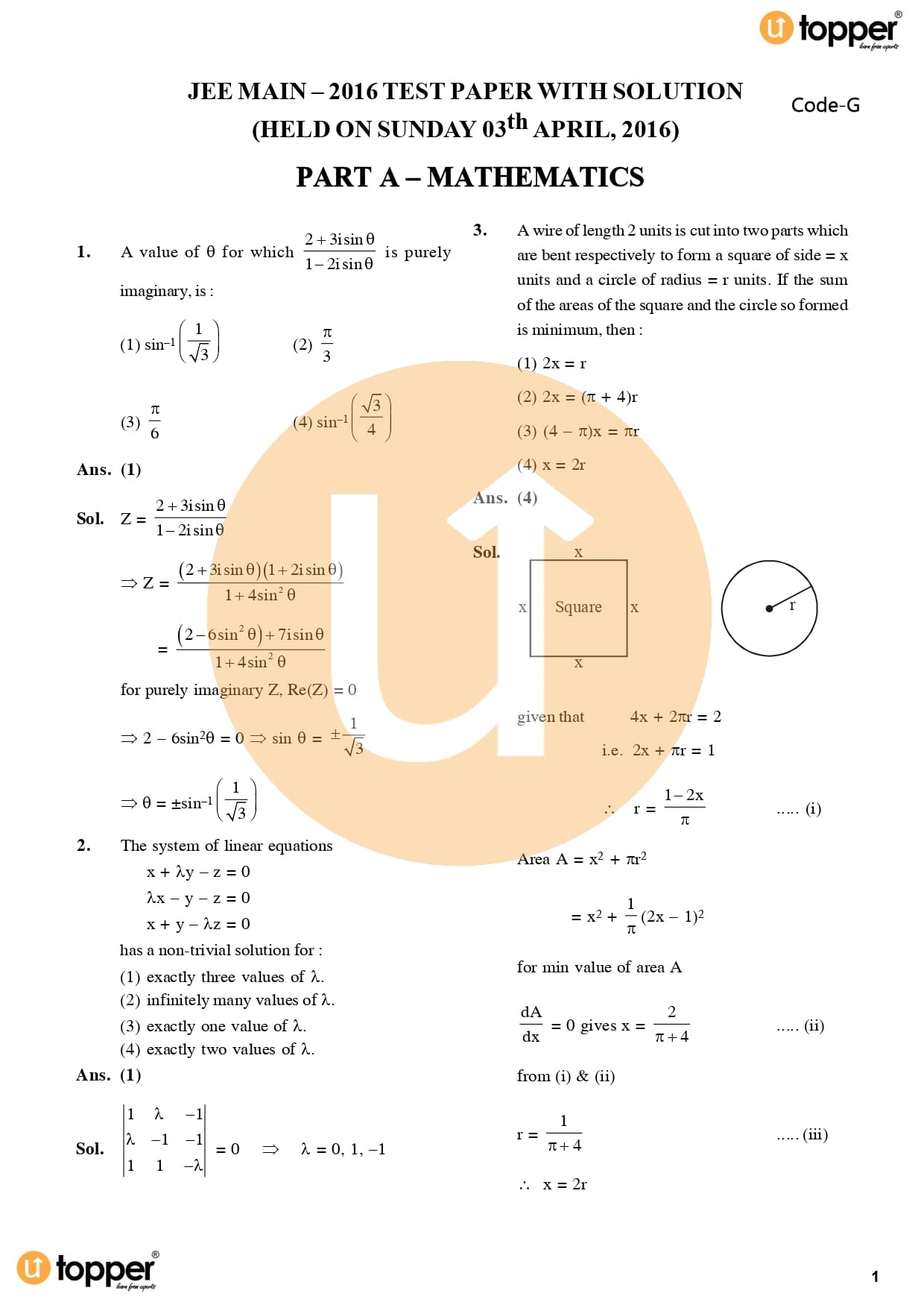 JEE Main 2016 Previous Year Question Paper Set – G with Solutions (3rd April)