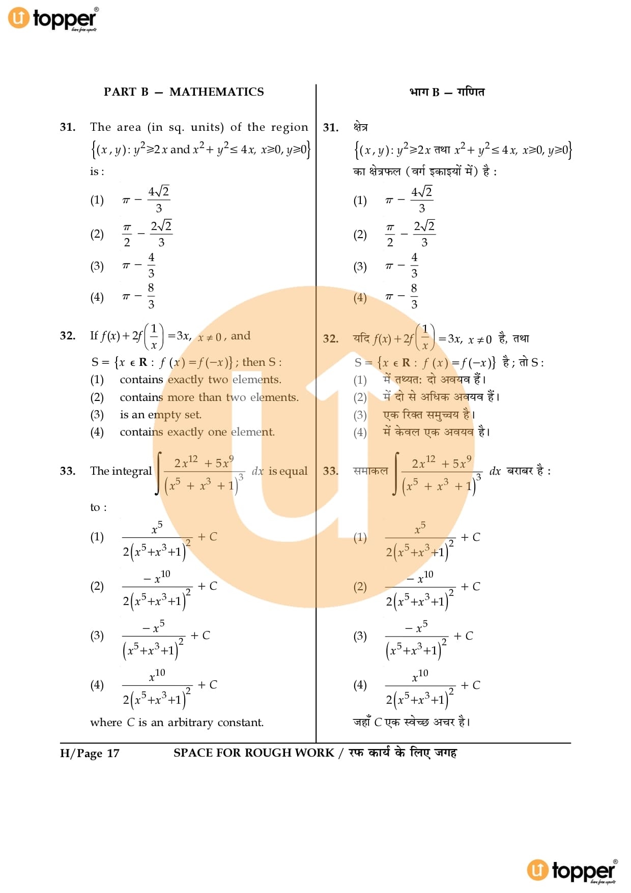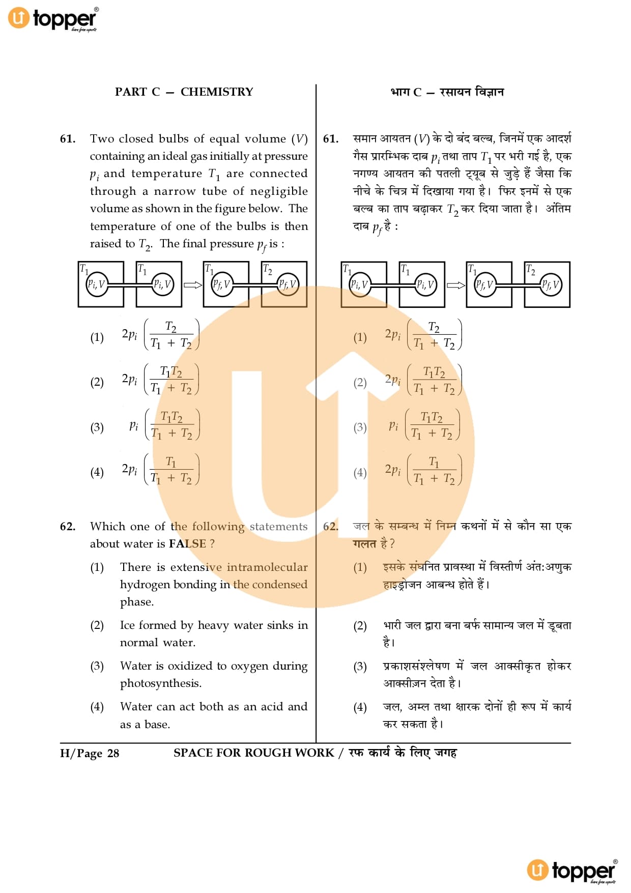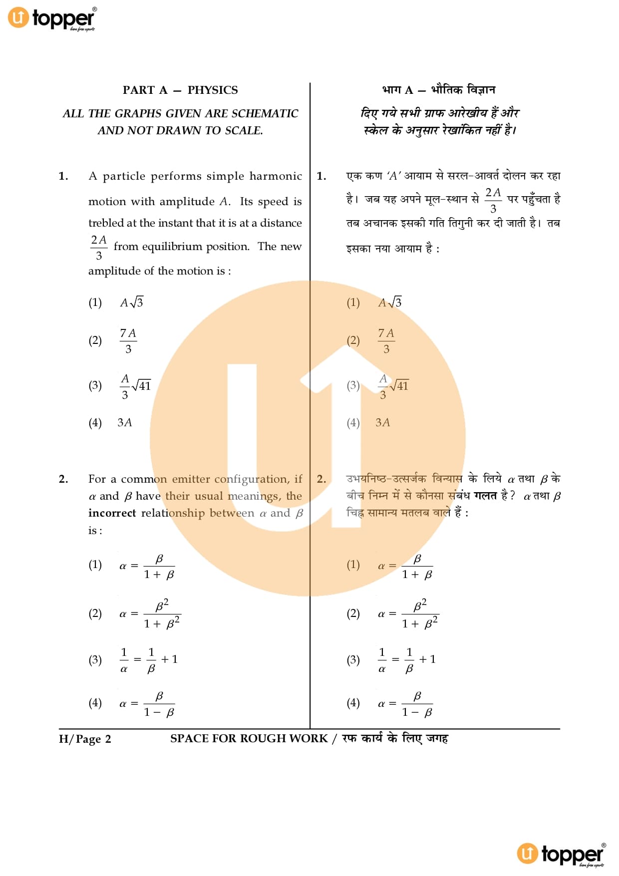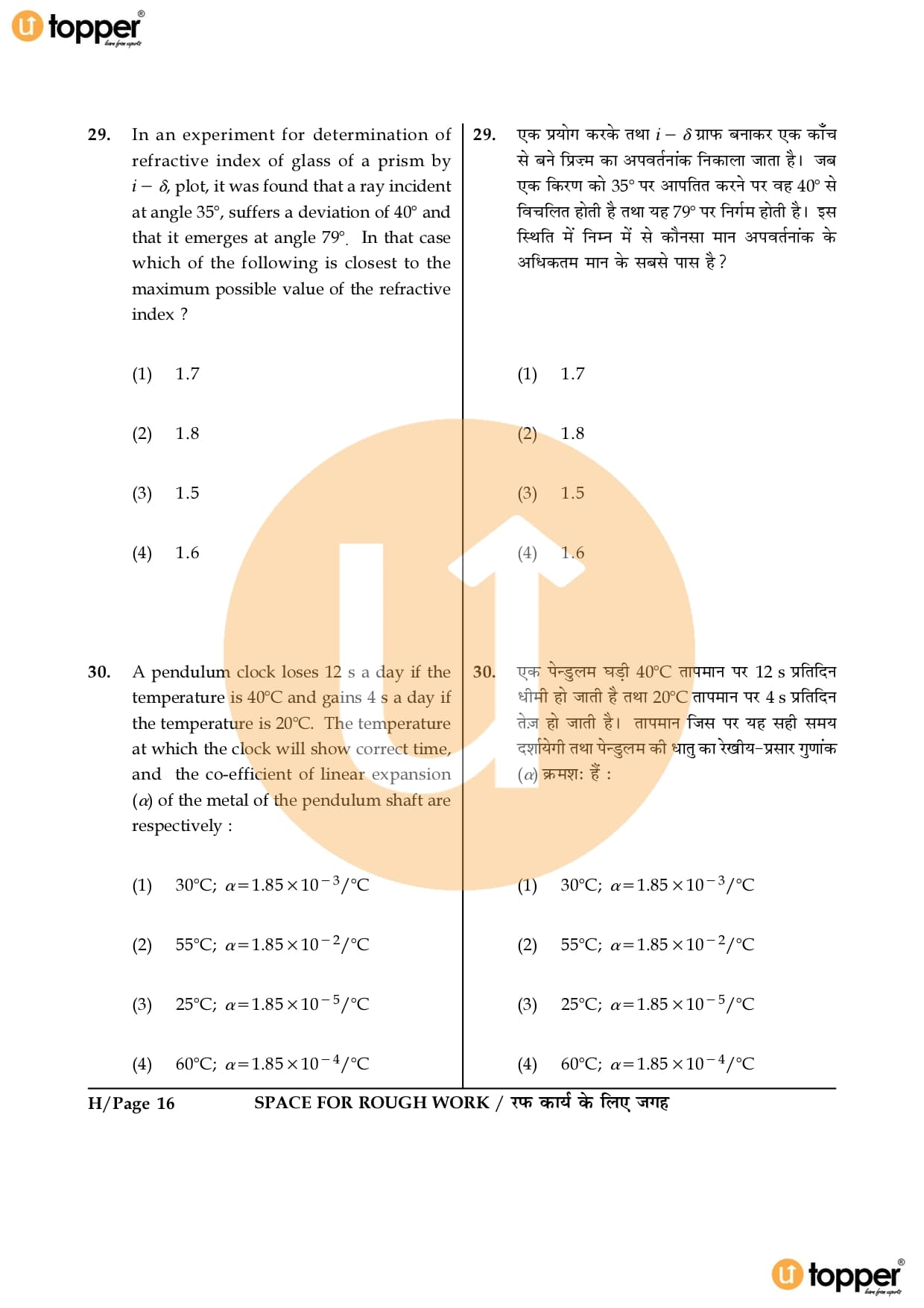 JEE Main 2016 Question Paper Set – H
