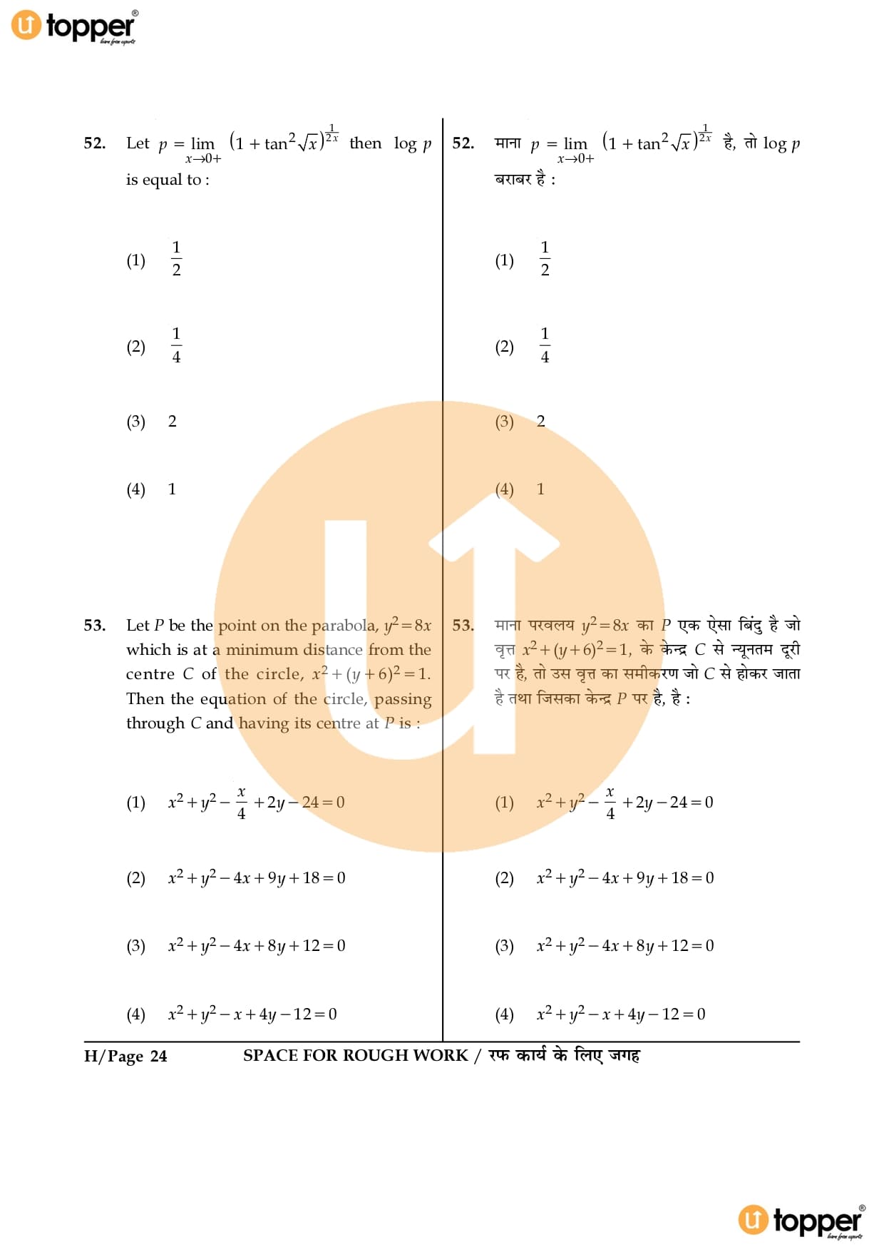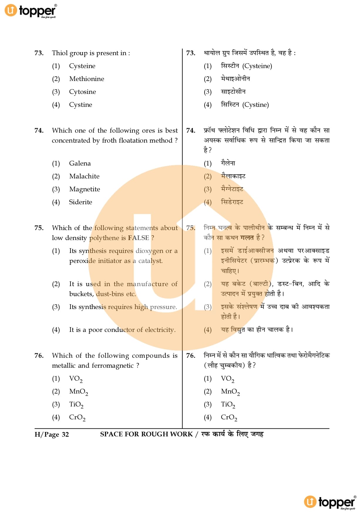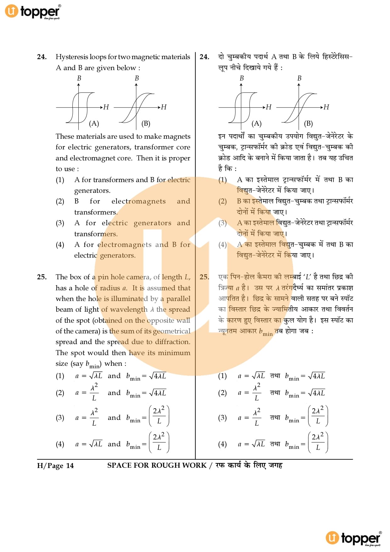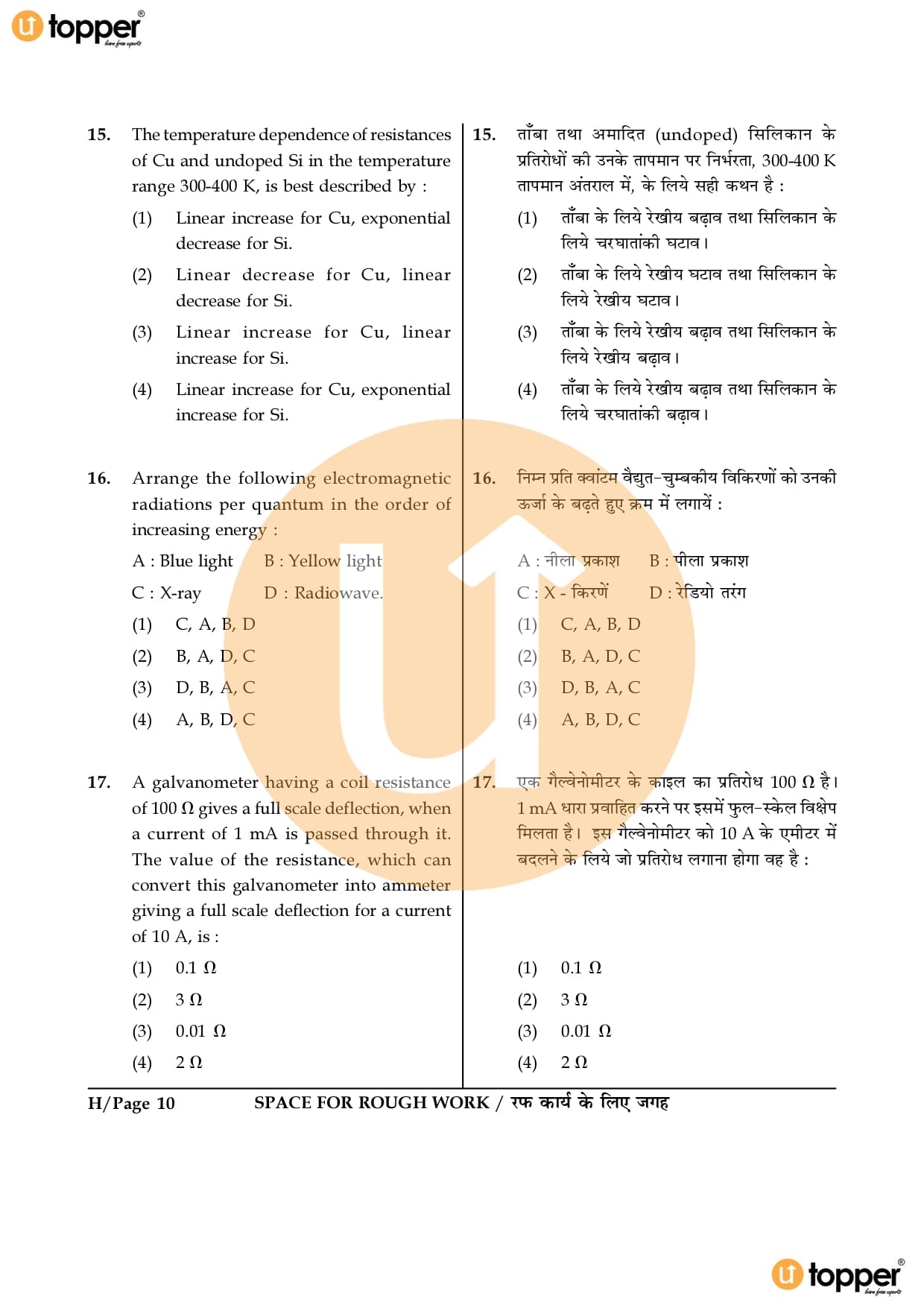 JEE Main 2016 Question Paper Set – H
