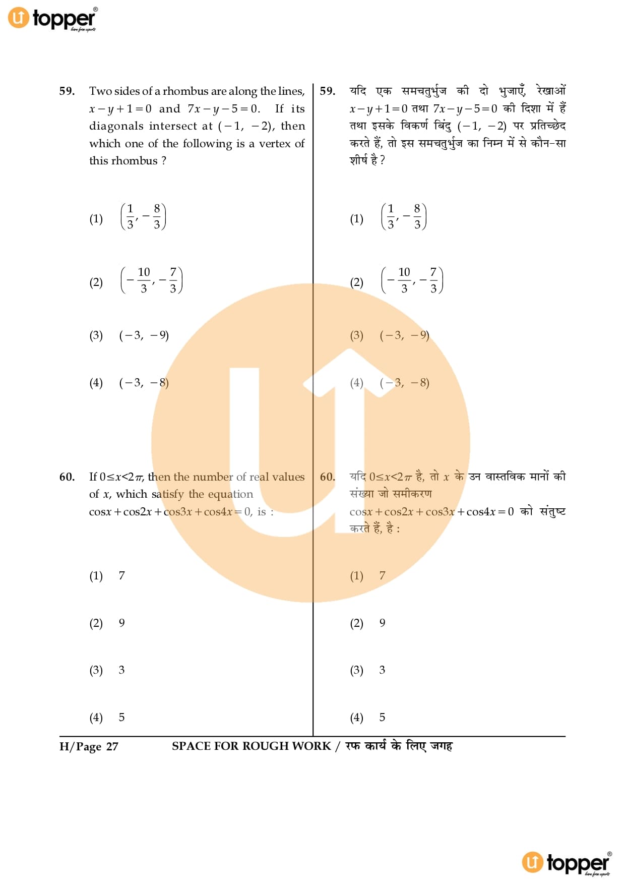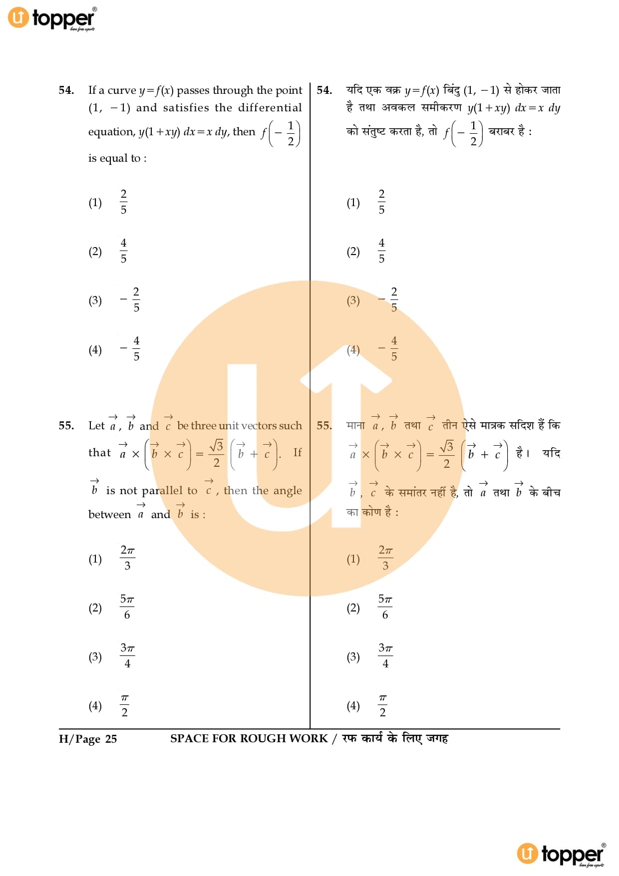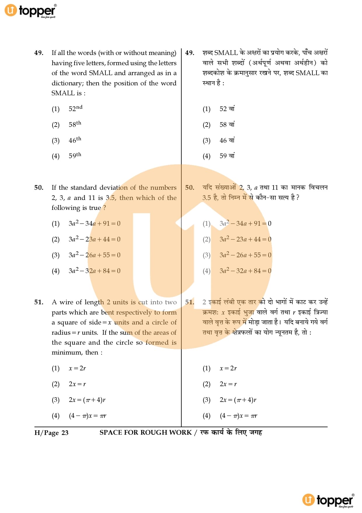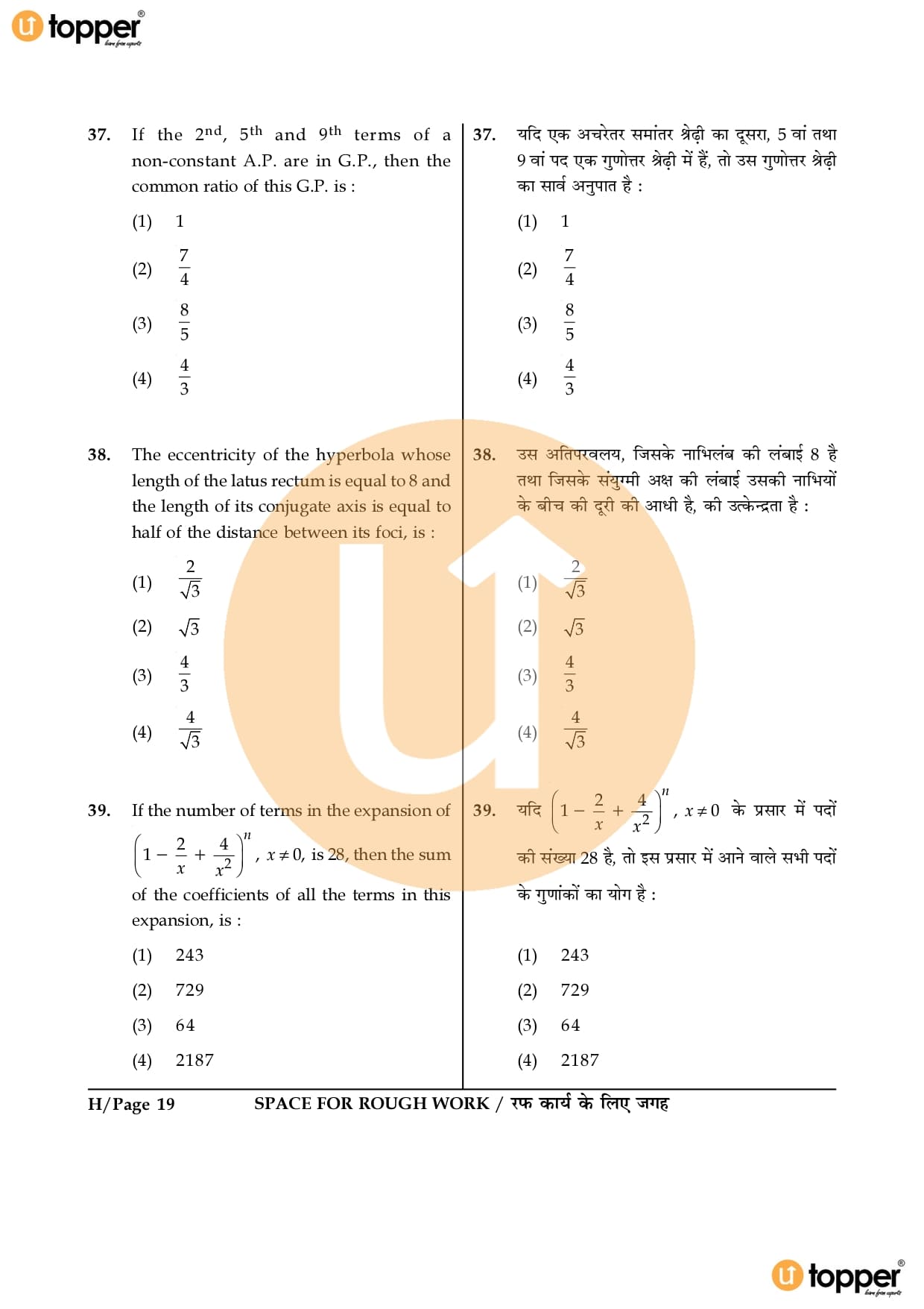 JEE Main 2016 Question Paper Set – H