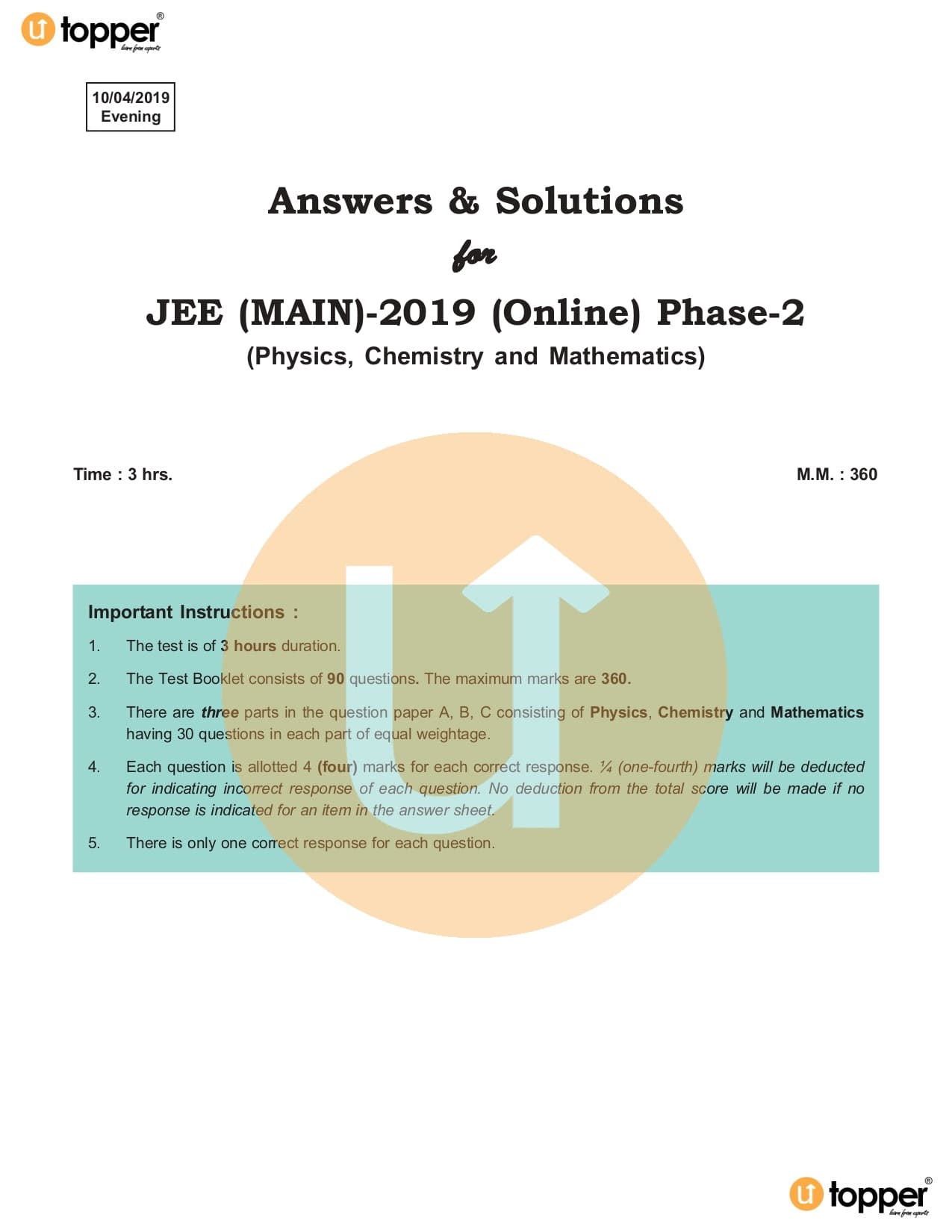 JEE Main 2019 Previous Year Question Paper with Solution 2nd Shift (10th April Evening)